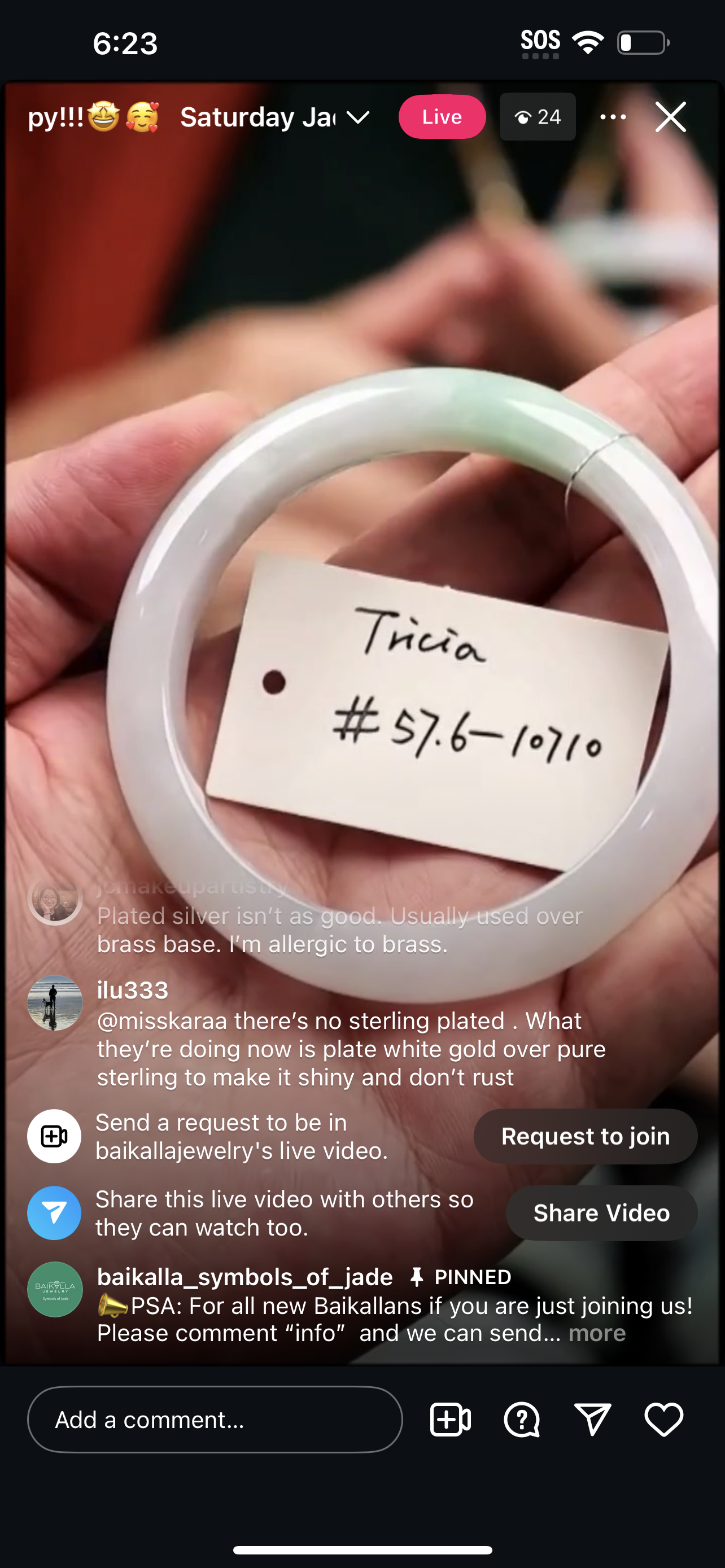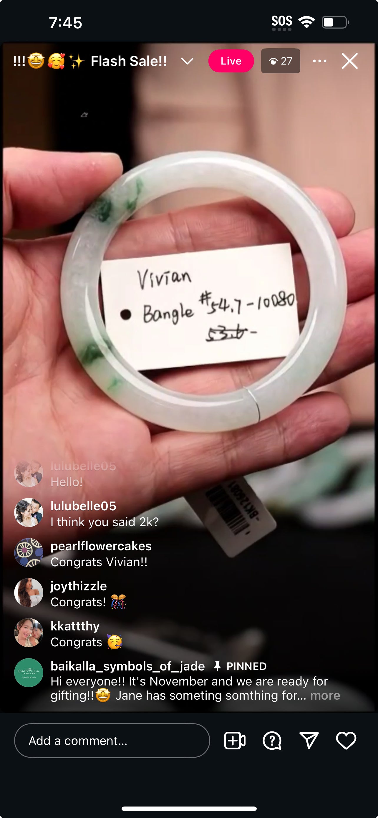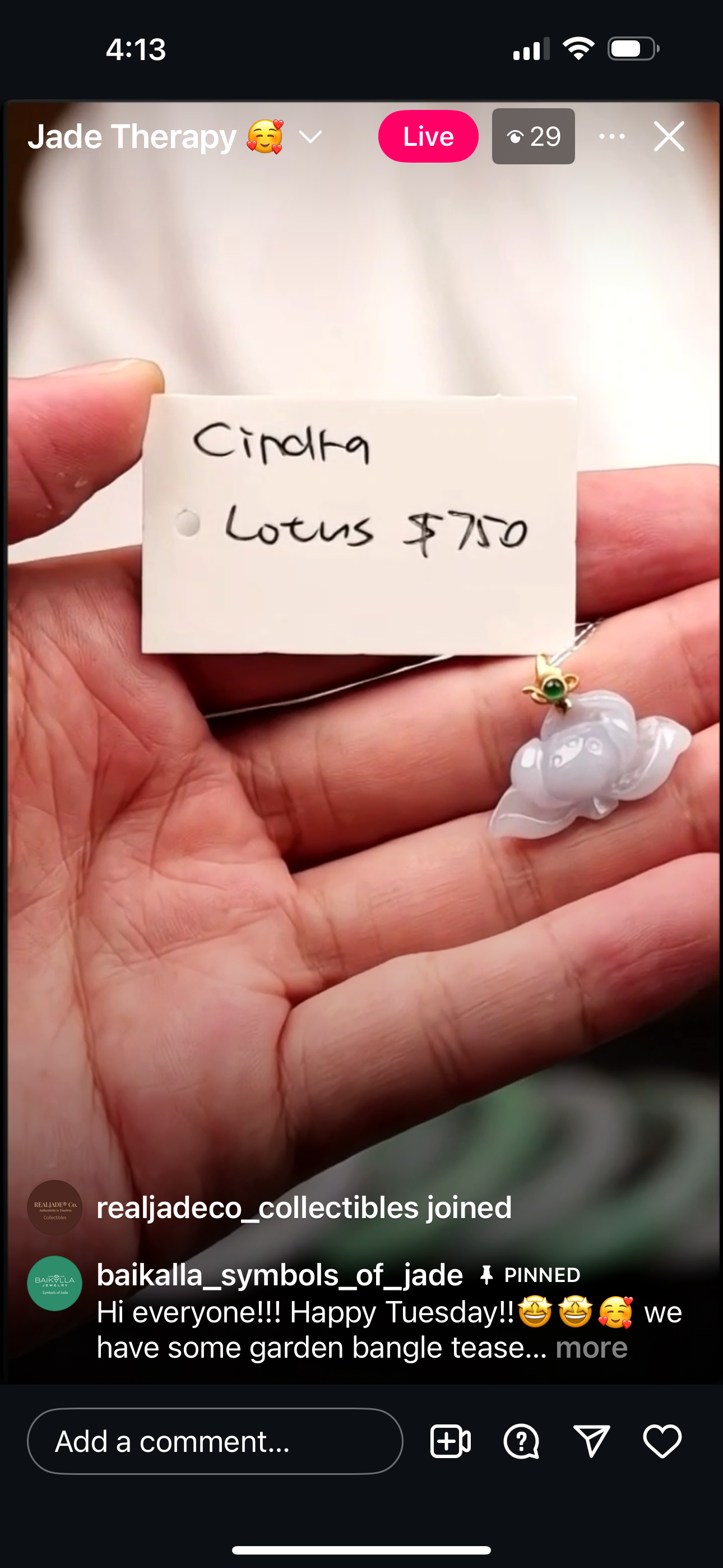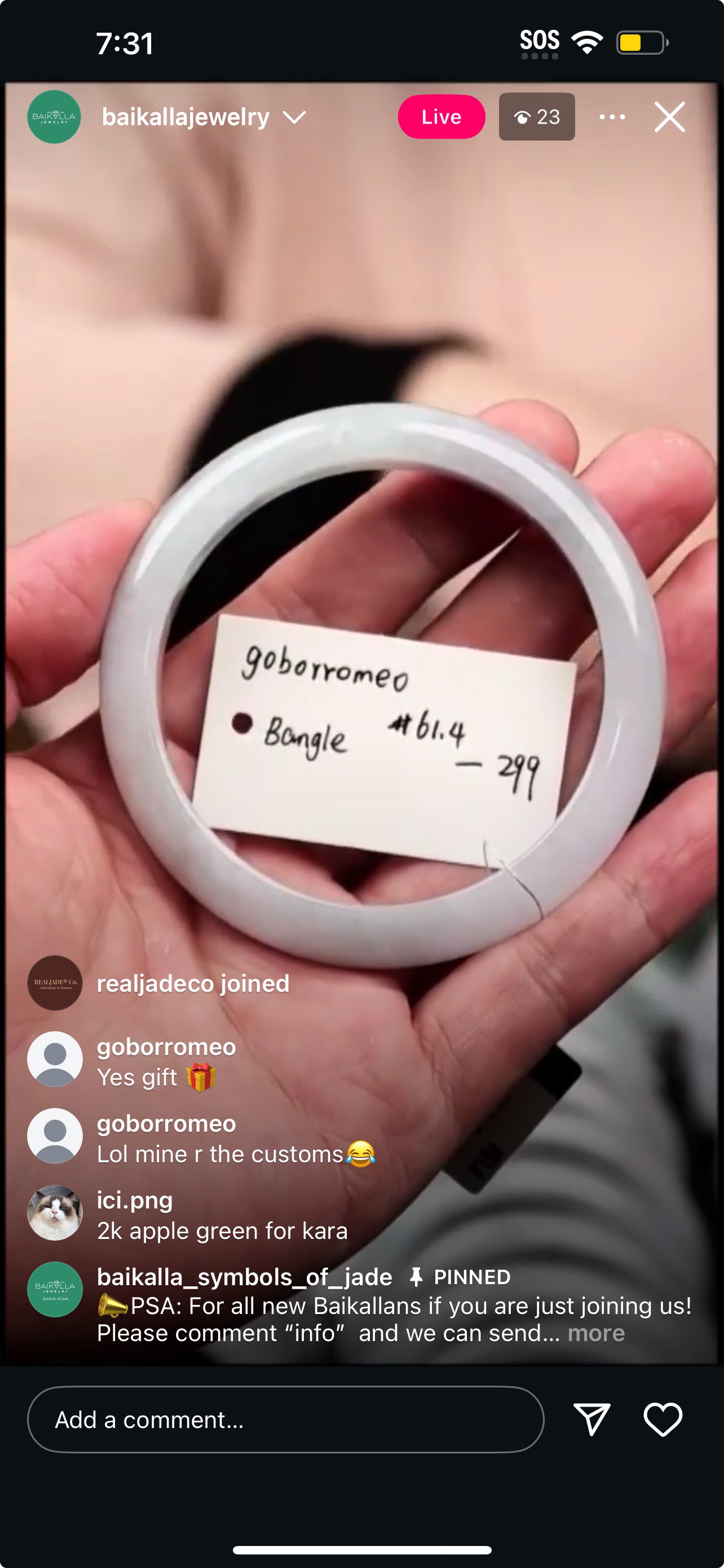 "Live" Baikalla Icy White W/ Green Flower Half-Round Jadeite Jade Bangle (11/03/25)