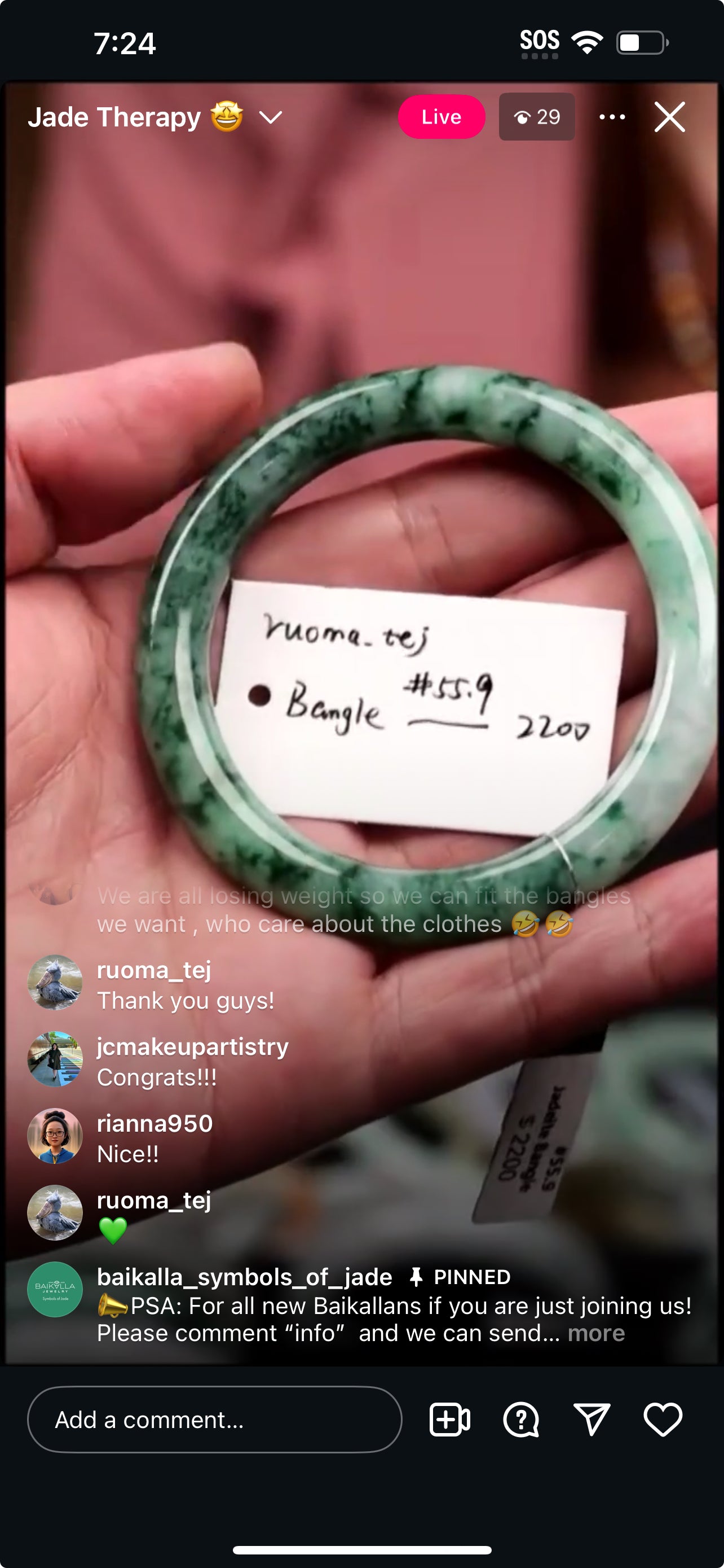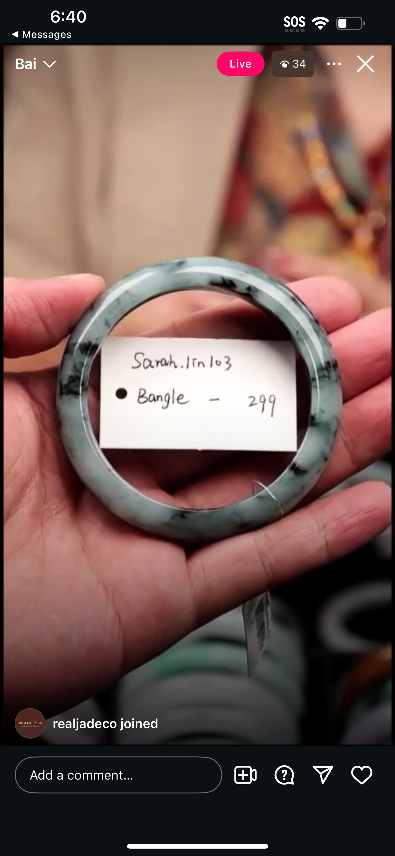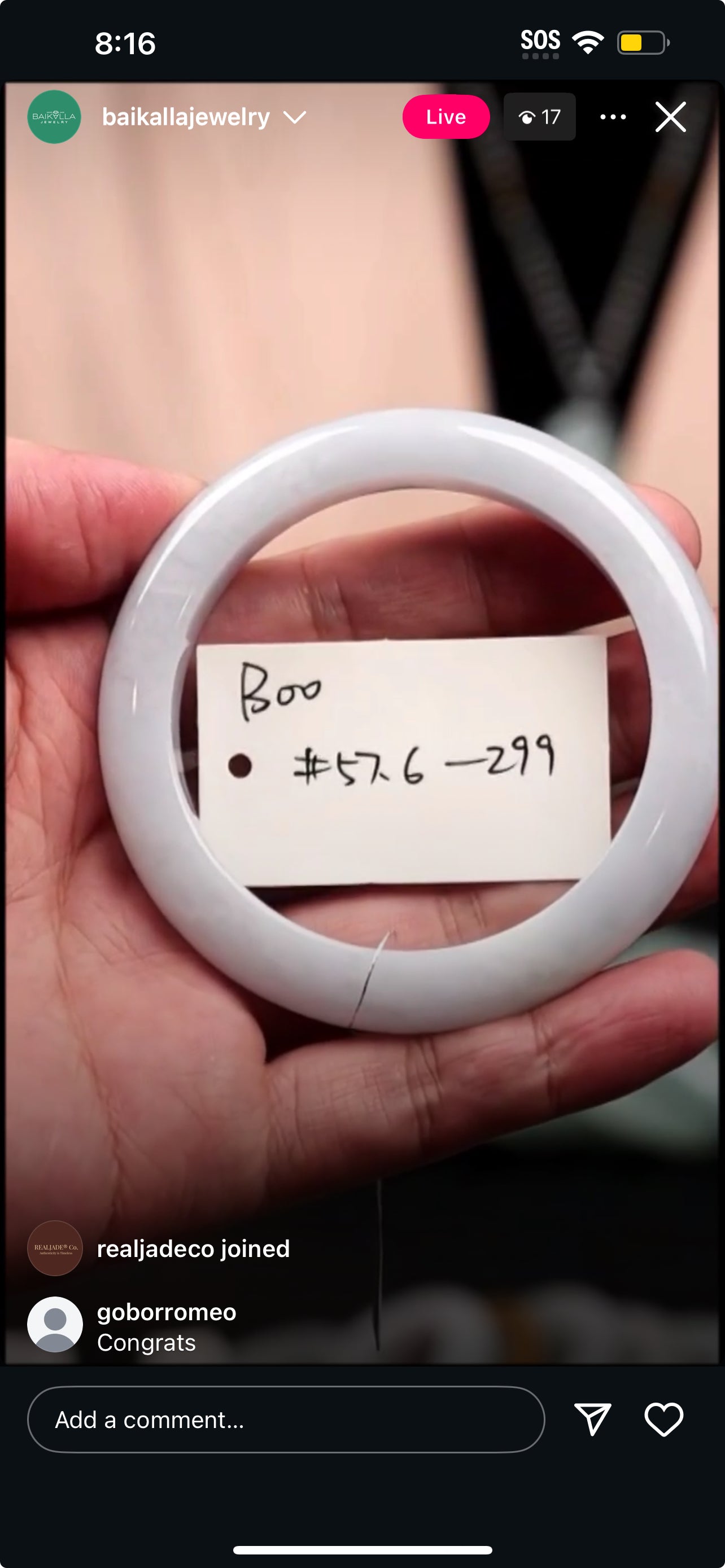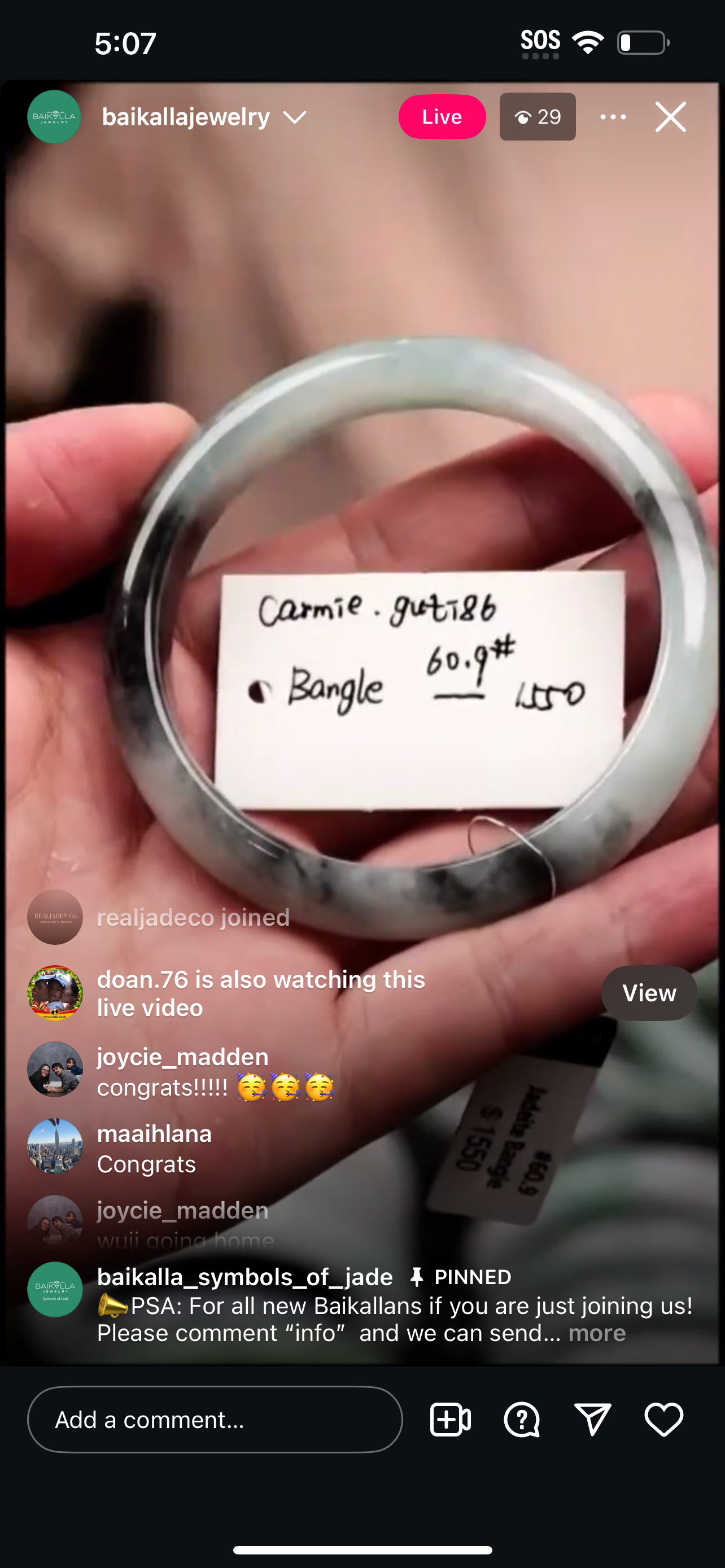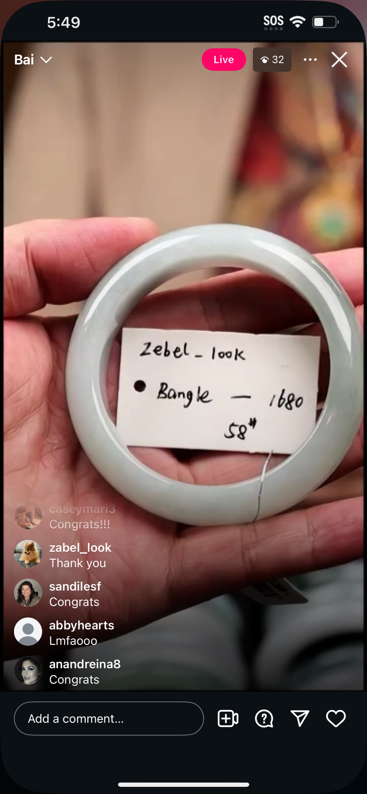 "Live" Baikalla Icy White W/ Green Flower Half-Round Jadeite Jade Bangle (11/03/25)