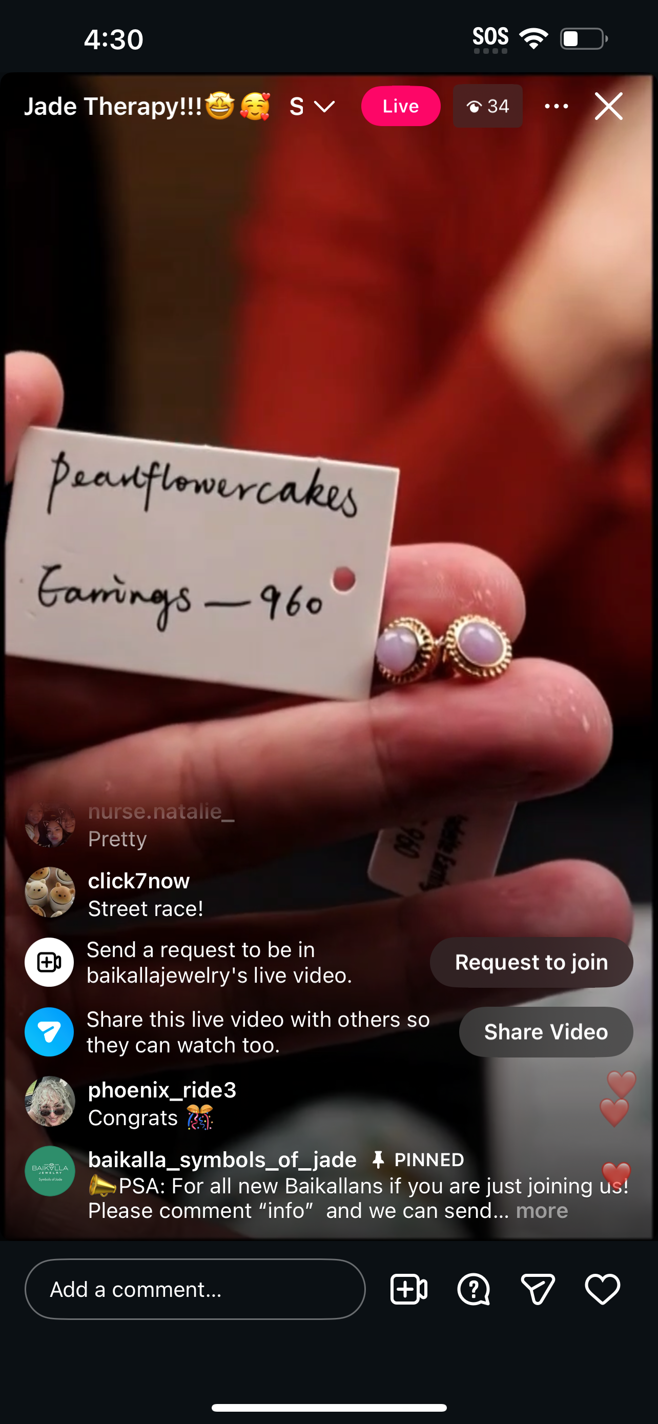 "Live" 18ky Natural Intense Pink Lavender Jadeite Jade Kou Kou Earrings" (08/27/25)