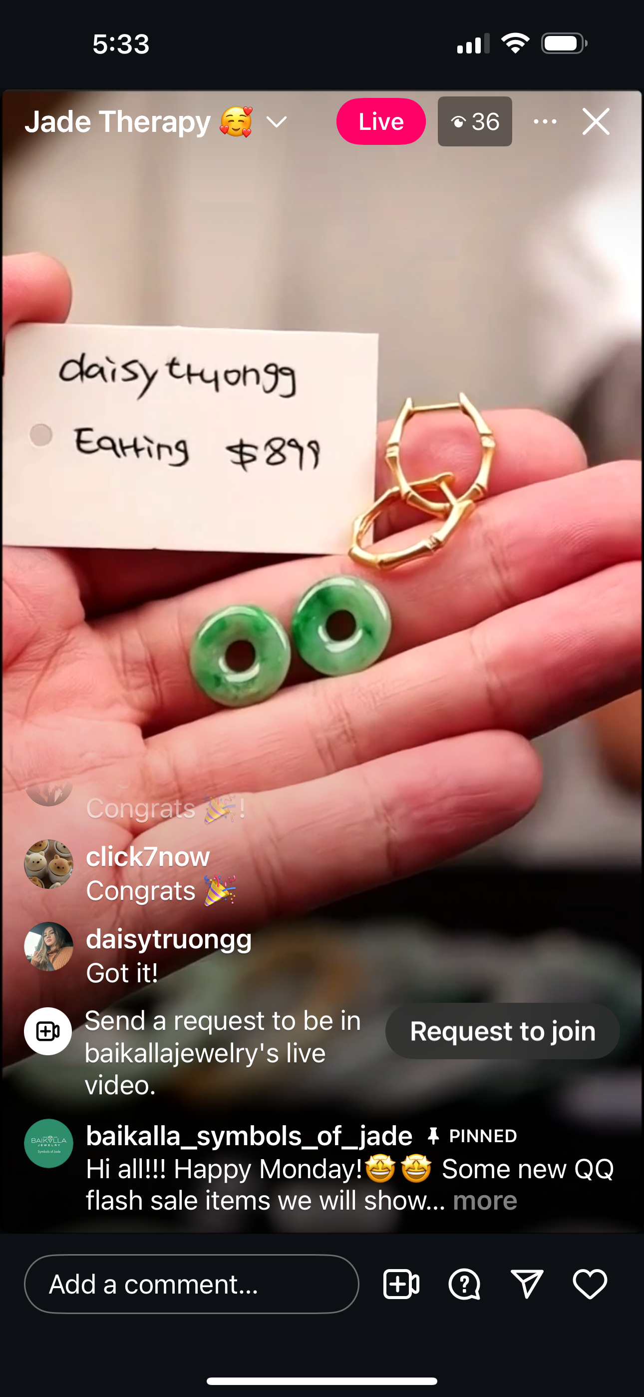 "Live" 18ky Natural Spicy Green Jadeite Jade Matching Double Kou Kou Bamboo Hoops" (07/28/25)