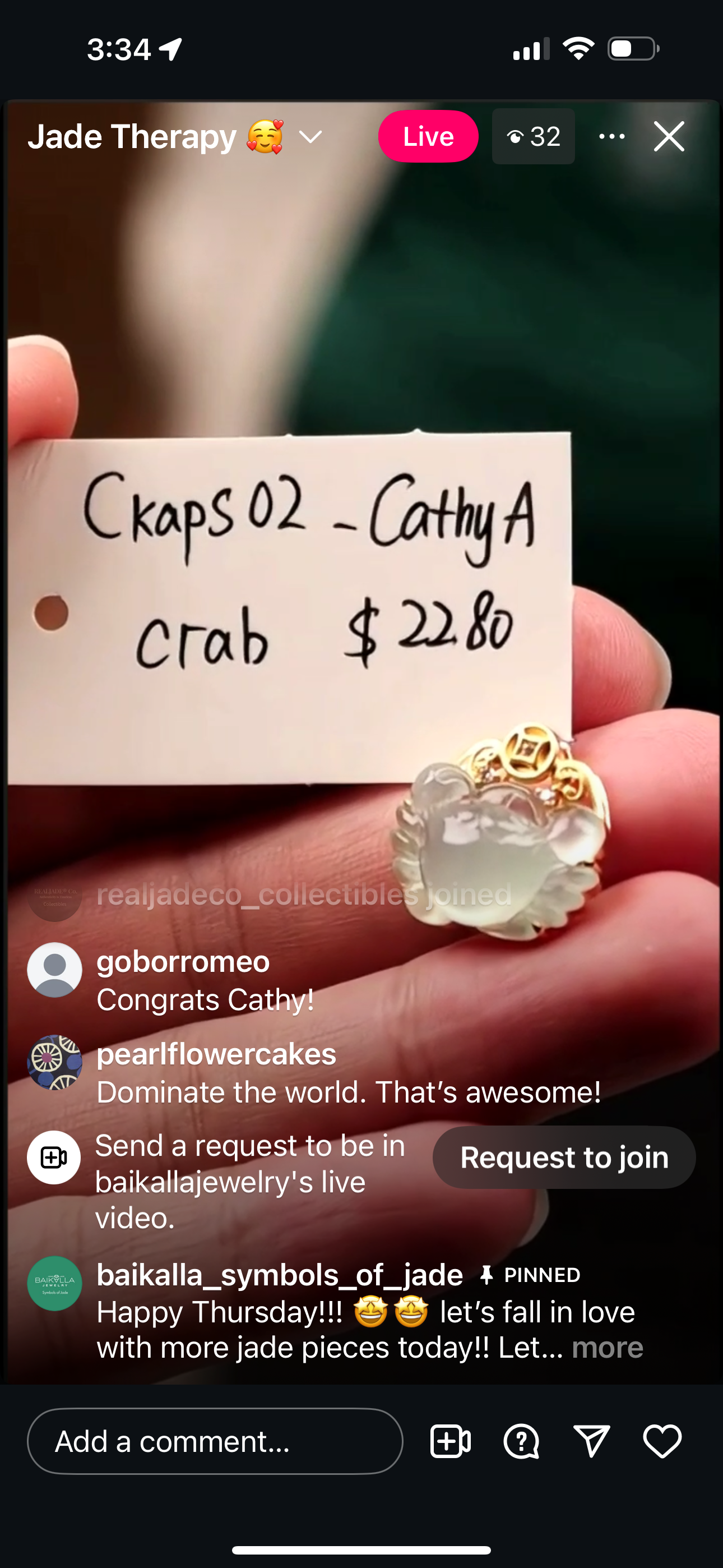 "Live" 18ky Natural Light Green Icy Jadeite Jade Crab Wealth Themed Pendant" (08/14/25)