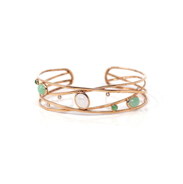 Baikalla Bubble Collection 18k Rose Gold Oval Bracelet Bangle with Jade & Diamonds