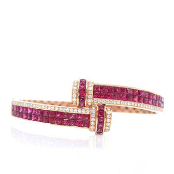 Baikalla™ 18K Rose Gold Natural Ruby and Diamond Bypass Hinge Bracelet