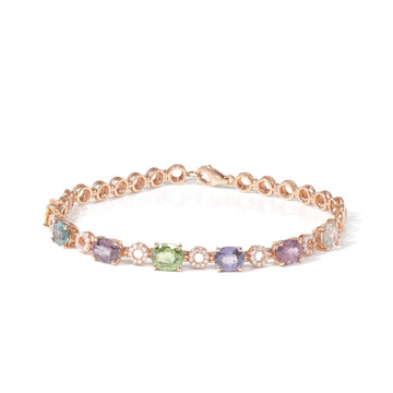 Baikalla™ 18K Rose Gold Natural Colored Sapphire and Natural Diamond Link Bracelet