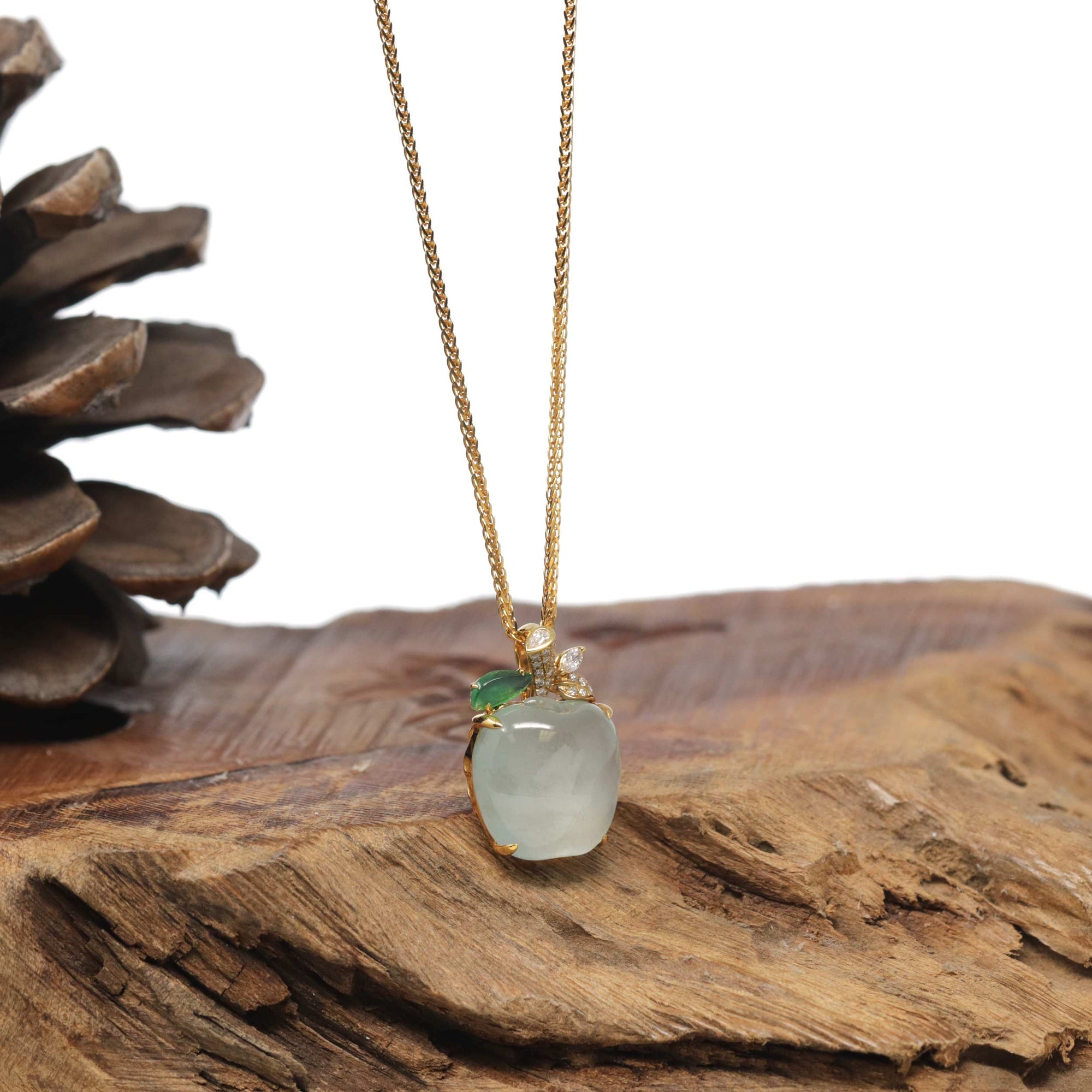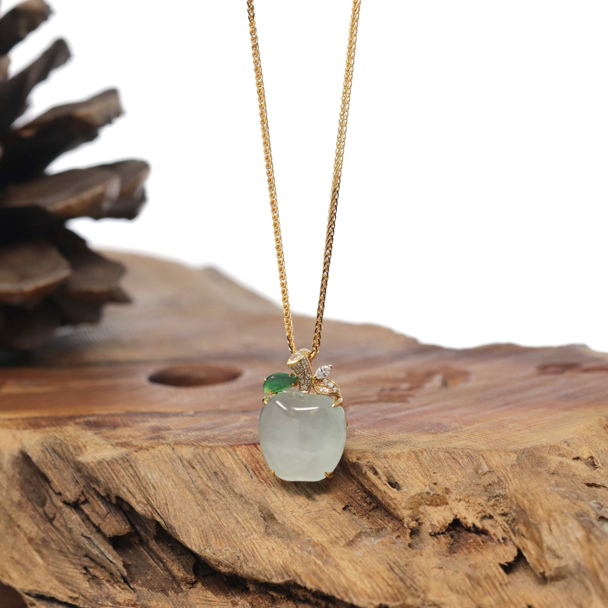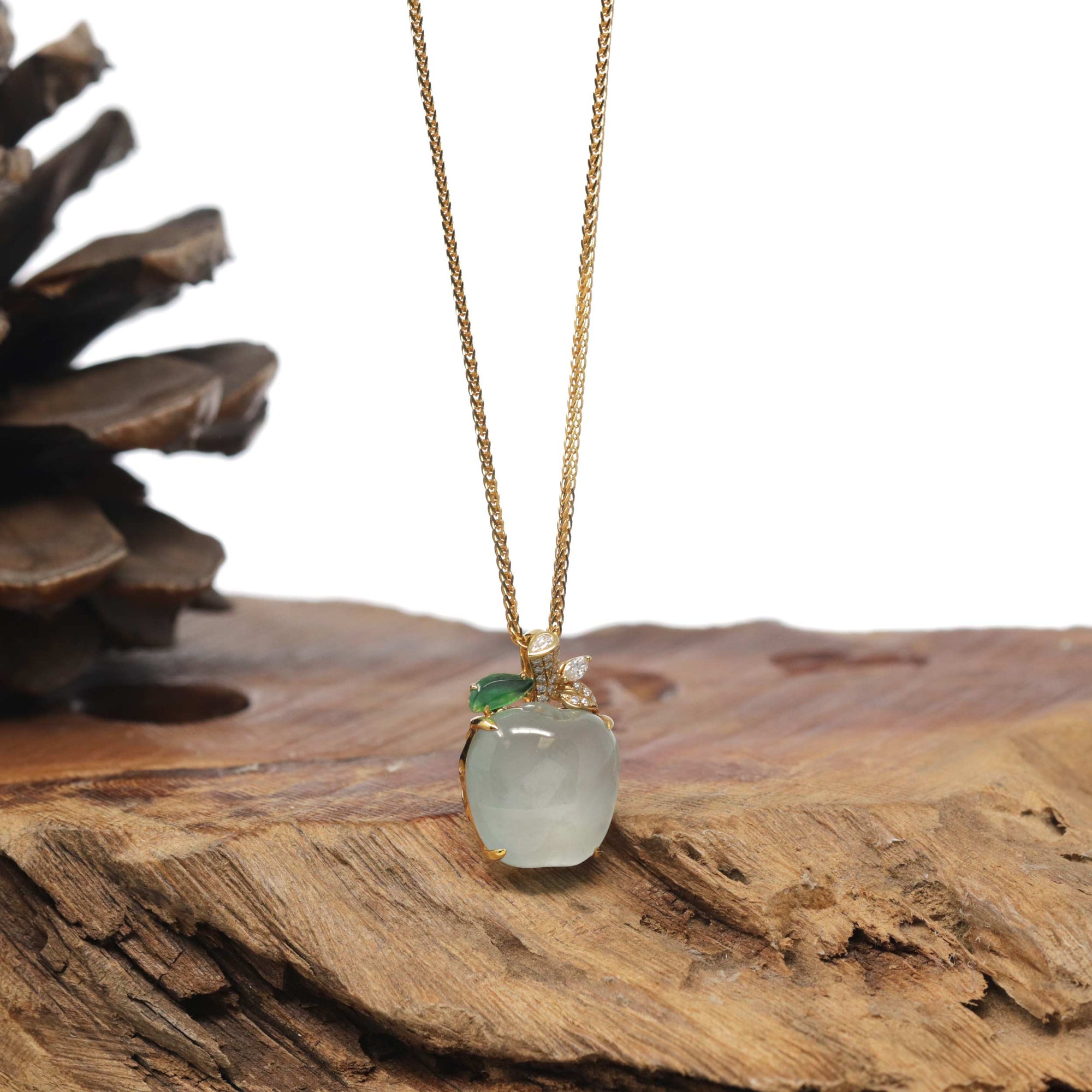 Baikalla 18K Yellow Gold "Apple" Natural Icy Light Green Jadeite Jade Pendant W/ Natural Diamonds