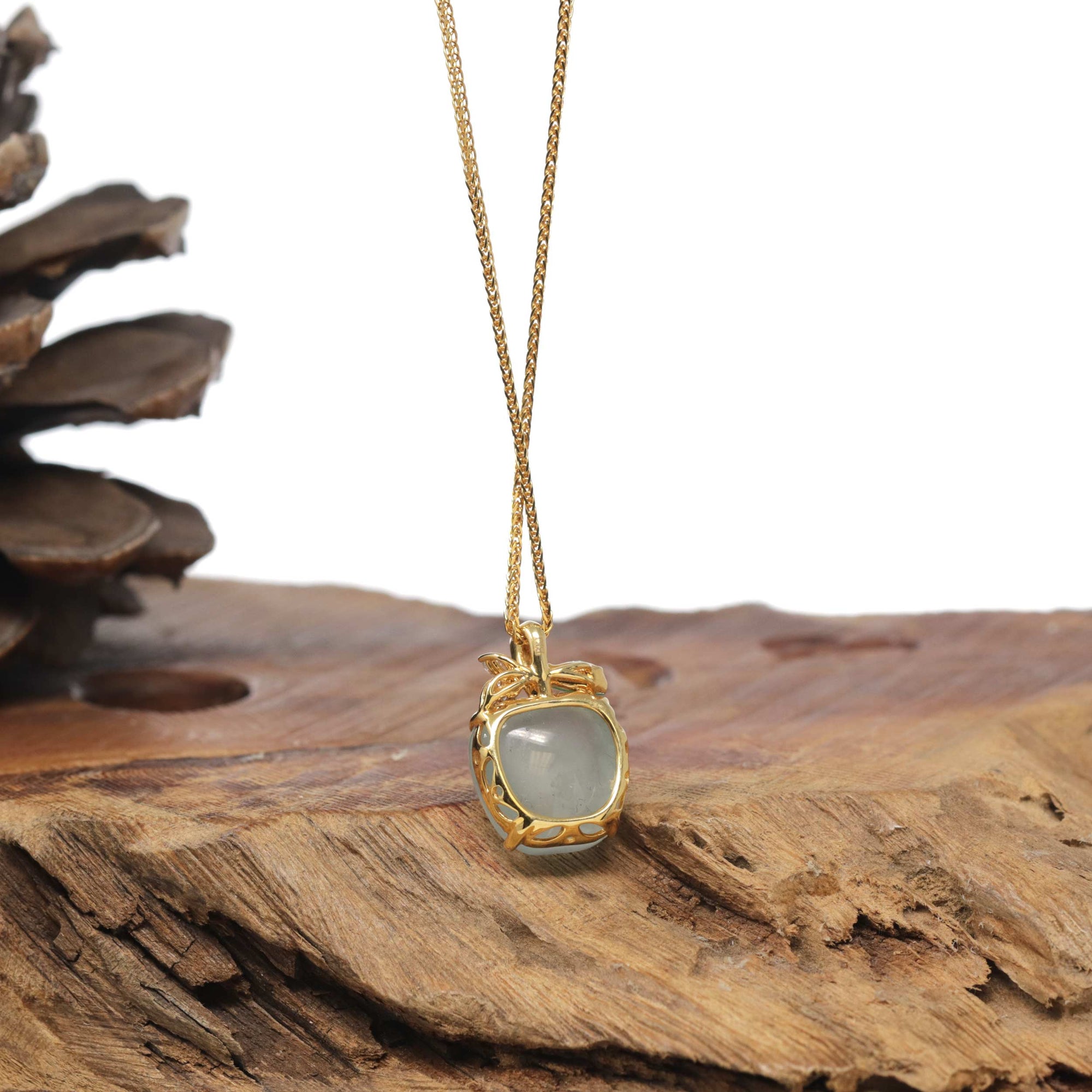 18k Rose Gold Genuine Burmese Jadeite Lucky Kou Kou Birdie Pendant Necklace
