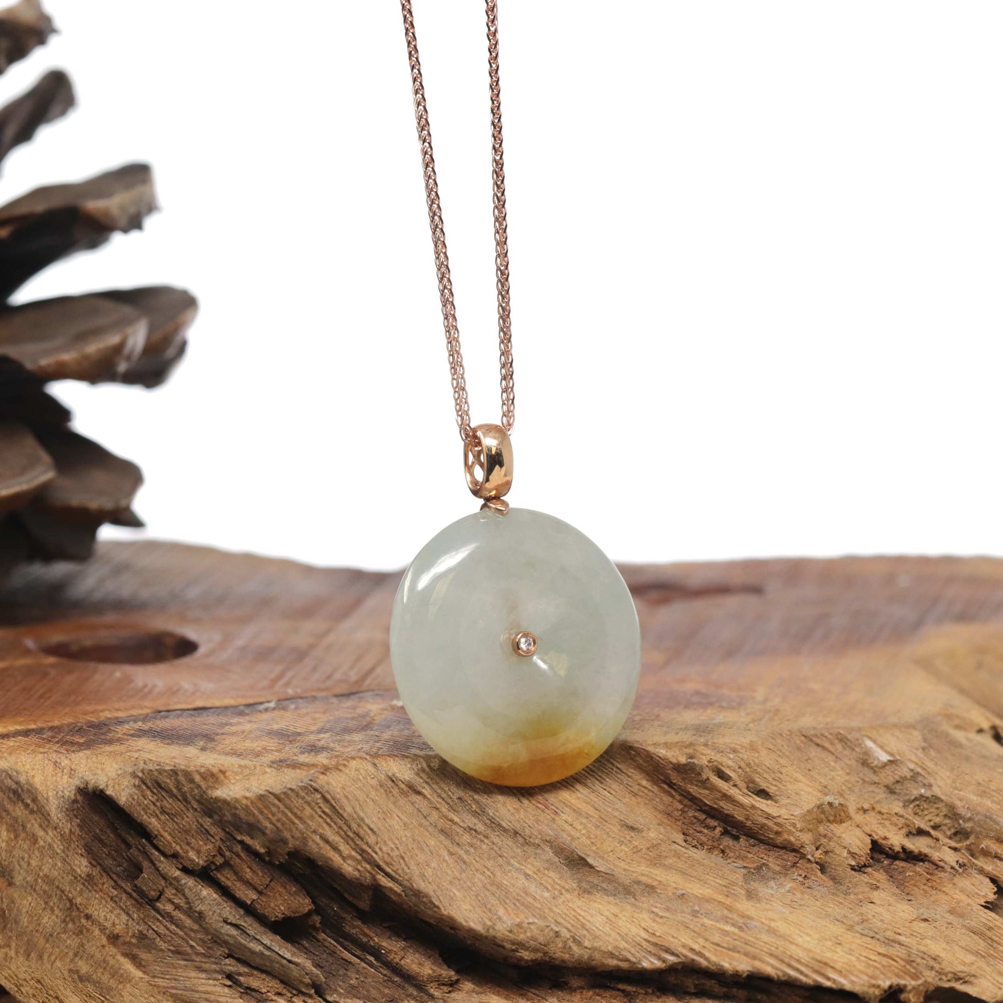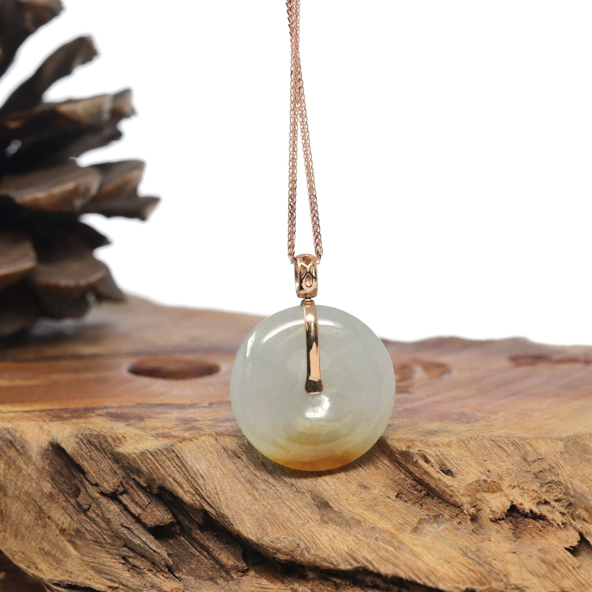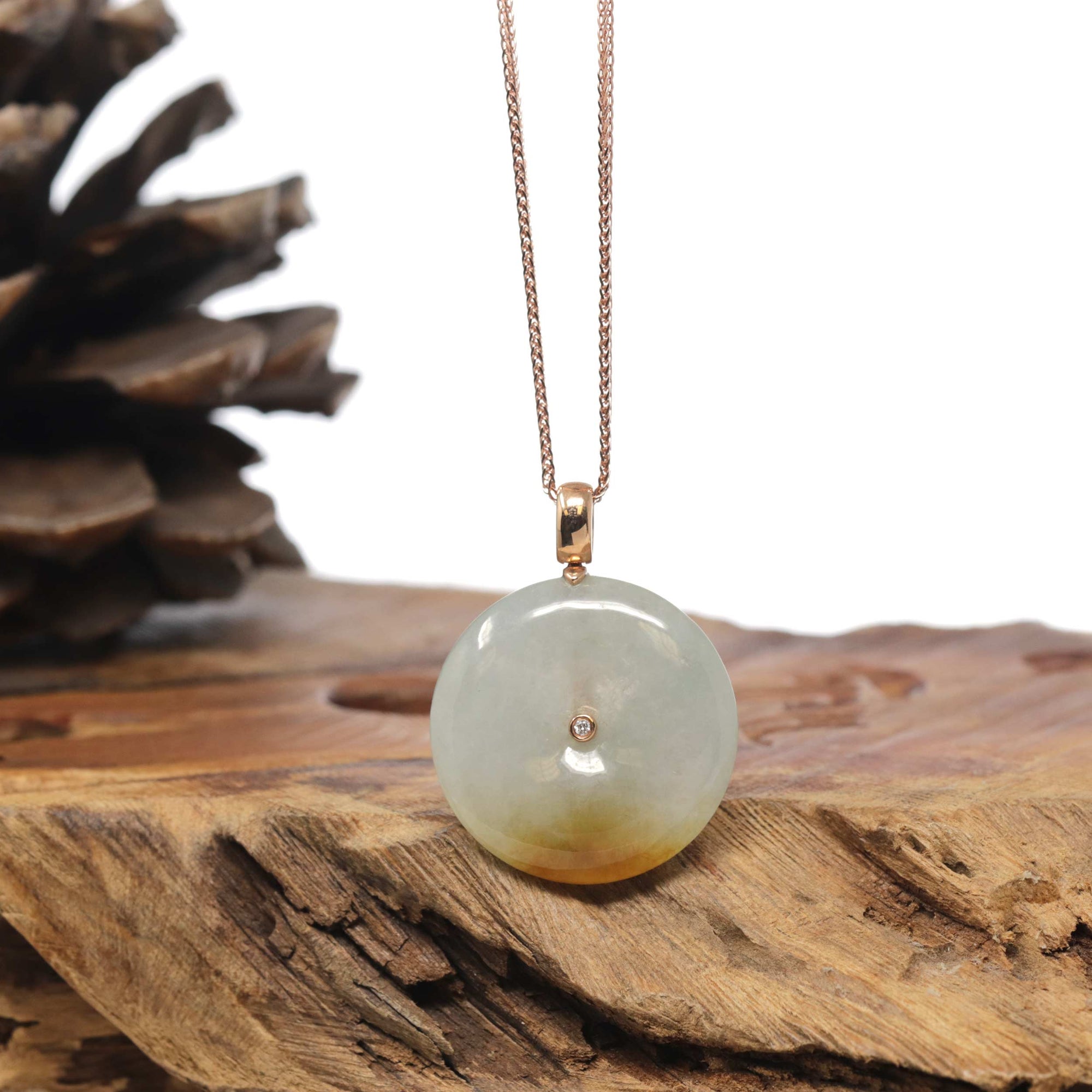 Baikalla 18K Rose Gold "Ping An Kou" (Good Luck Button) Natural Icy Light Green W/ Deep Yellow Patch Jadeite Jade Pendant