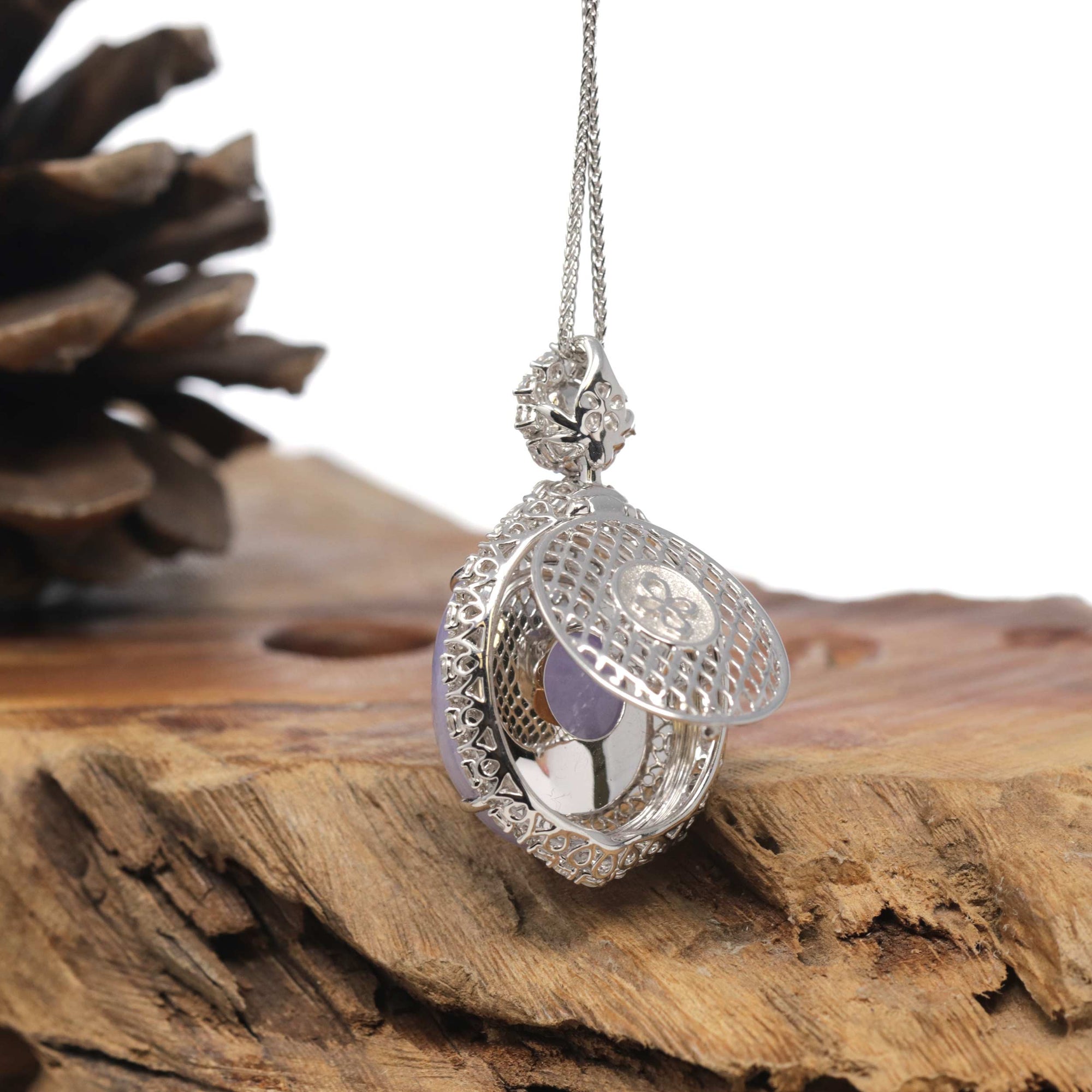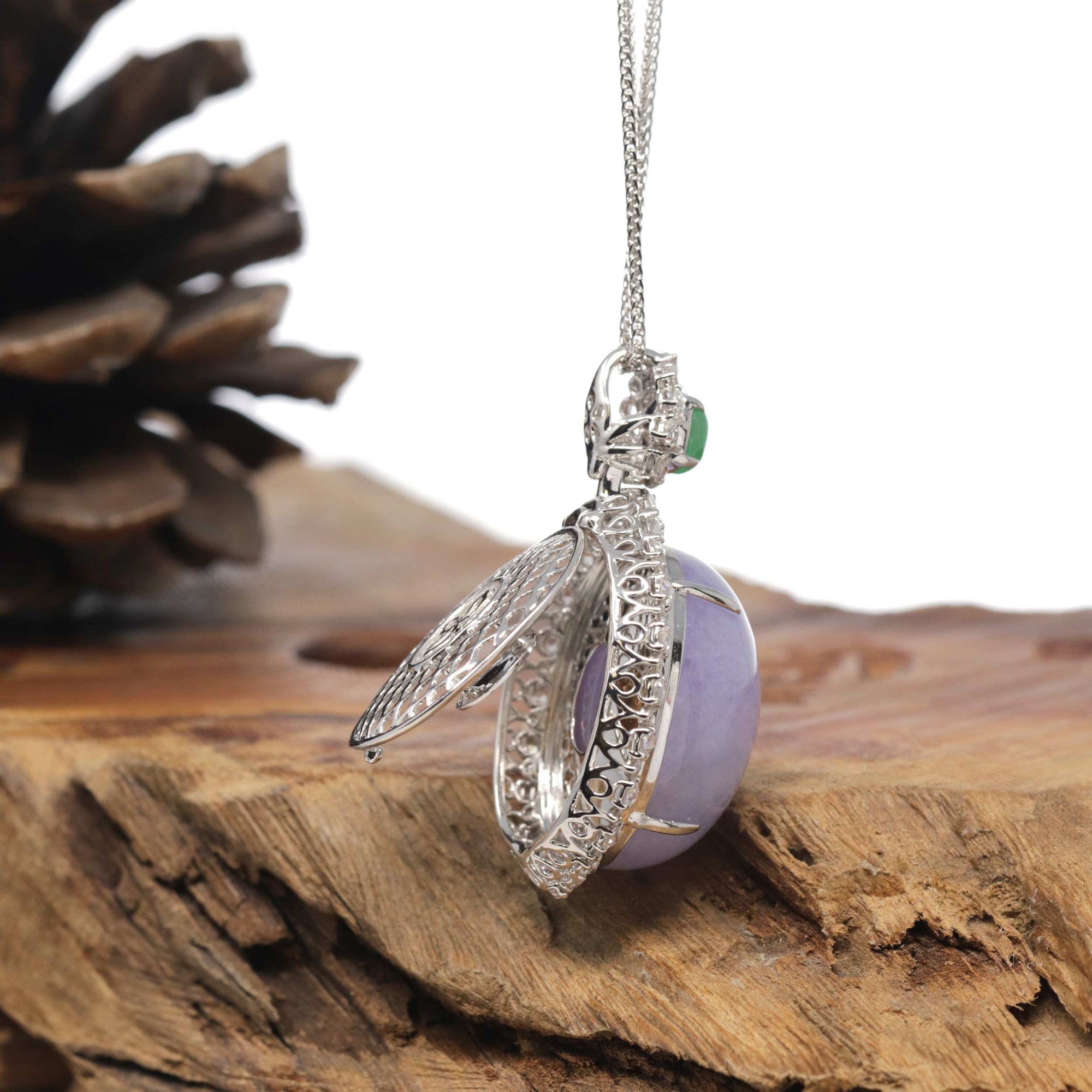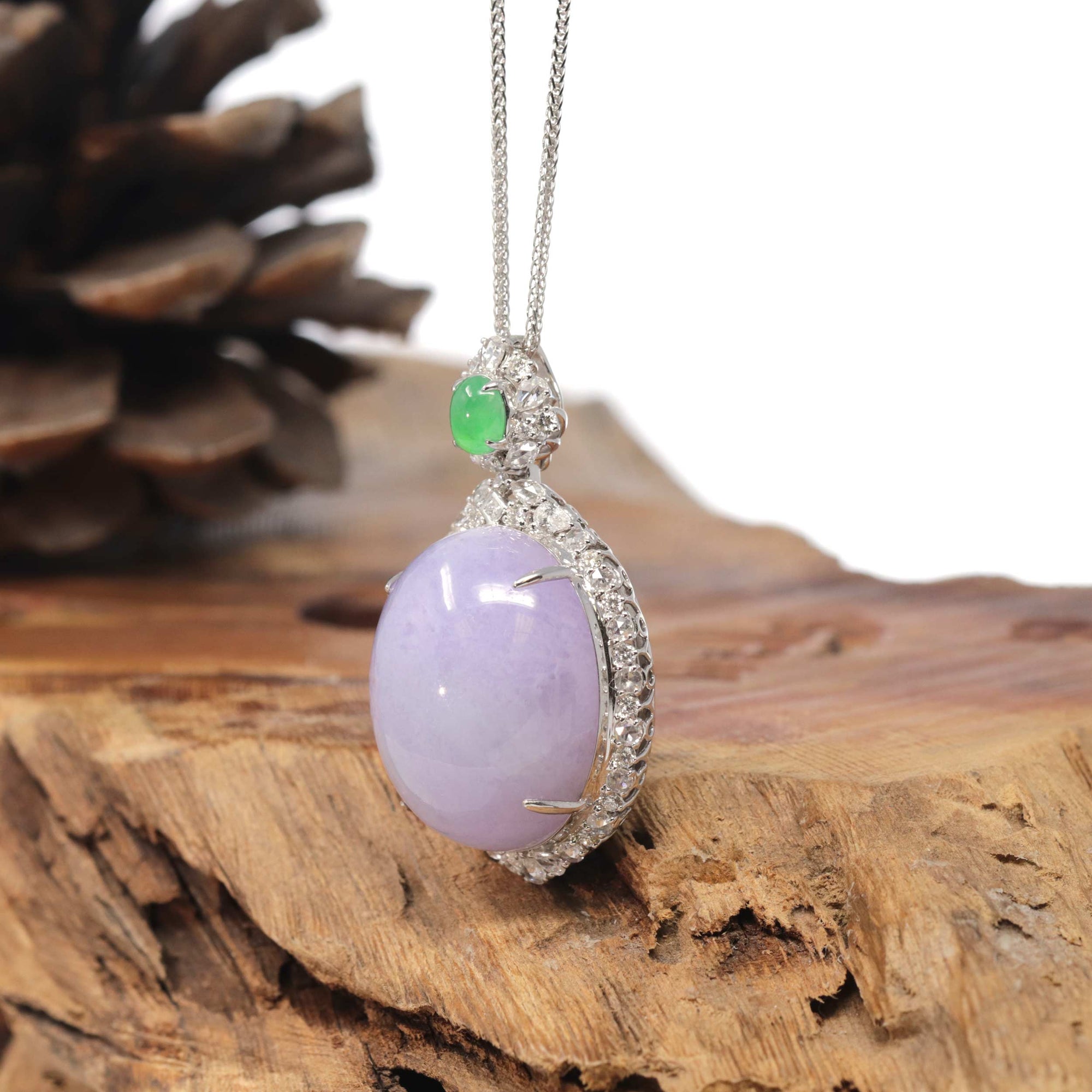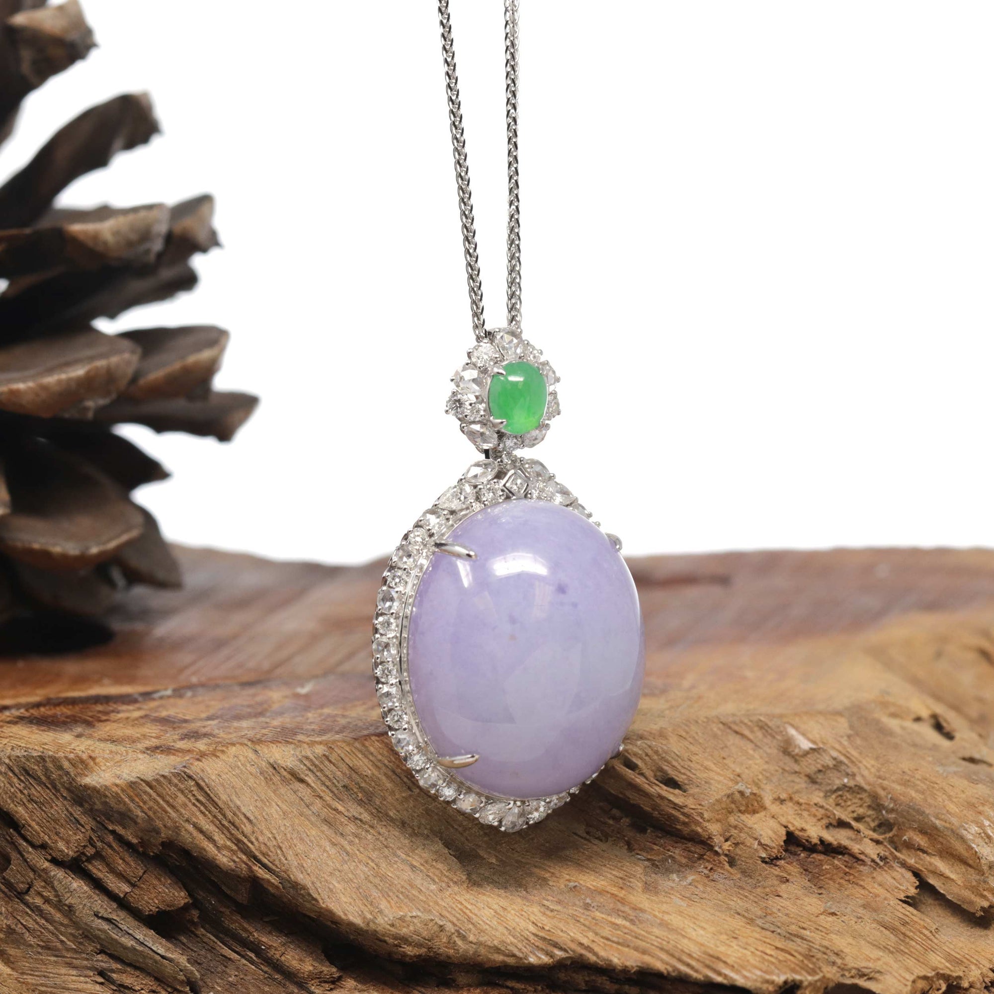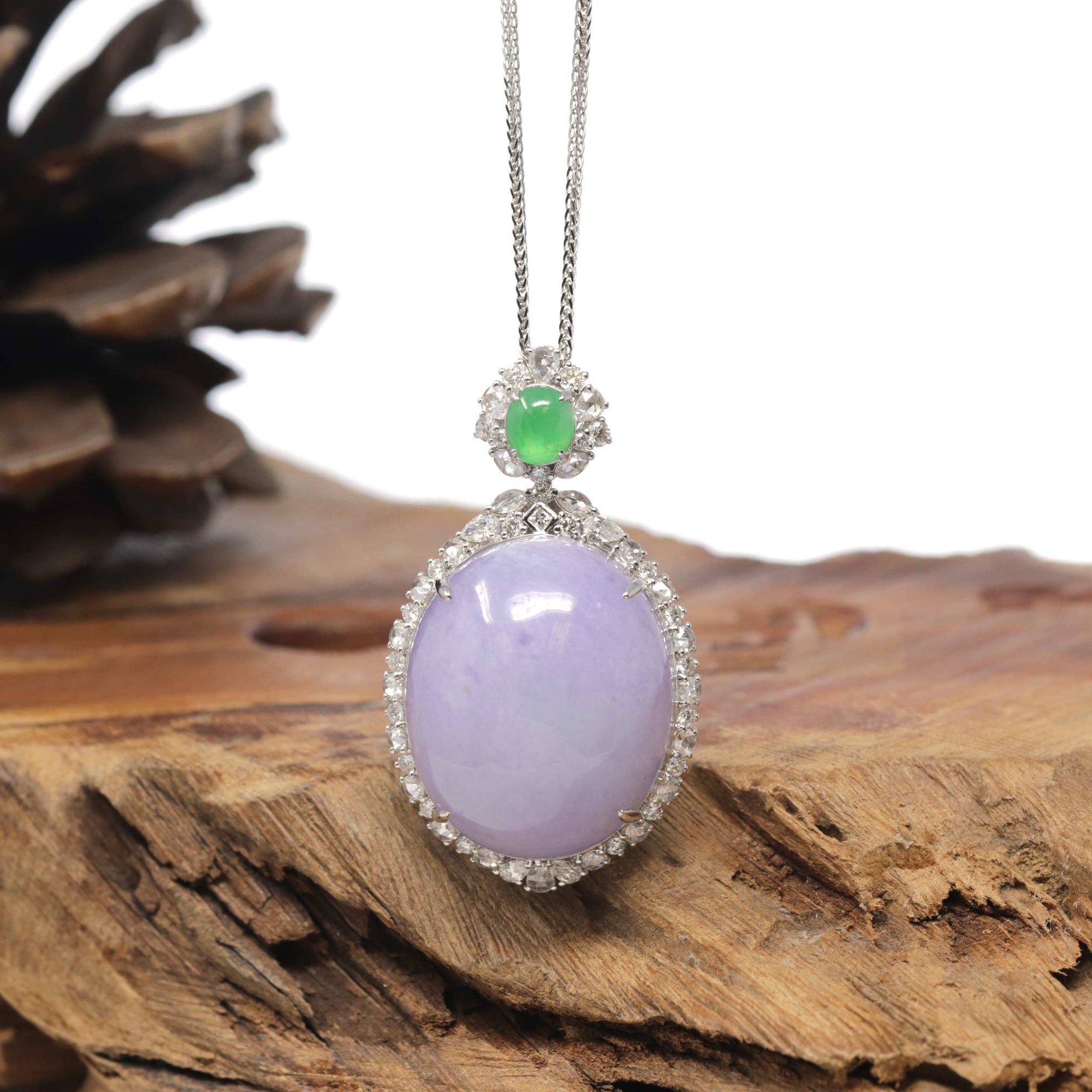 Baikalla 18K White Gold Natural Lavender Jadeite Jade Pendant W/ Natural Diamonds & Imperial Jade