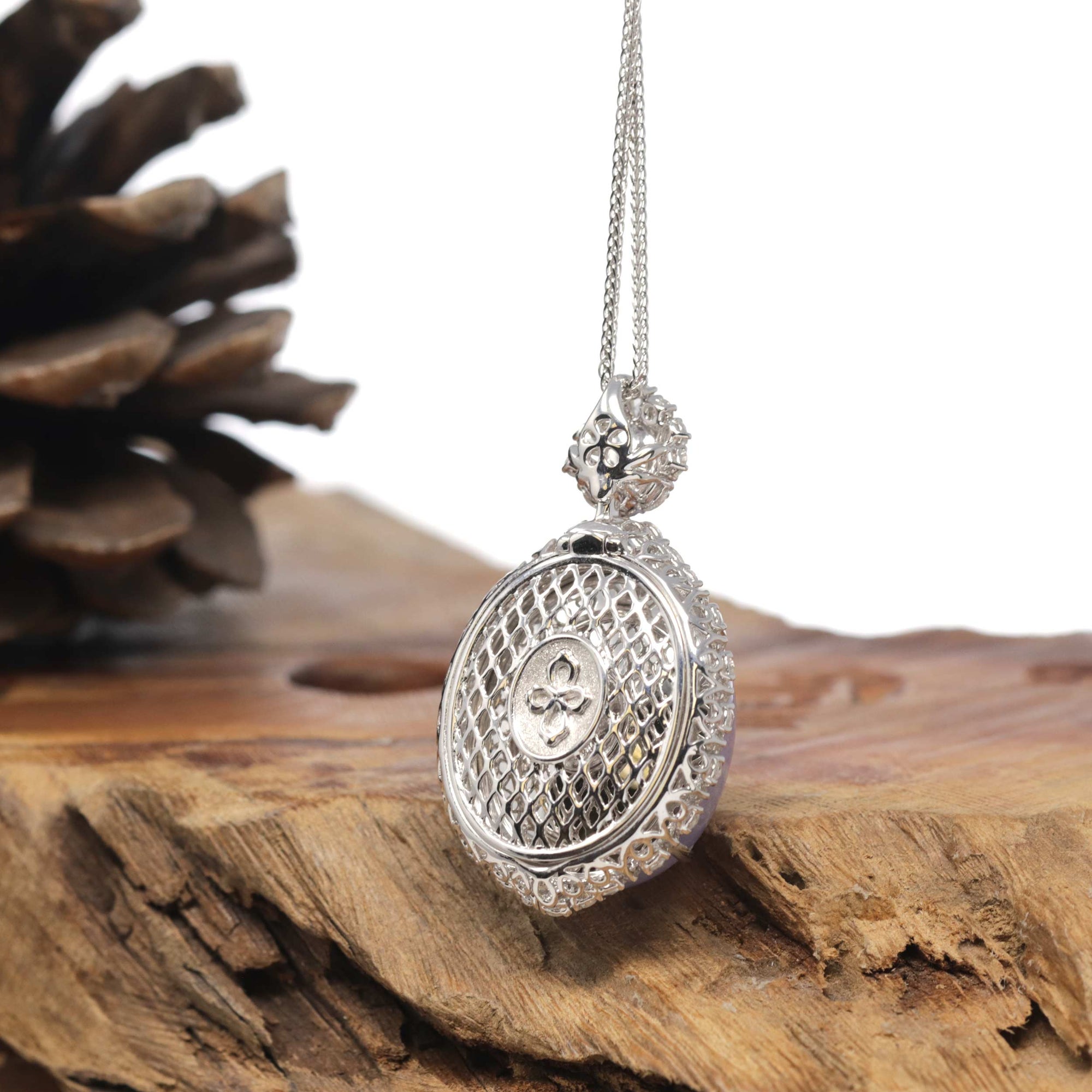 18K White Gold High-End Imperial Jadeite Jade Buddha Necklace with Diamonds