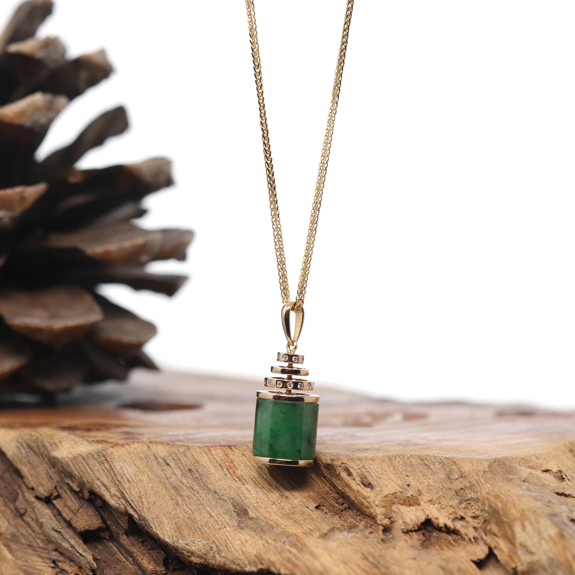 Baikalla Jewelry Gold Jadeite Necklace 18k Rose Gold Genuine Burmese Jadeite Jade Pendant Necklace - Buddha Dharma