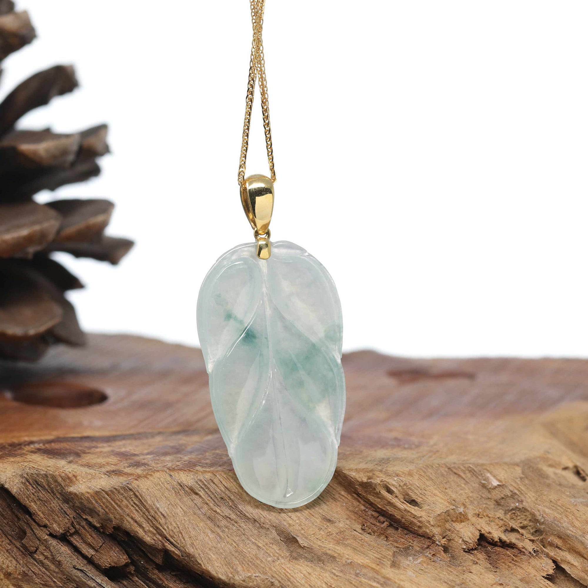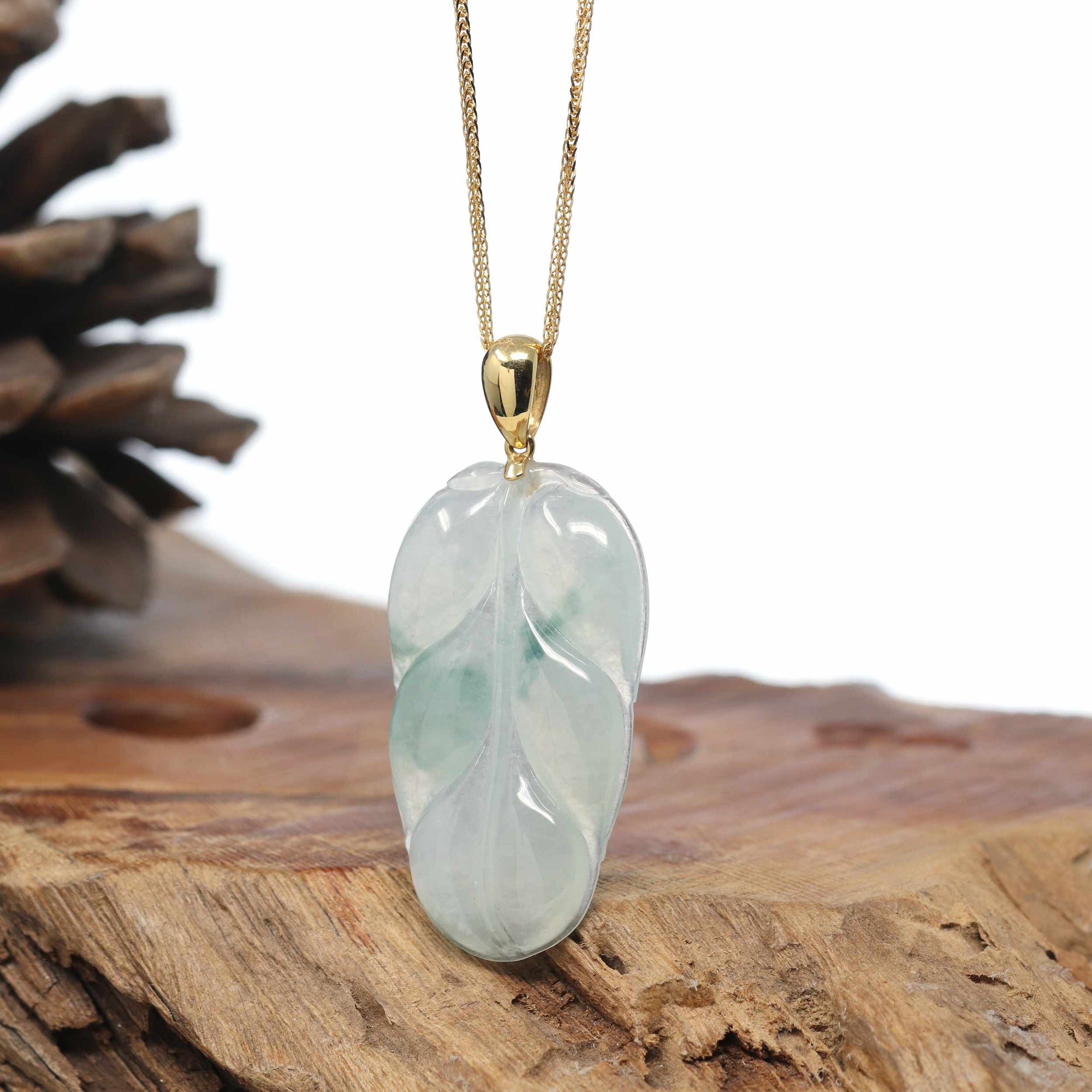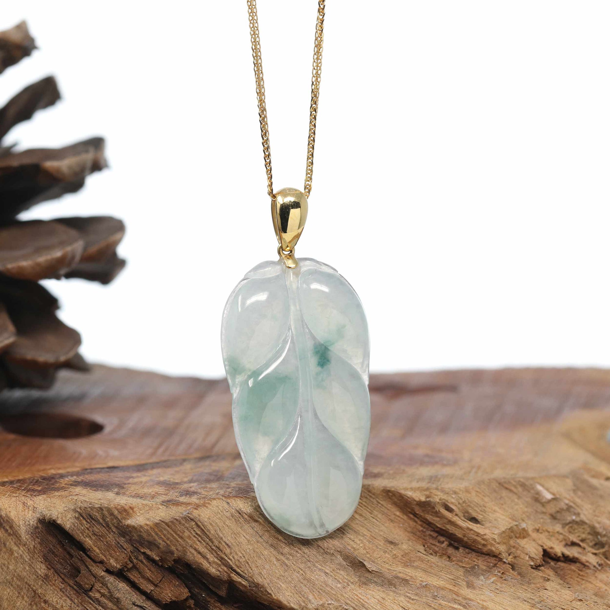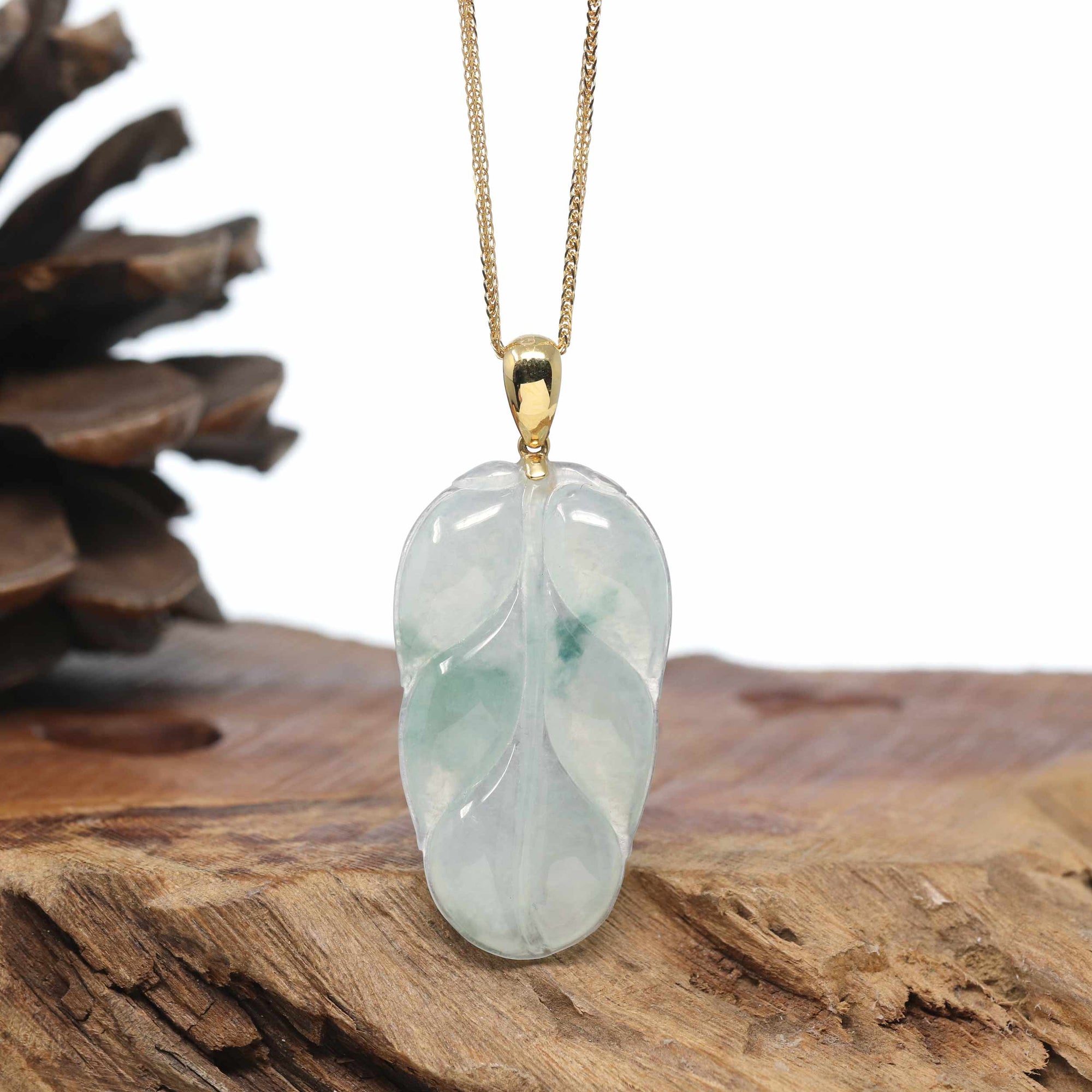 18K White Gold Necklace Ice Leaf Jadeite Jade Pendant Necklace W/ Natural Diamonds