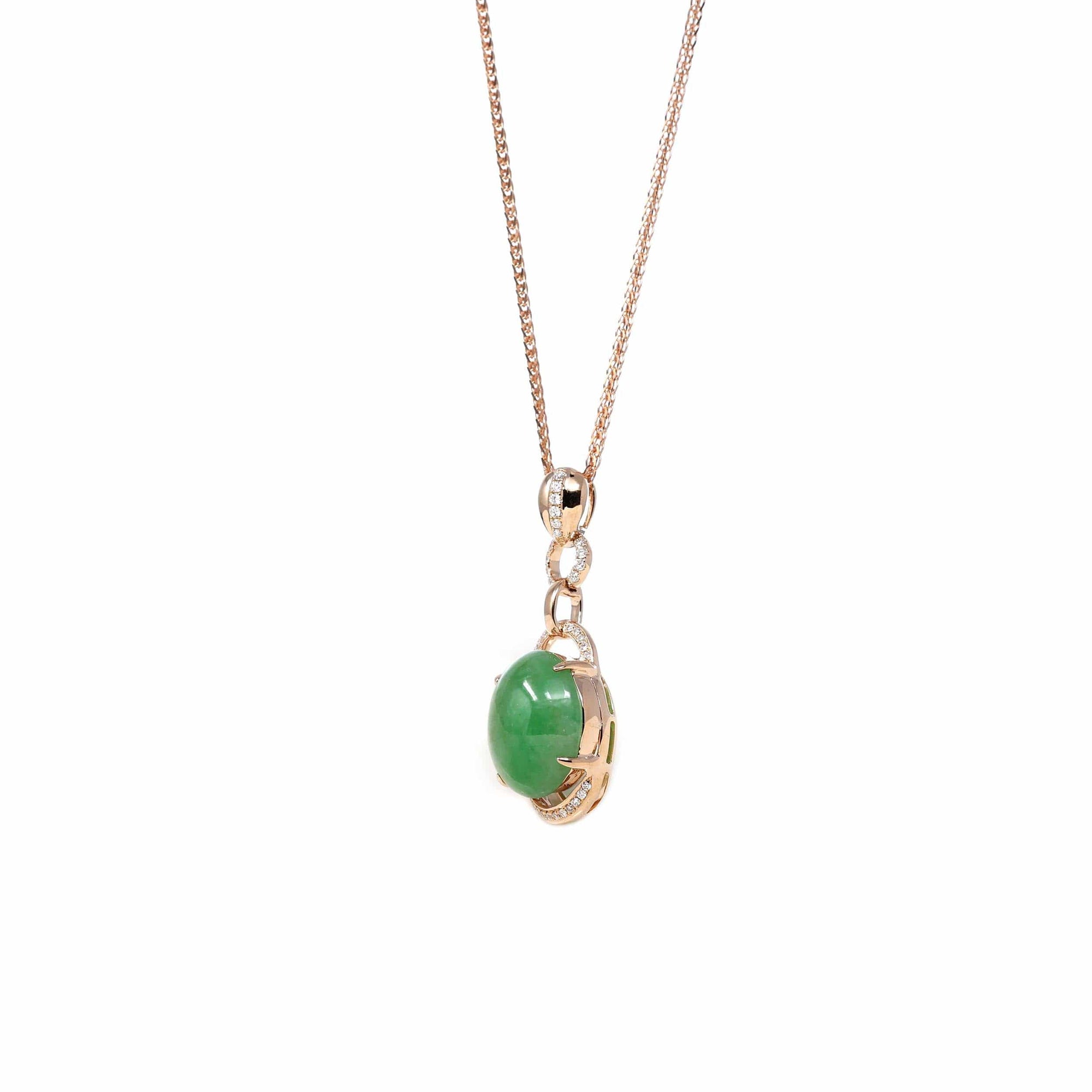 18K Rose Gold Oval Imperial Jadeite Jade Cabochon Necklace with Diamonds
