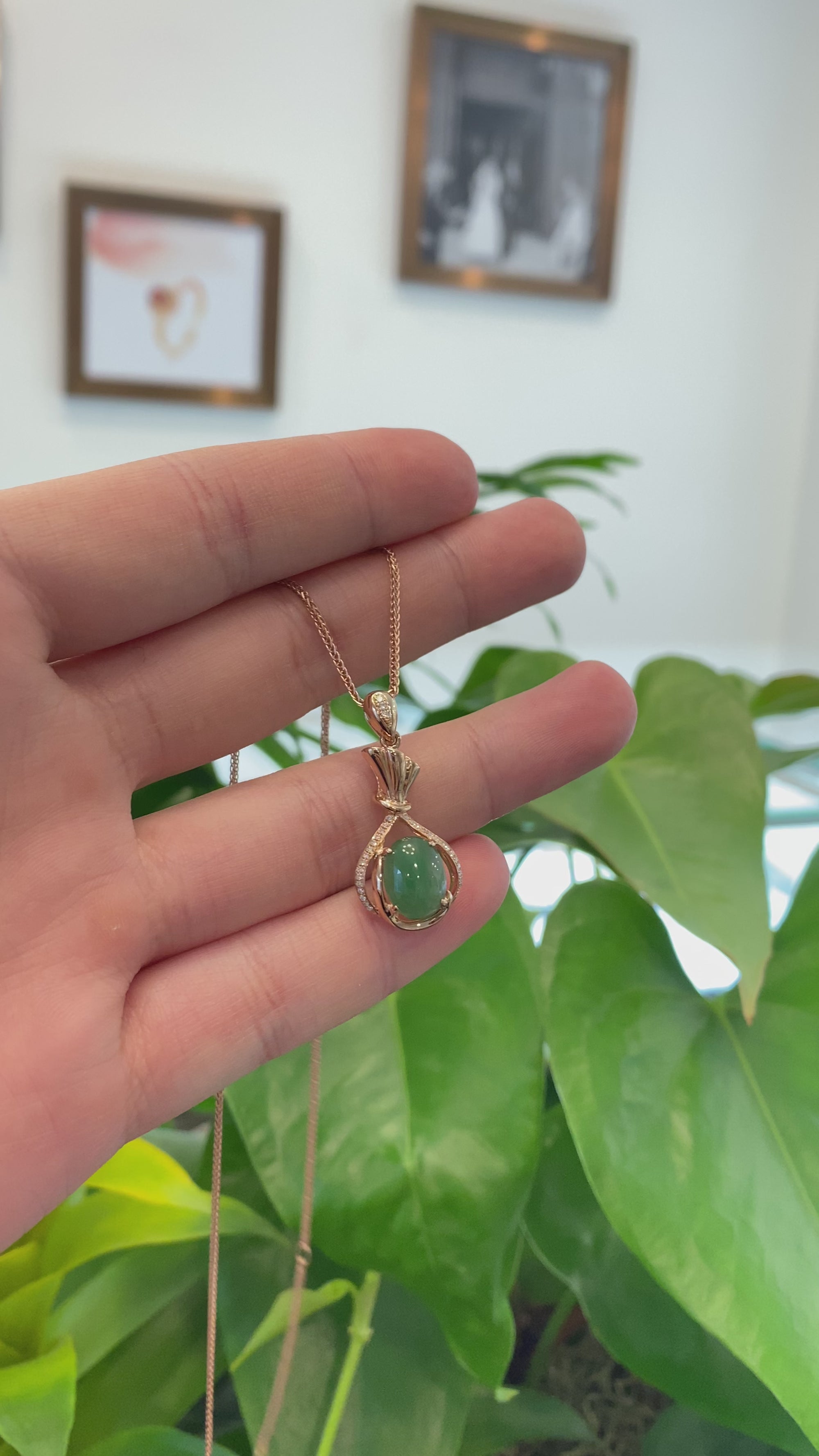 18K Rose Gold Oval Imperial Jadeite Jade Magic Bottle Necklace with Diamonds