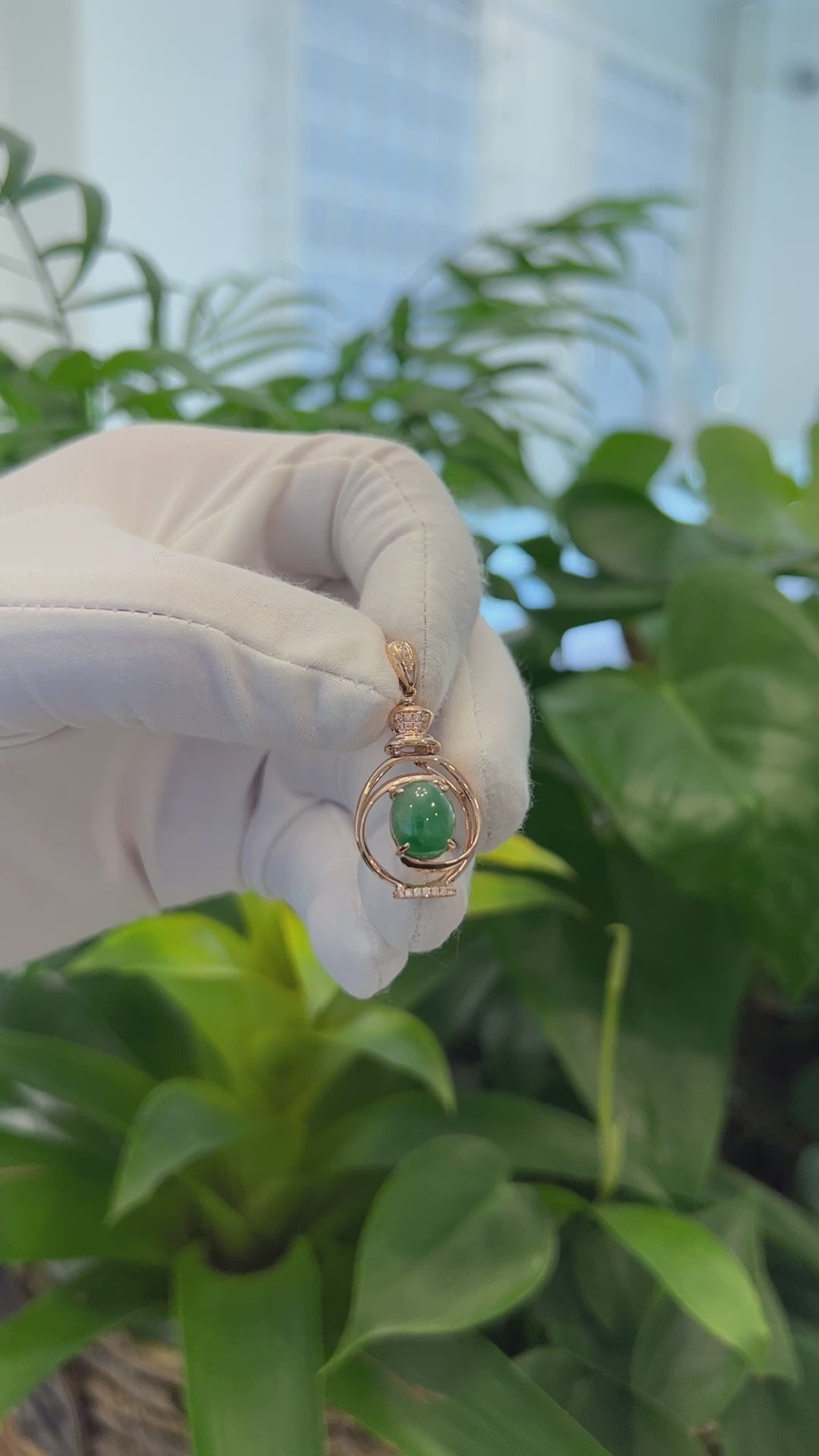 18K Rose Gold "3-stone" Imperial Jadeite Jade Cabochon Pendant with Diamonds