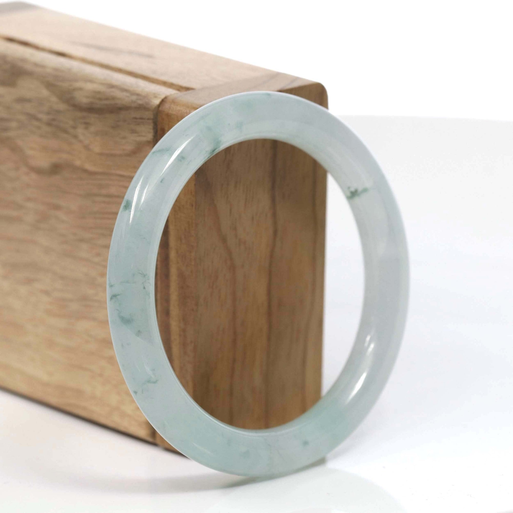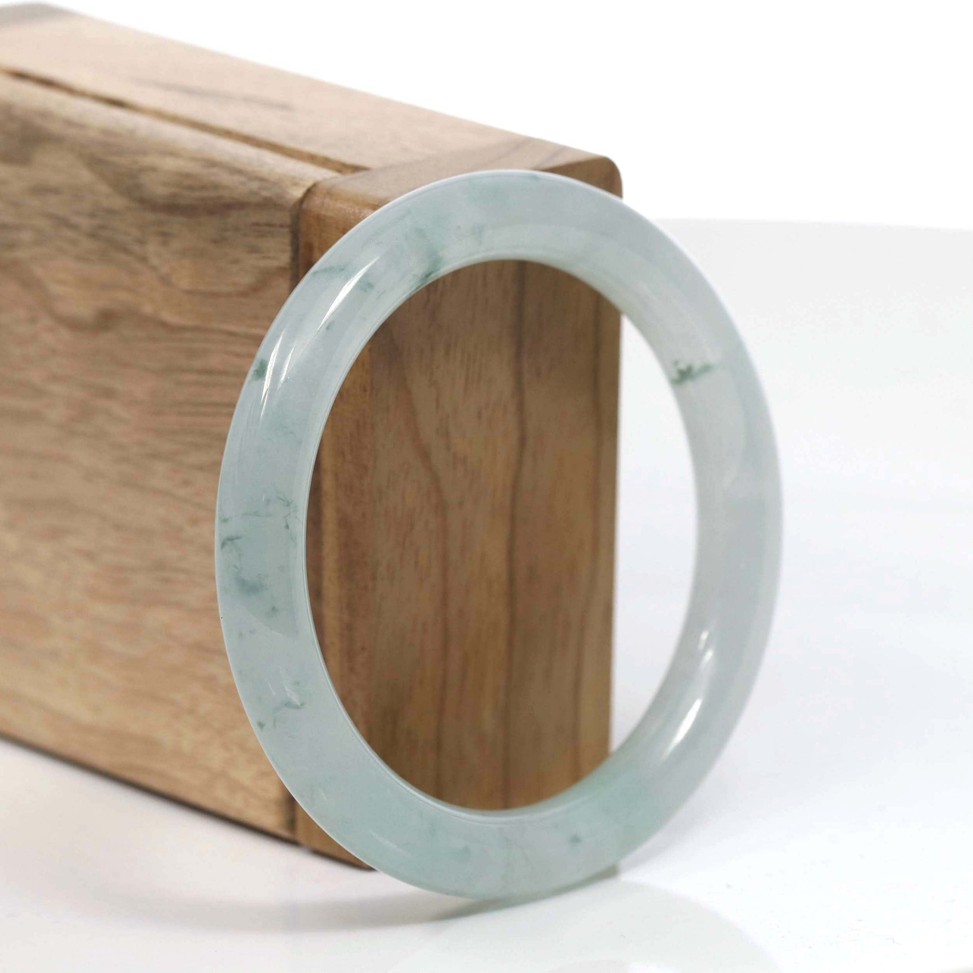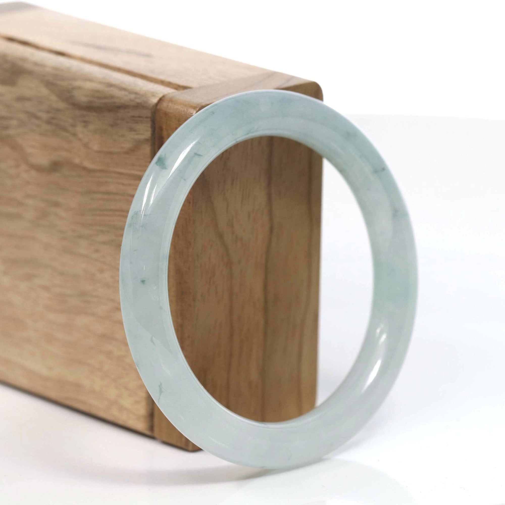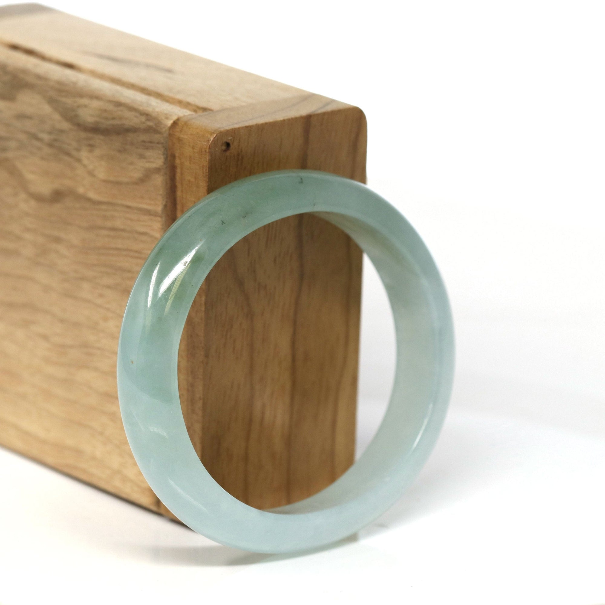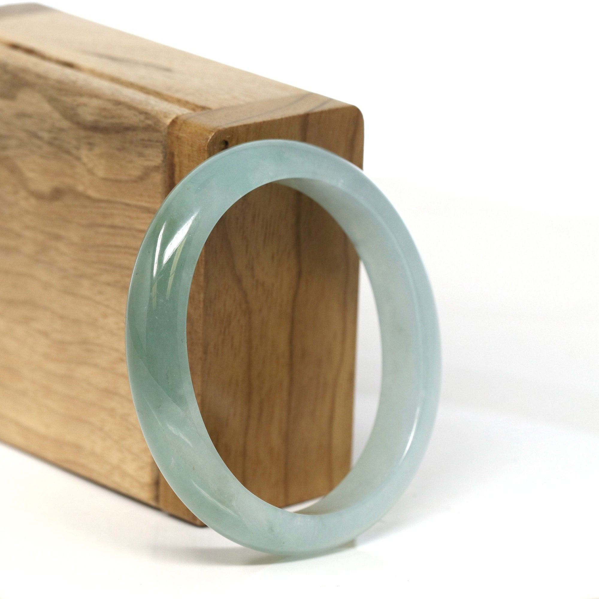 Natural Burmese Light Blue Green Jadeite Jade Bangle Bracelet (53.45mm) #T065