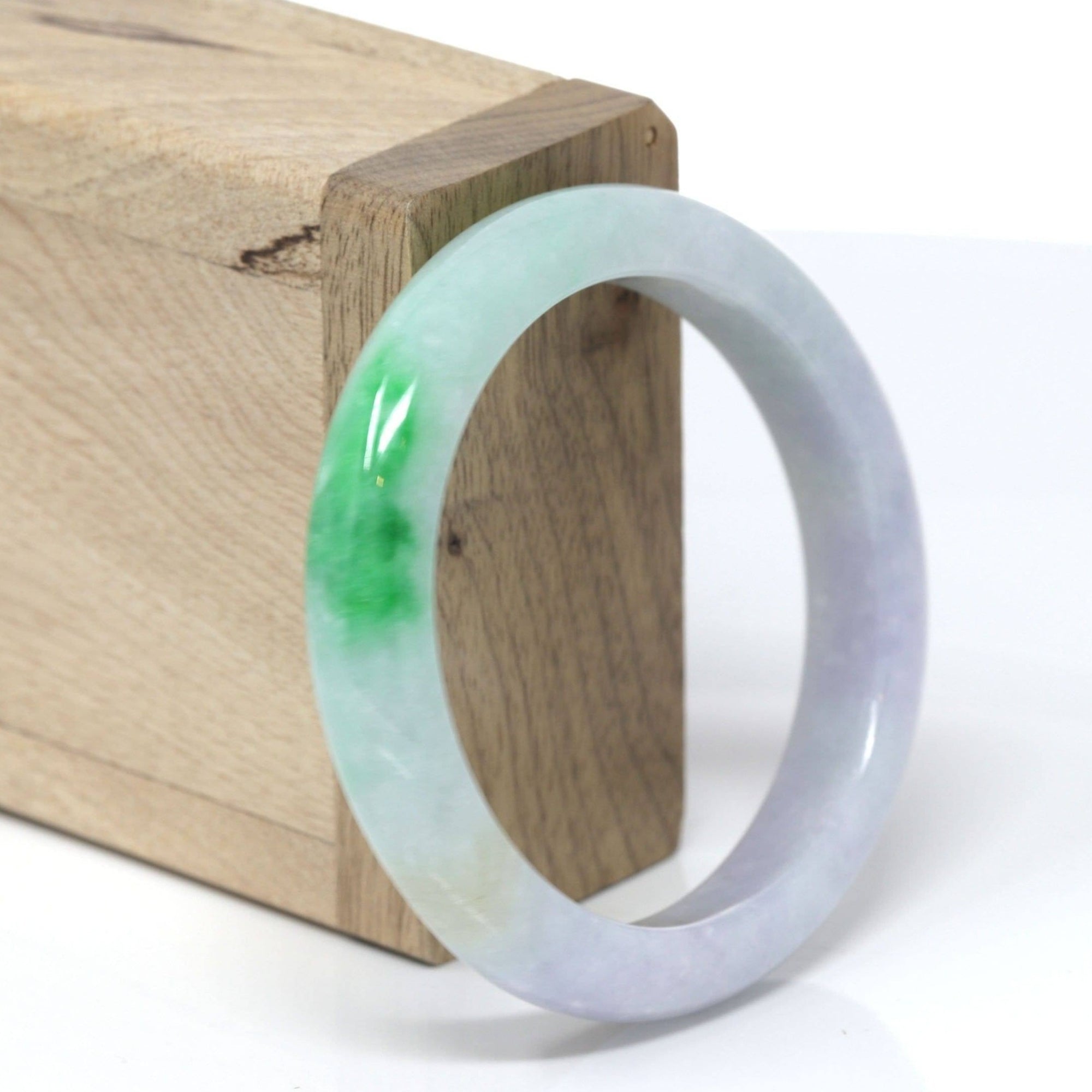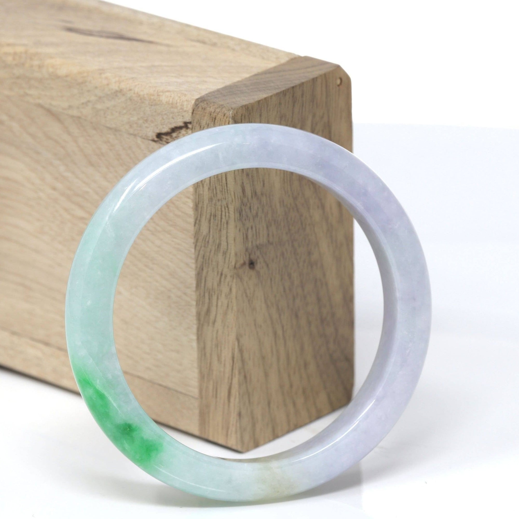 Natural Burmese Blue Green Lavender Jadeite Jade Bangle Bracelet (53.45mm) #T281