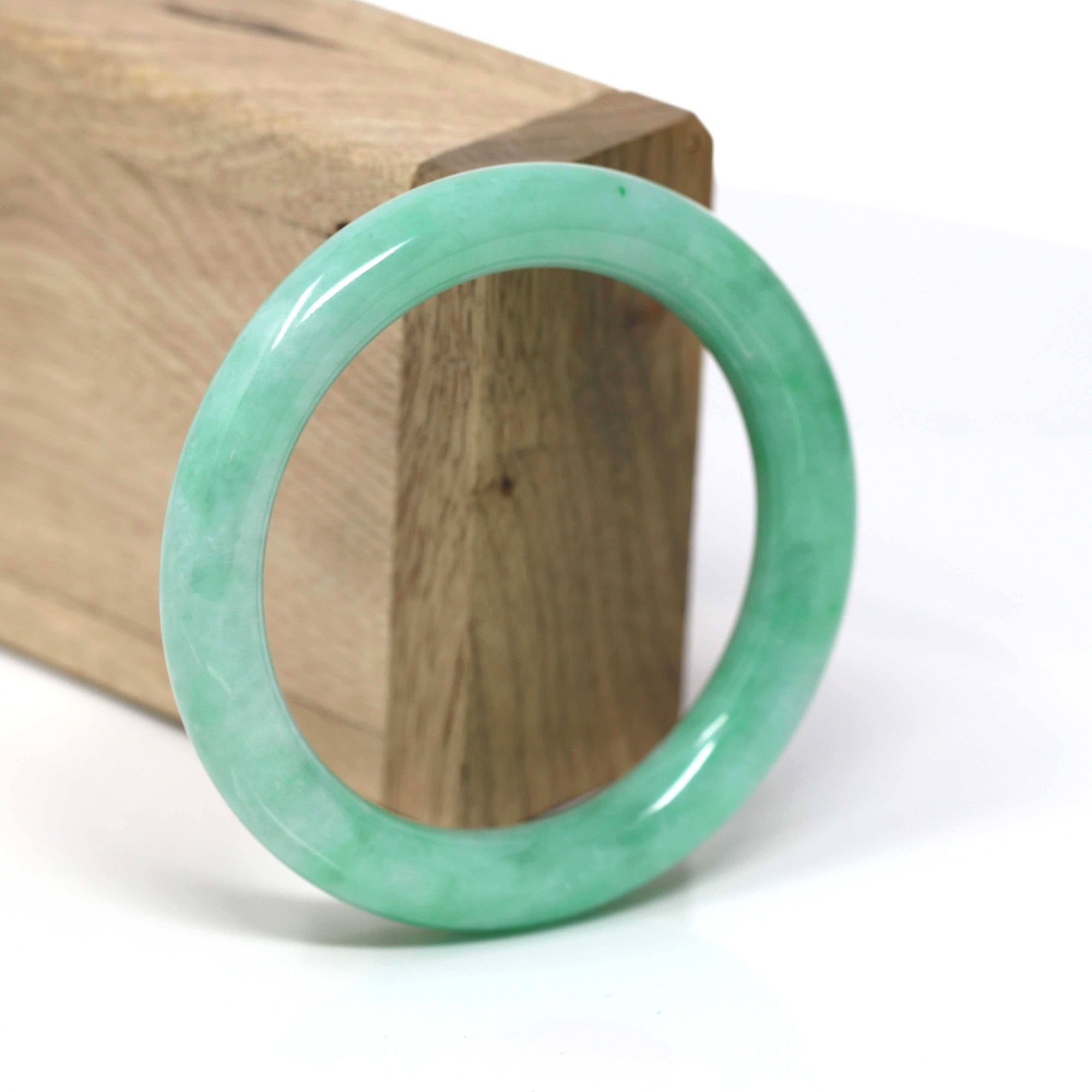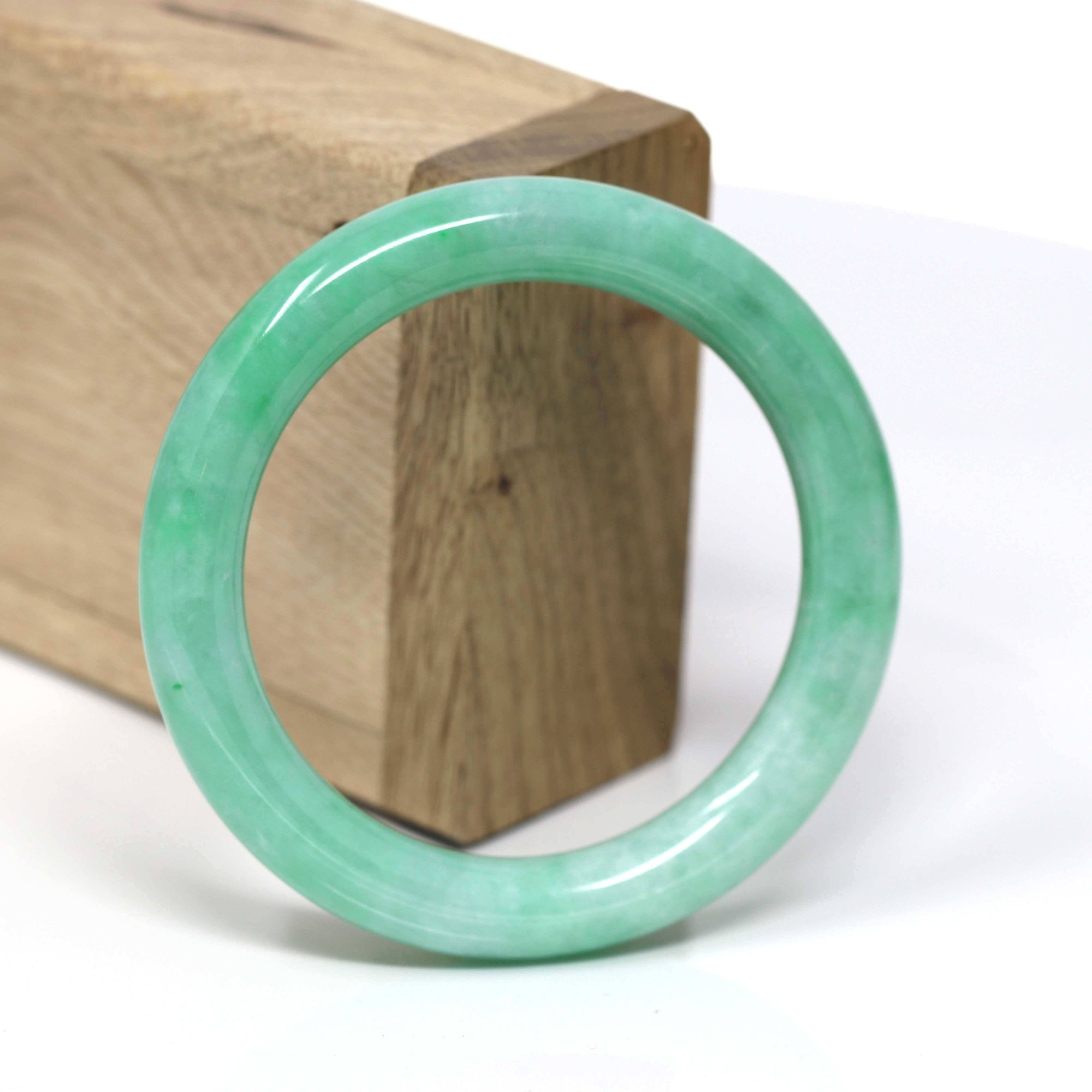 Natural Burmese High end Ice Green Jadeite Jade Bangle Bracelet (51.4 mm) #T807