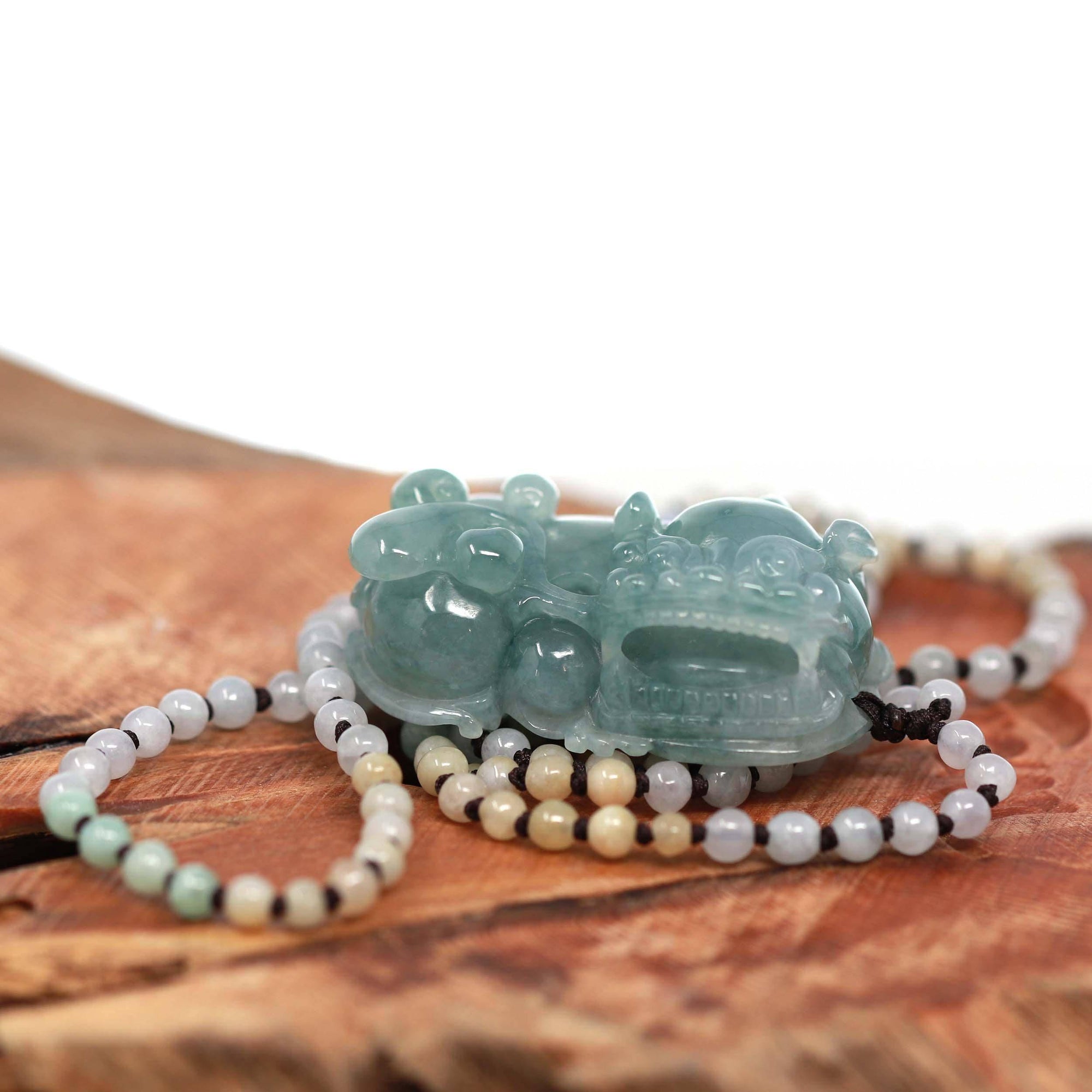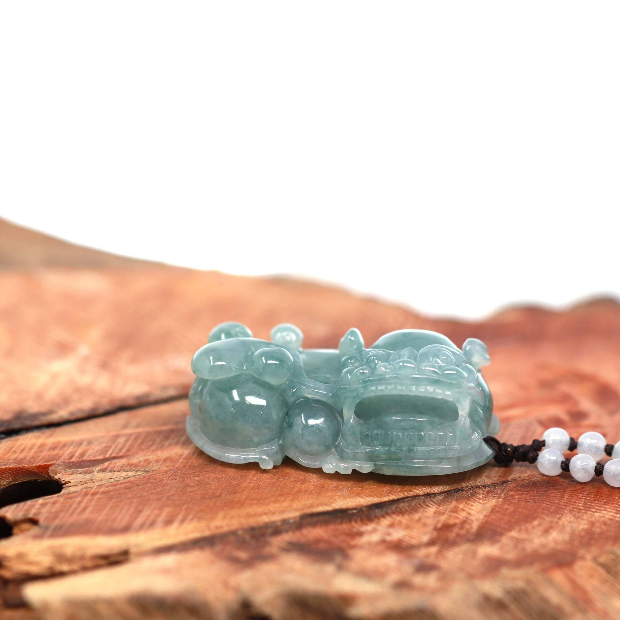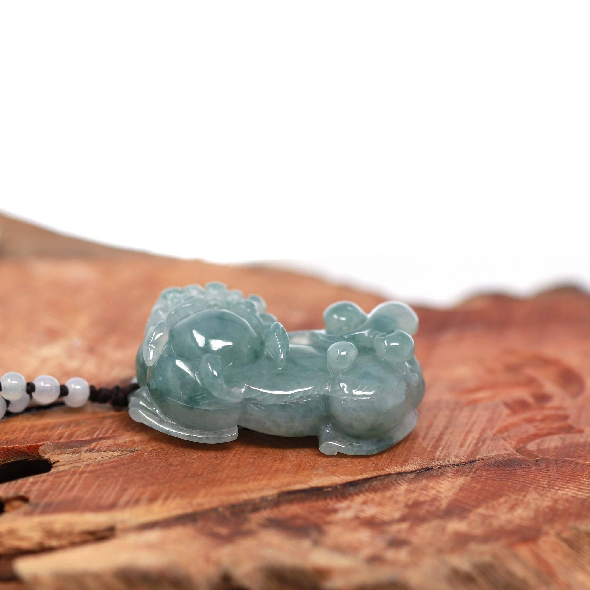 Baikalla™ Pi Xiu Genuine Burmese Blue Green Icy Jadeite Jade PiXiu Pendant Necklace (FengShui Lucky)