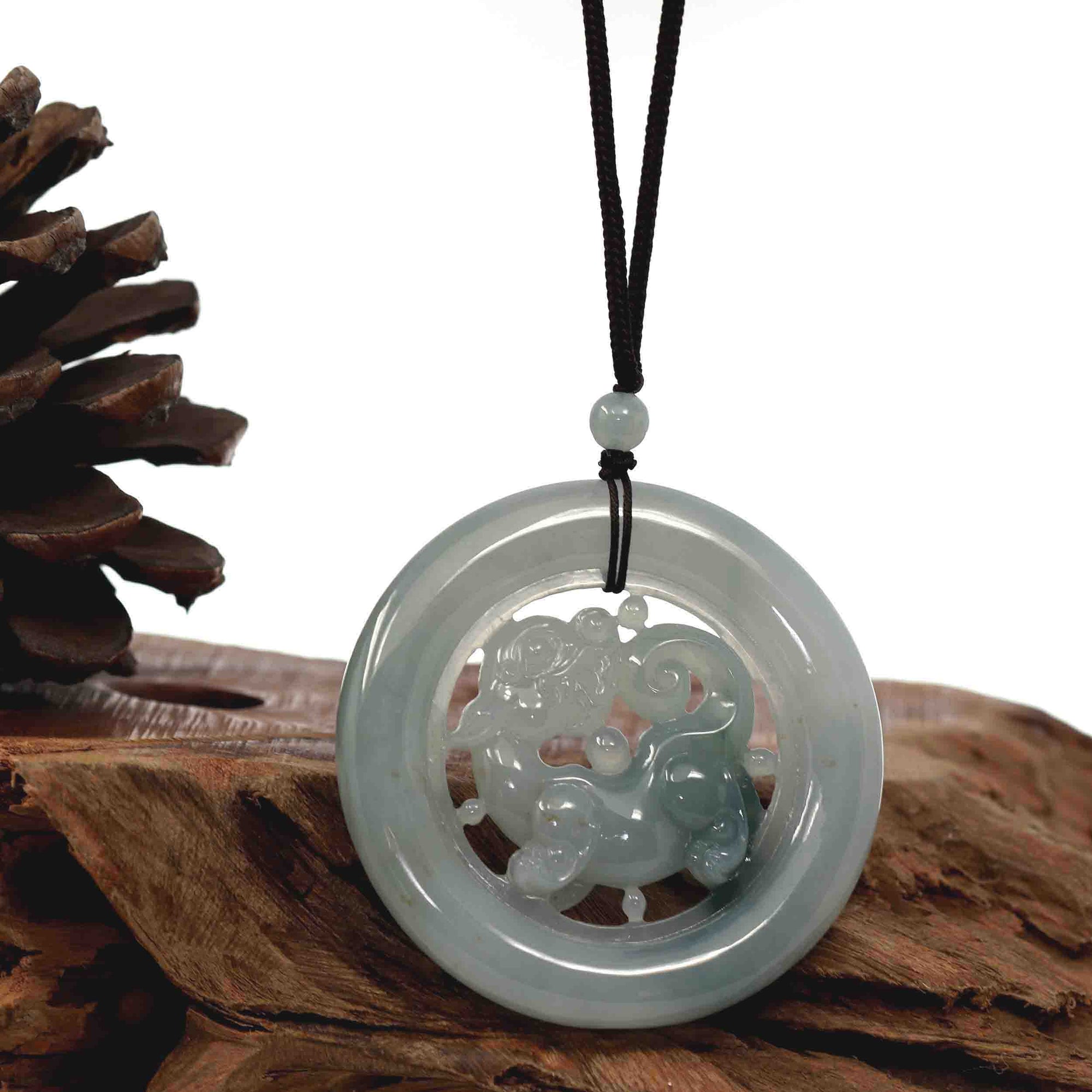 Baikalla™ Pi Xiu Genuine Burmese Translucent Jadeite Jade PiXiu Pendant Necklace (FengShui Lucky)