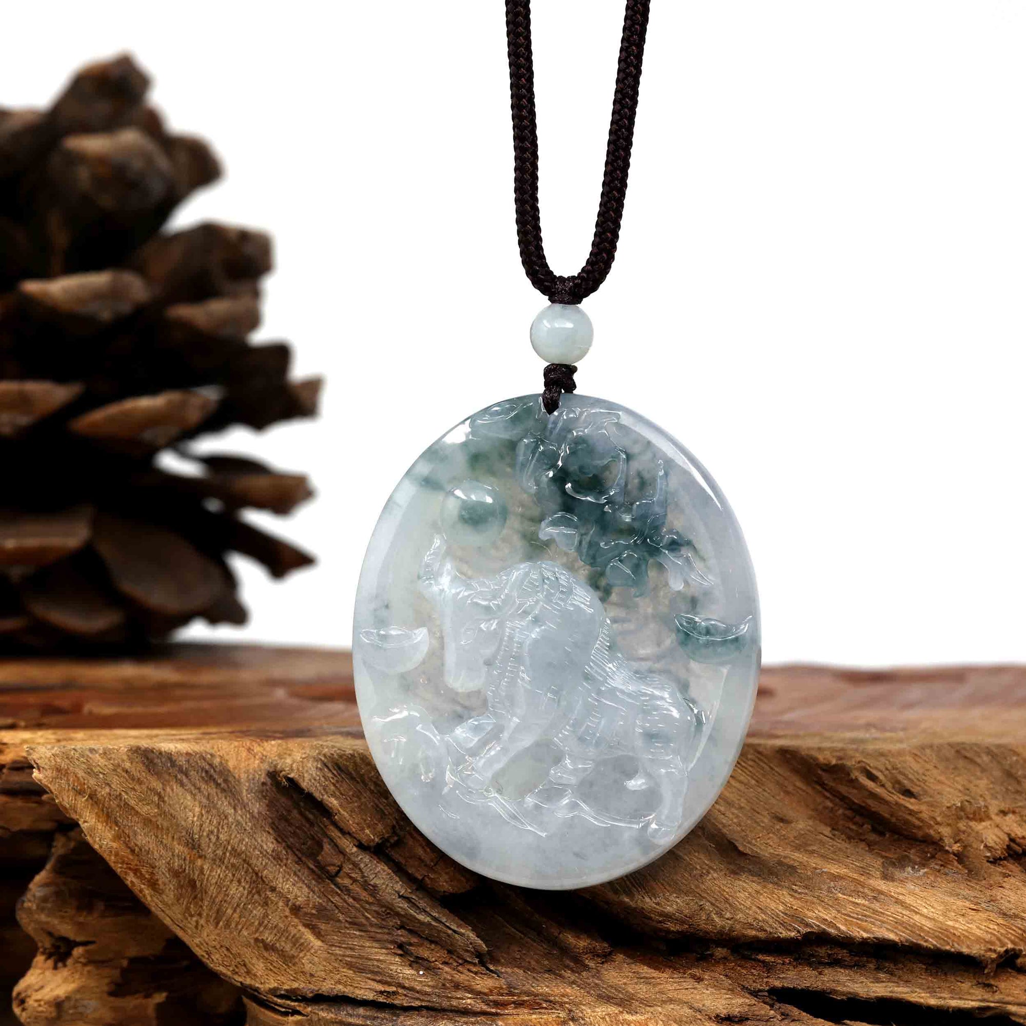 Natural Ice Blue-green Jadeite Jade " Bull " Zodiac Pendant Necklace For Men
