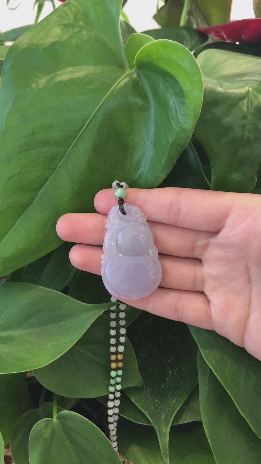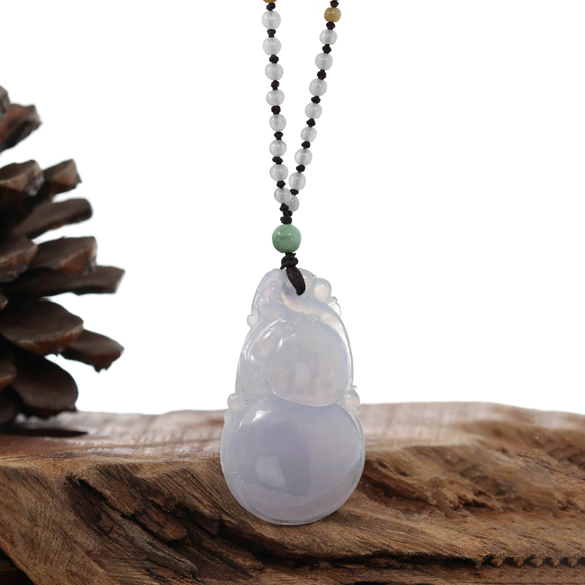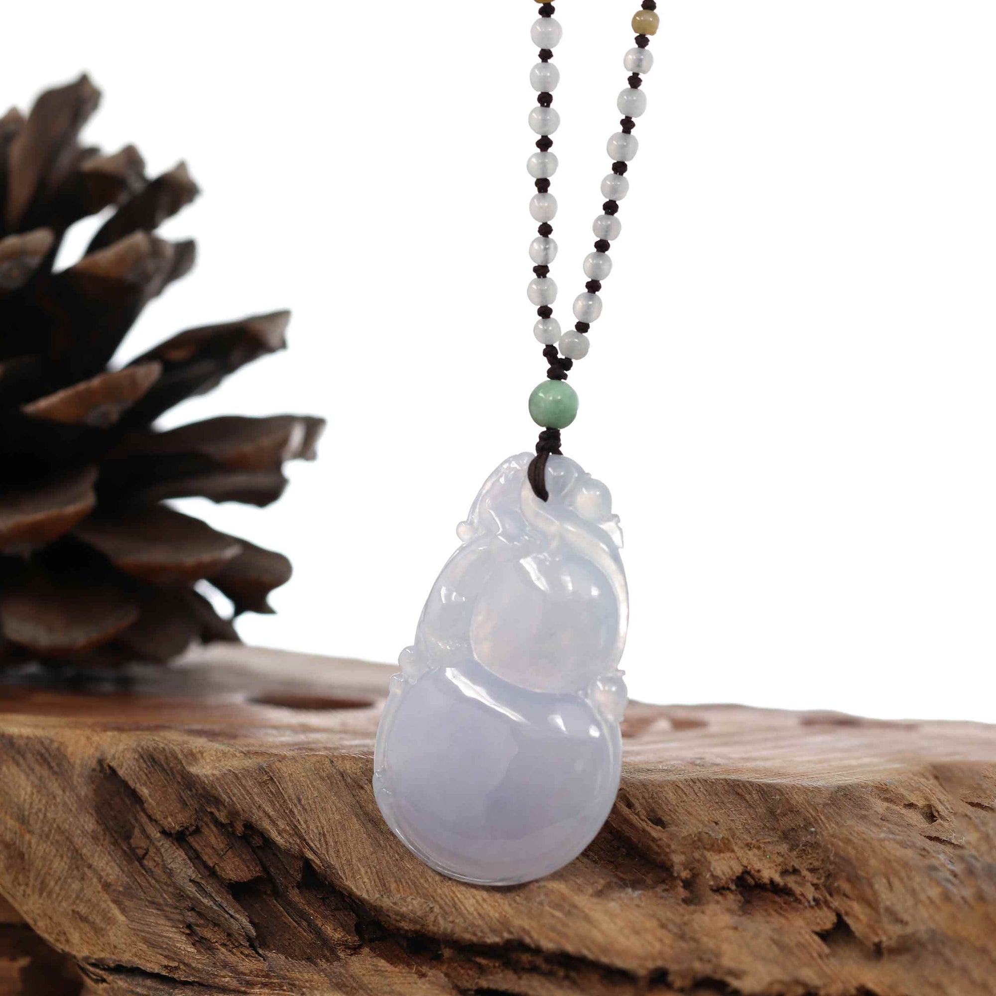 Genuine Ice Light Lavender Jadeite Jade "Good Luck HuLu with Dragon Accent" Pendant Necklace With Real Jadeite Beads Necklace