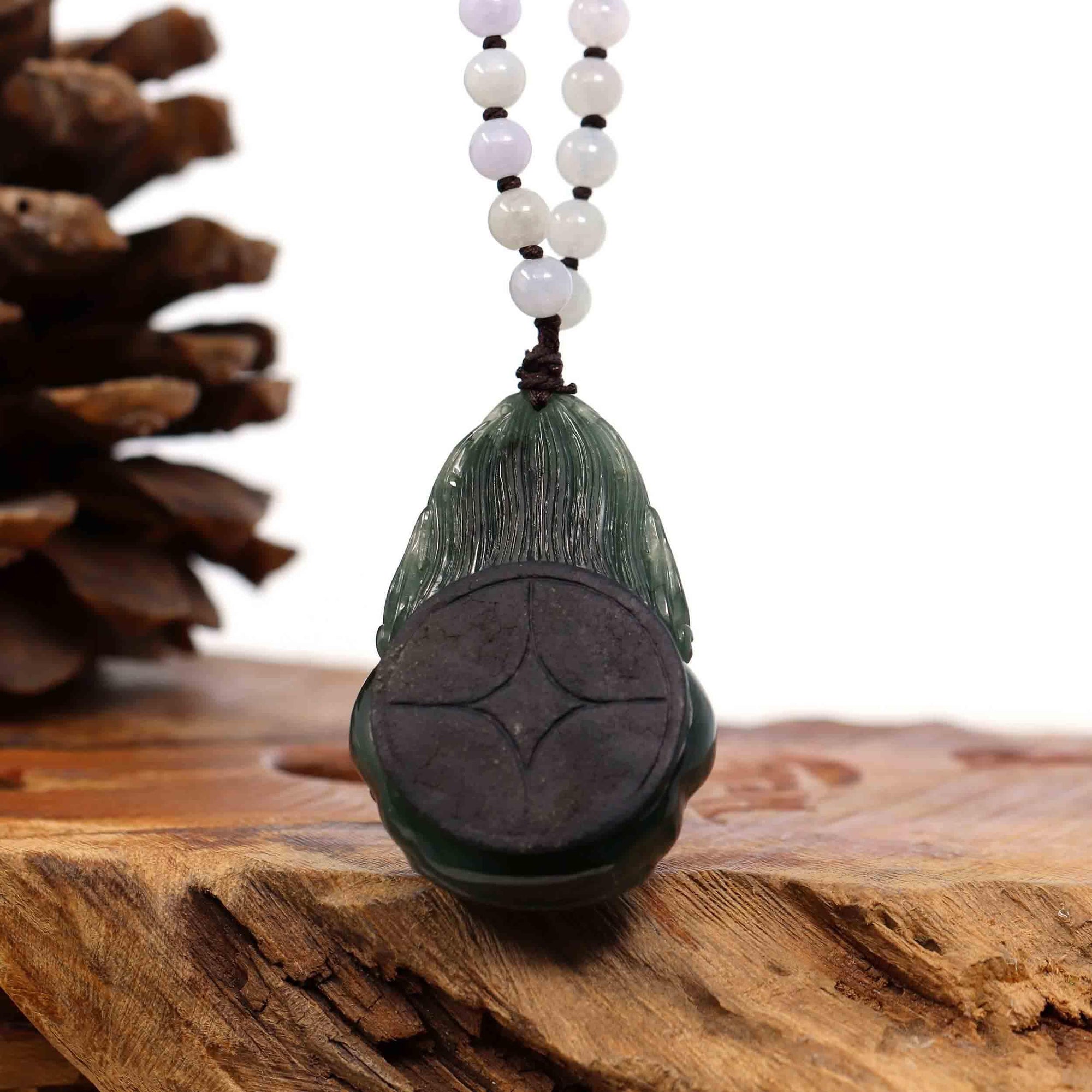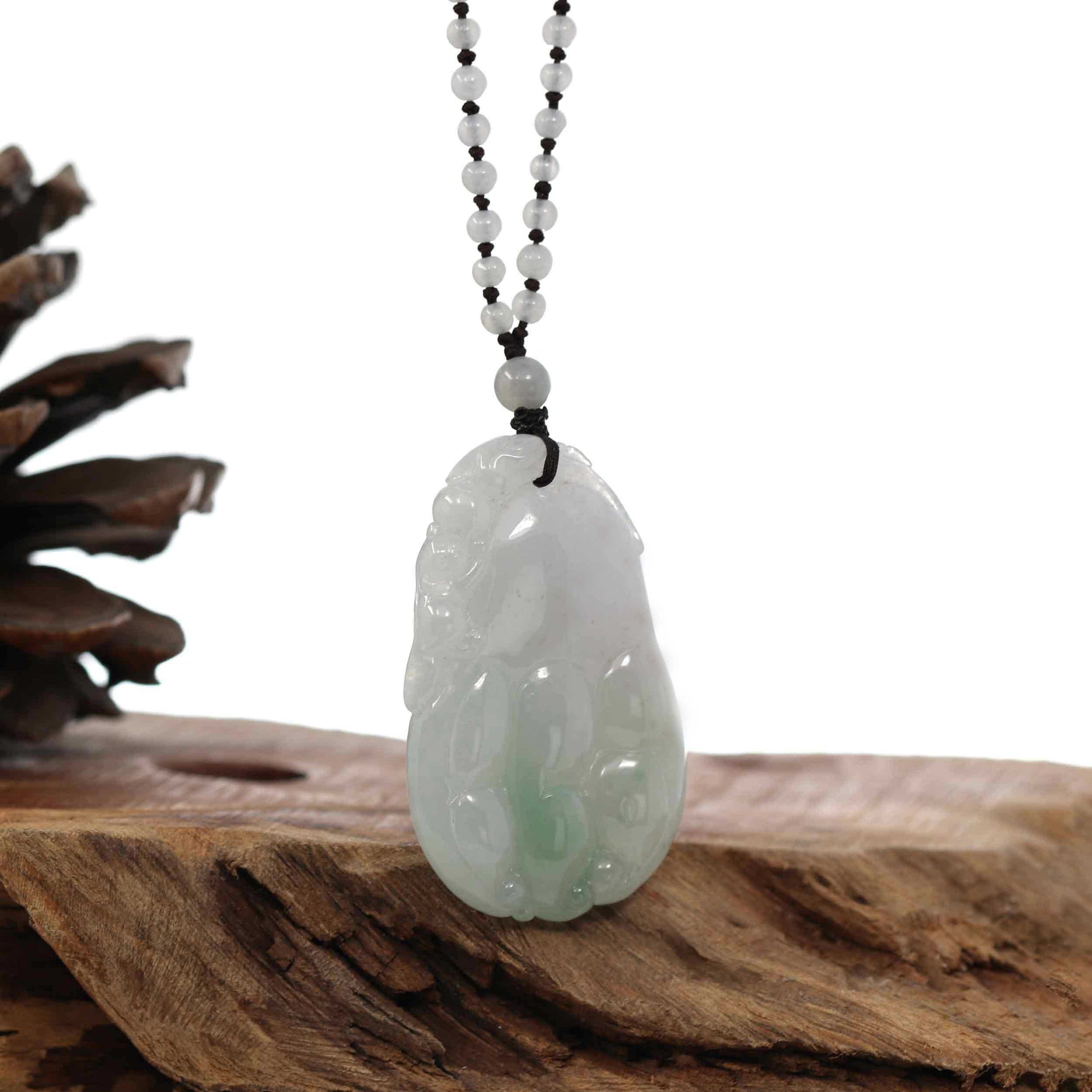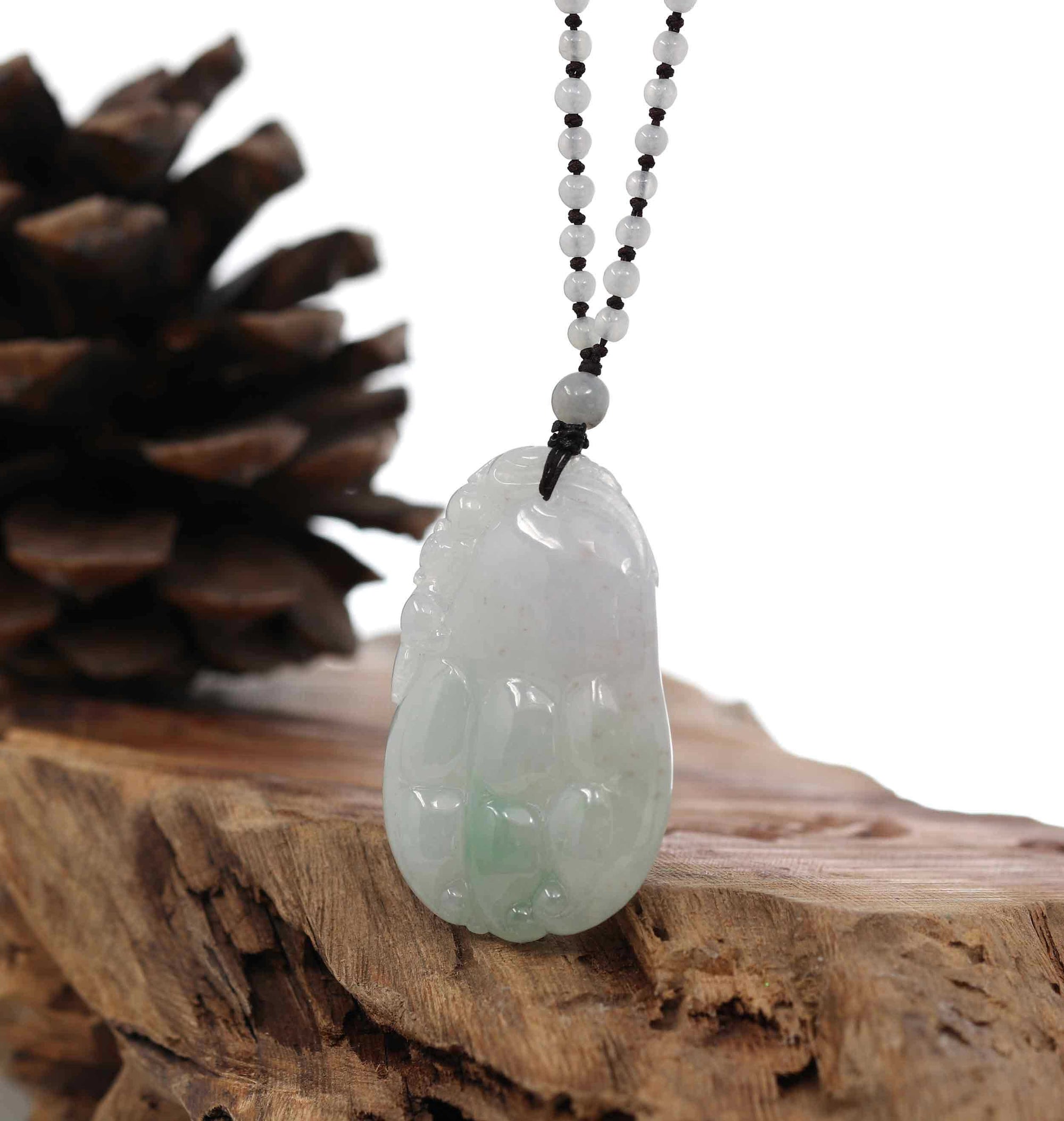 Genuine Ice Light Lavender Jadeite Jade "Good Luck HuLu with Dragon Accent" Pendant Necklace With Real Jadeite Beads Necklace