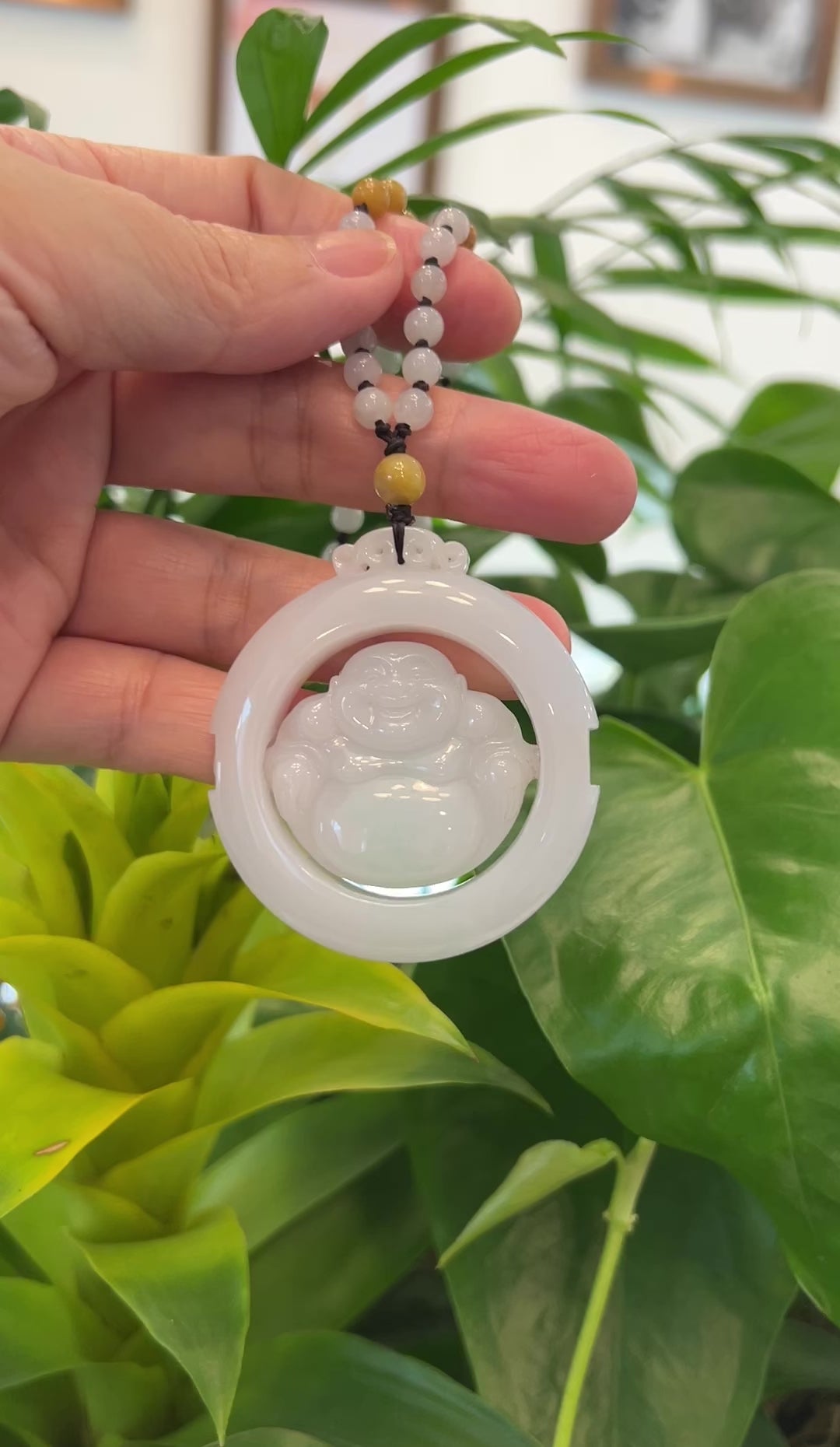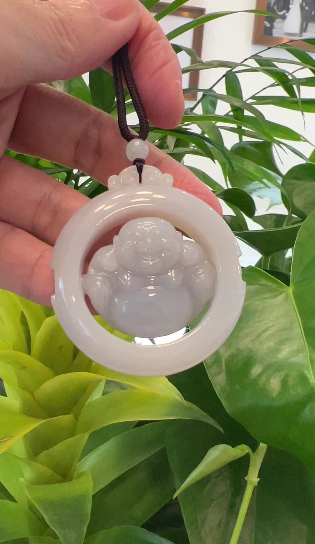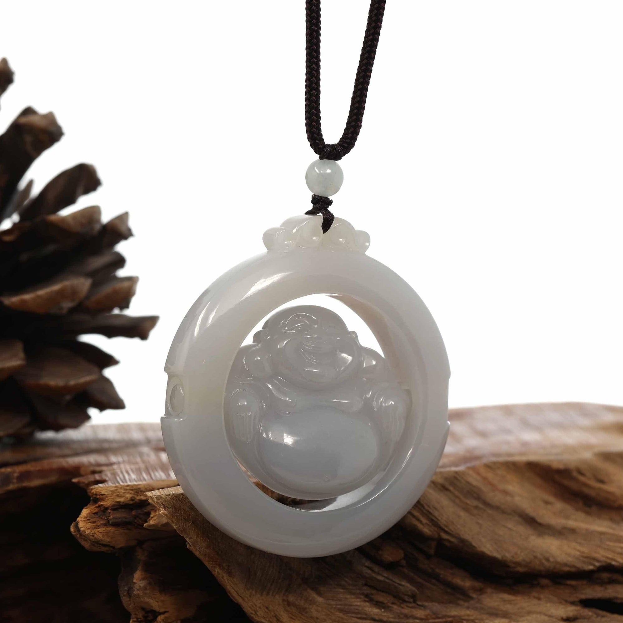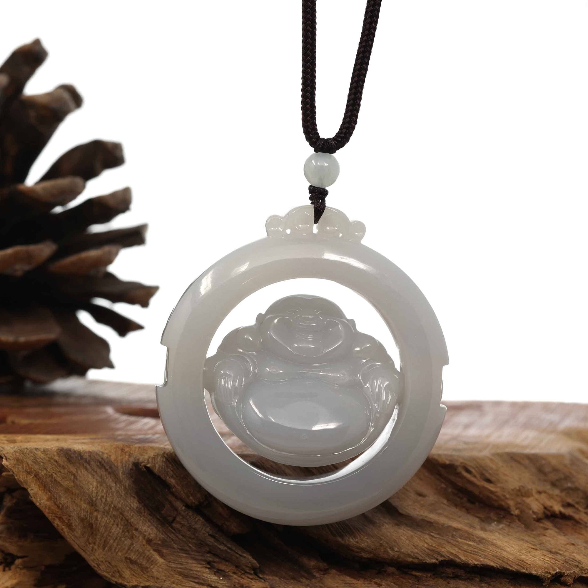 Baikalla "Goddess of Compassion" Genuine Burmese Jadeite Jade Happy Buddha Pendant