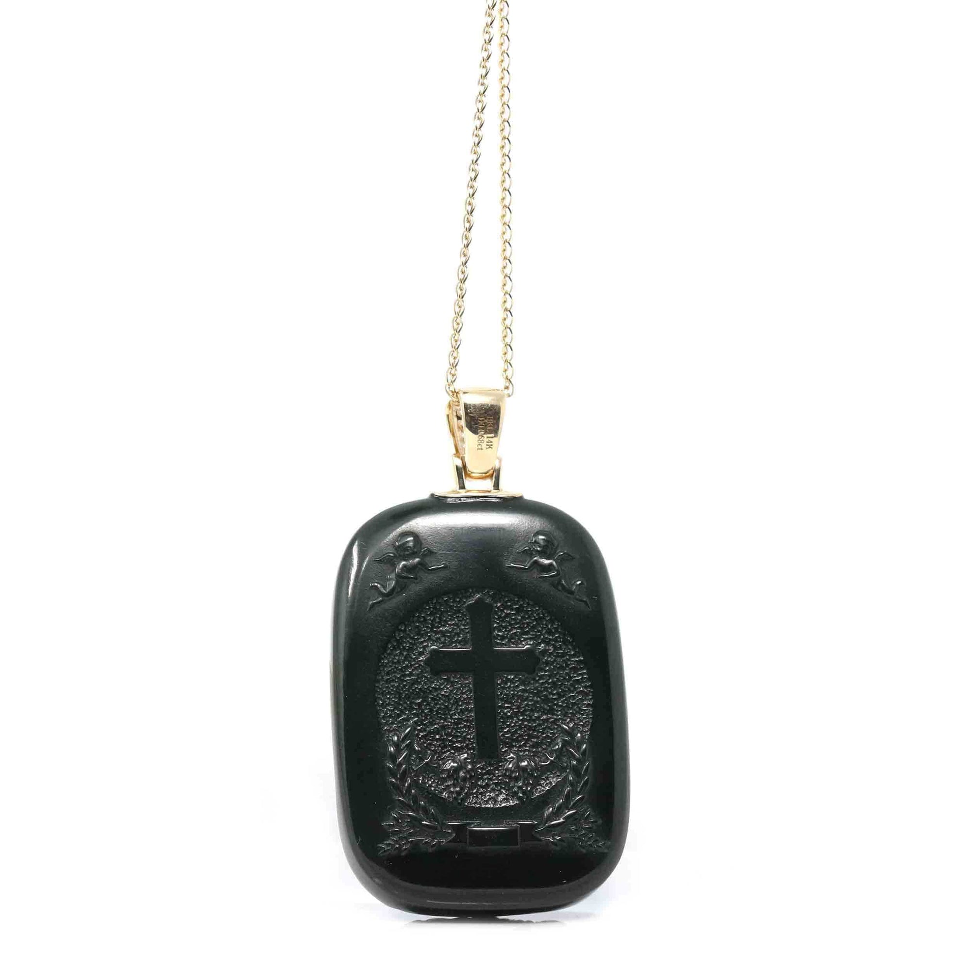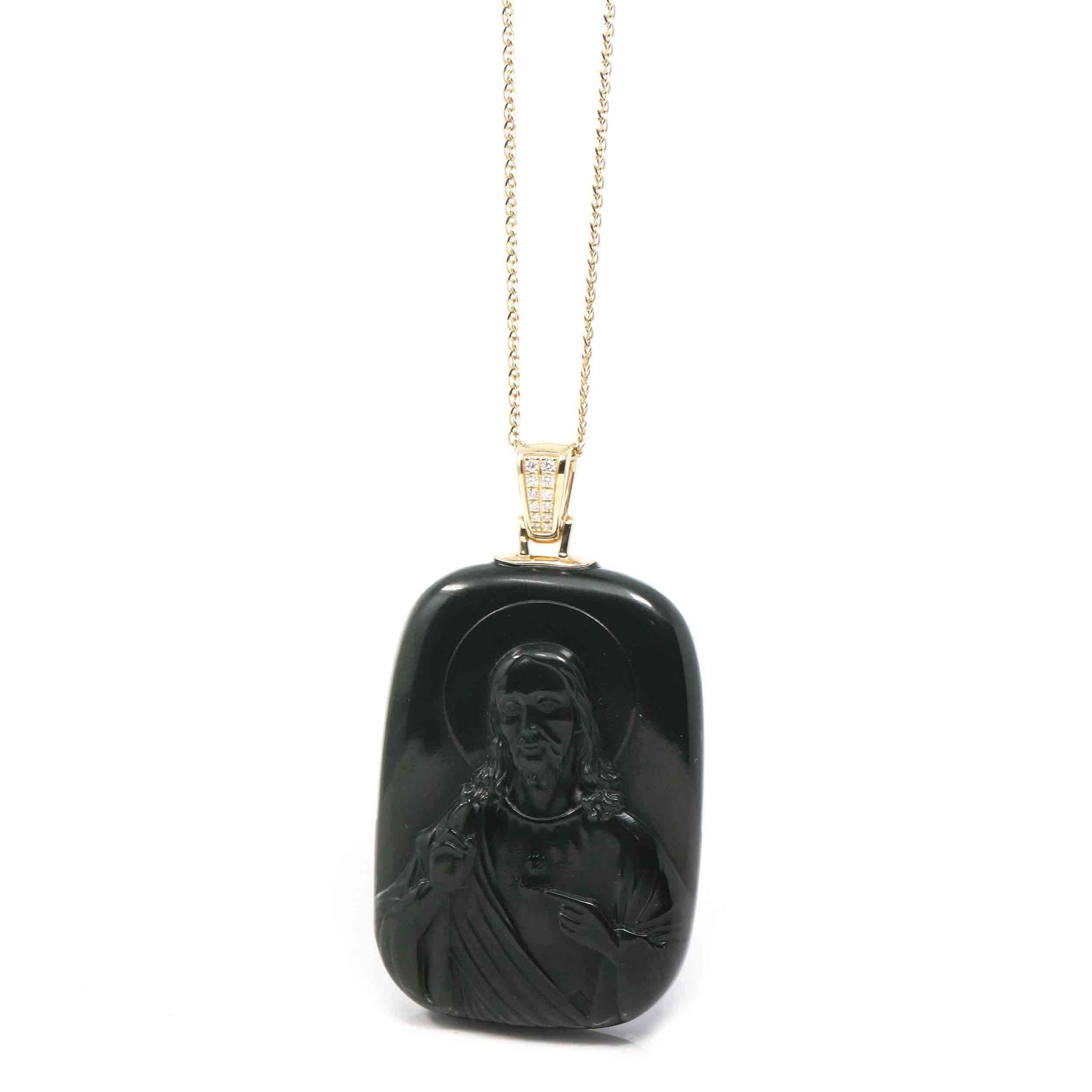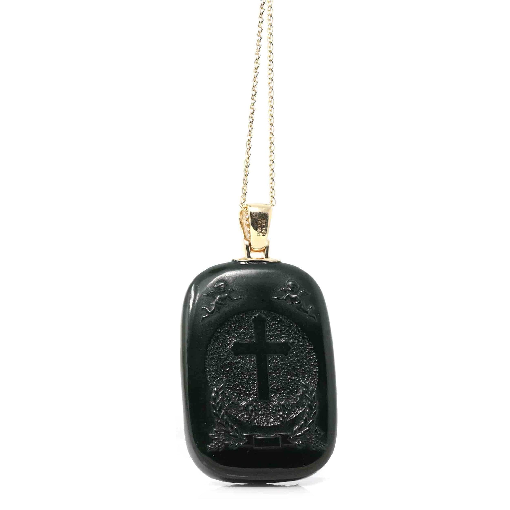 Baikalla™ 14K Yellow Gold Genuine Nephrite Black Jade " Jesus " Pendant Necklace