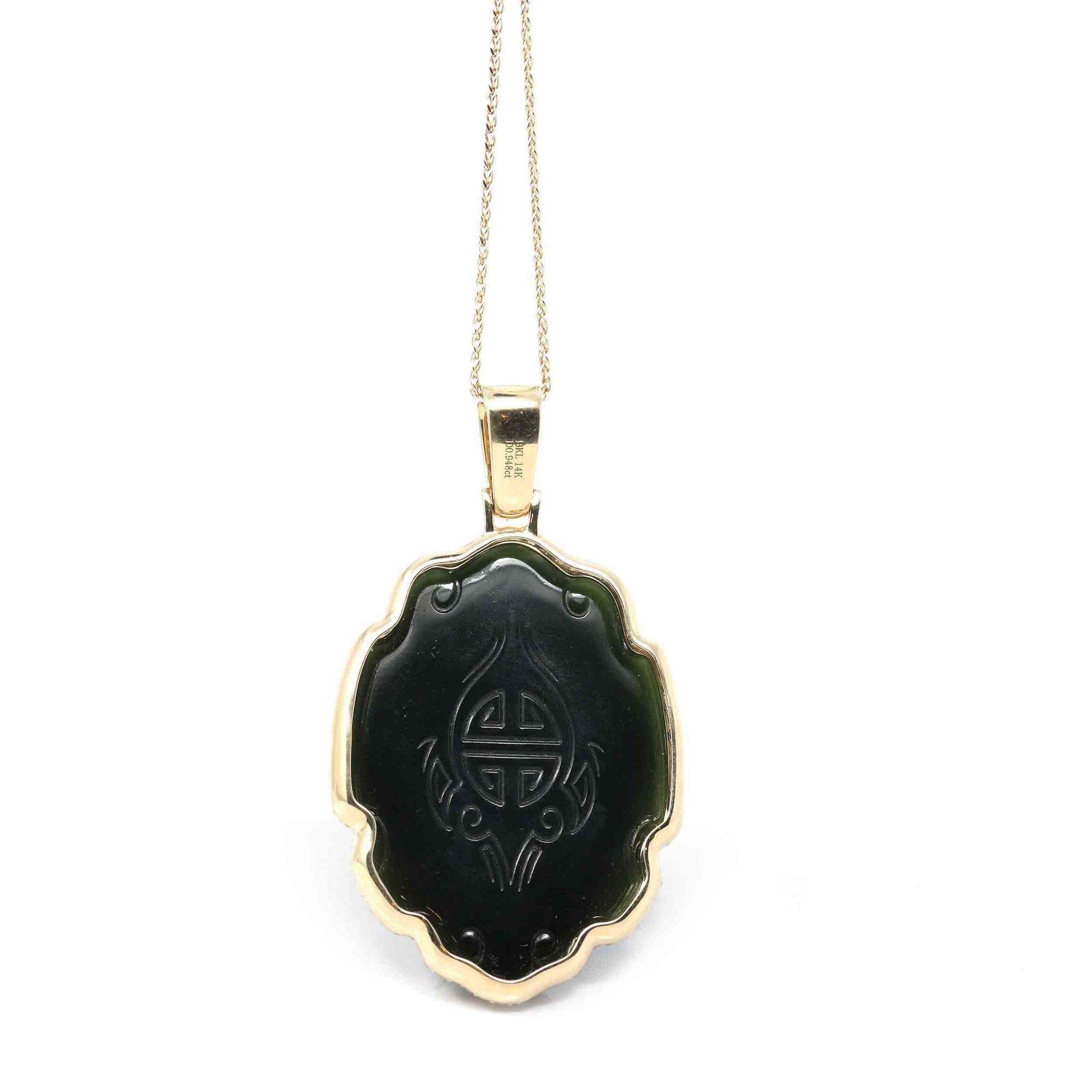 Baikalla™ 14K Yellow Gold Genuine Nephrite Black Jade " Da Hei Tian " Pendant Necklace