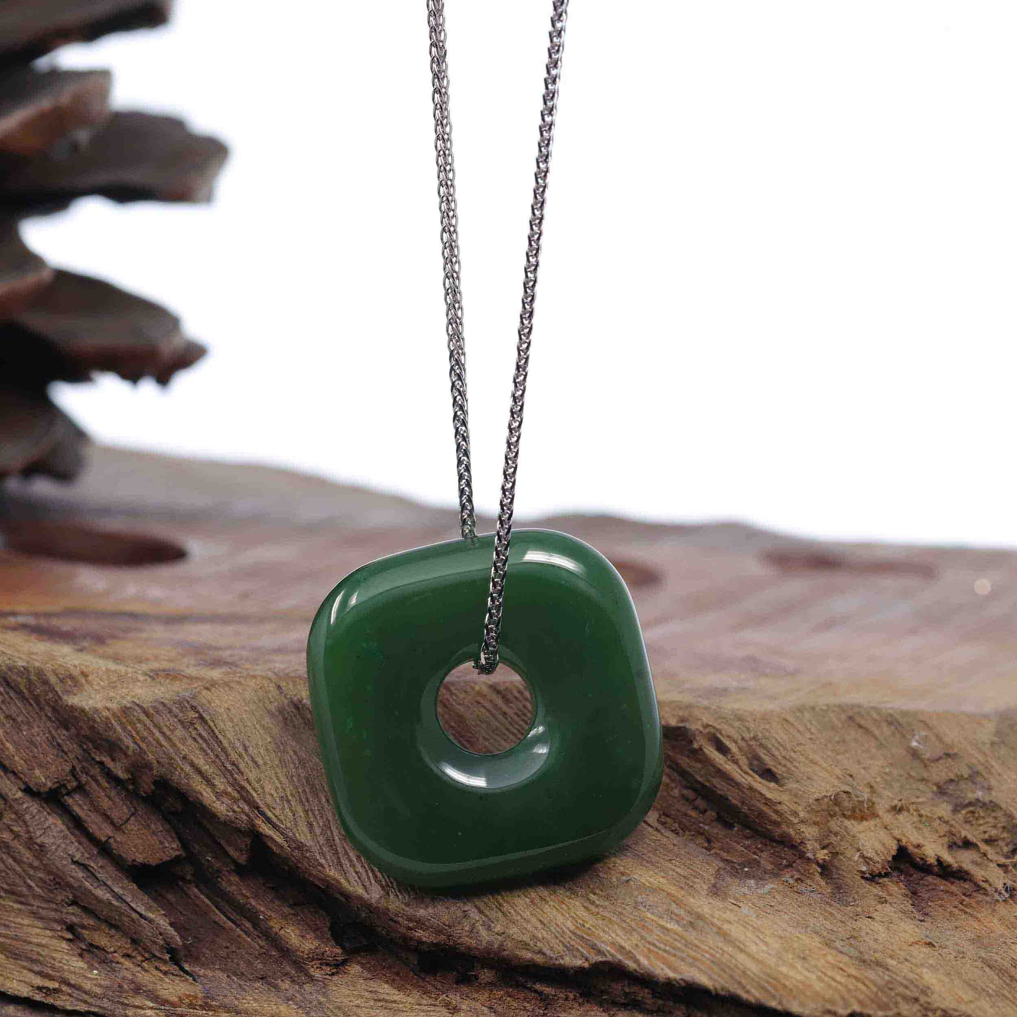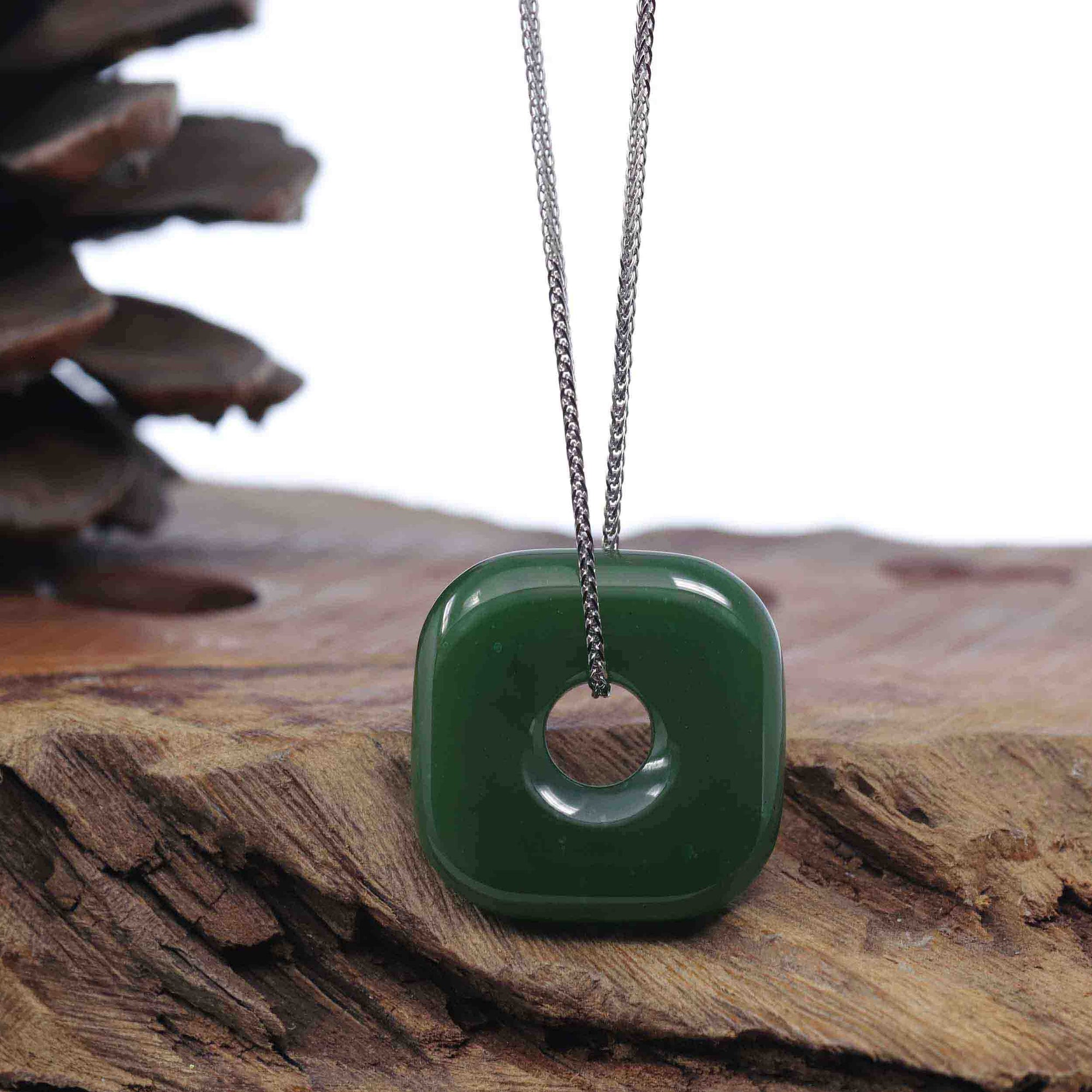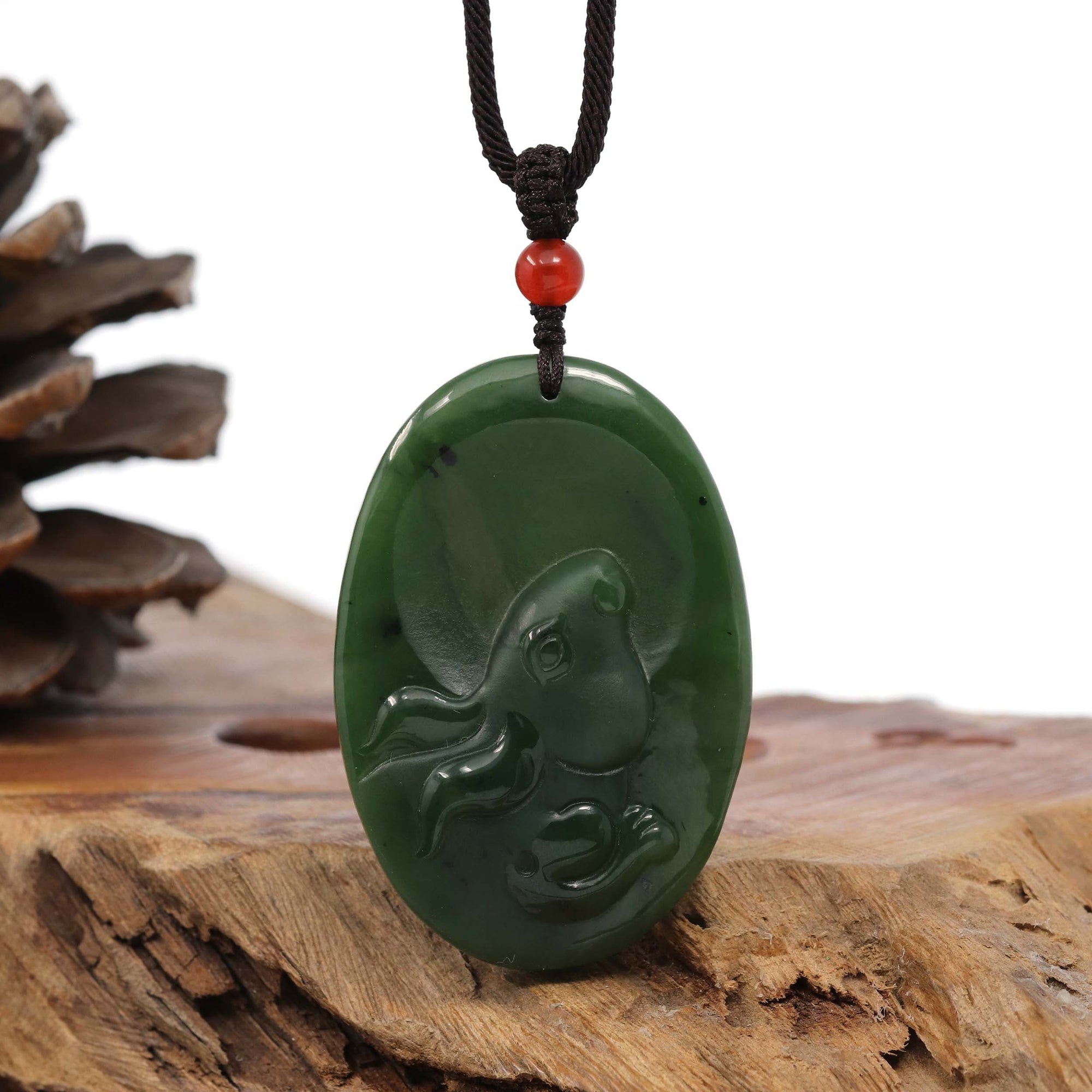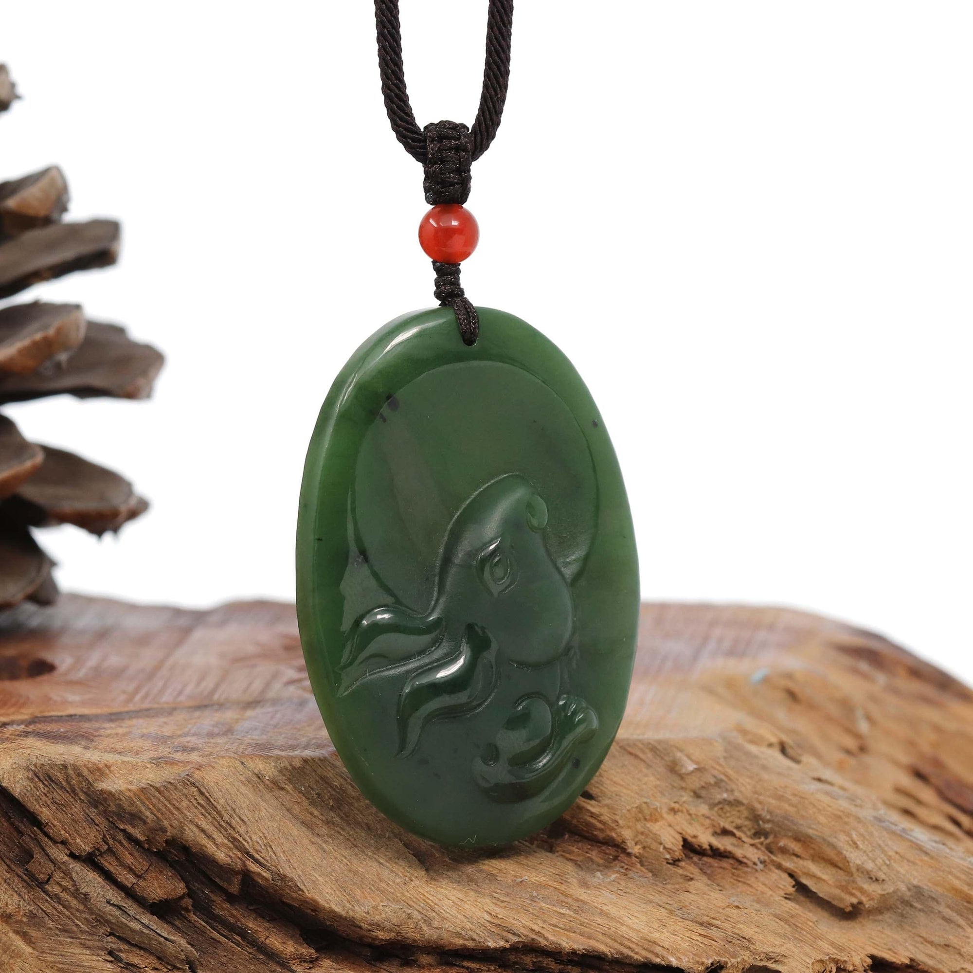 Natural Jade 12 Zodiac: Nephrite Jade Rooster Pendant Necklace in Deep Green