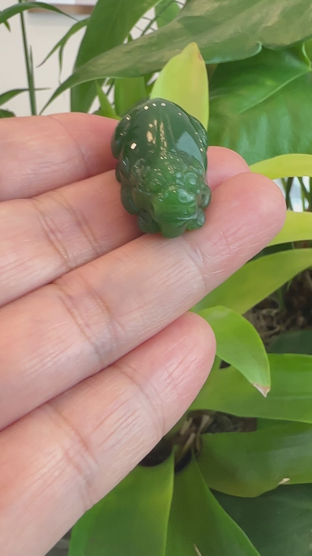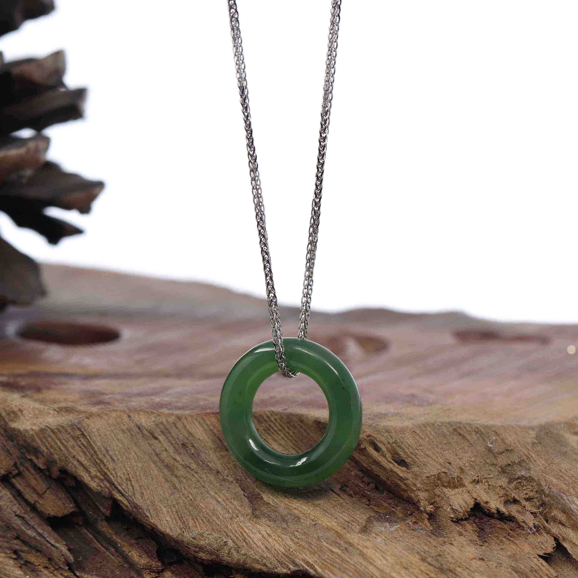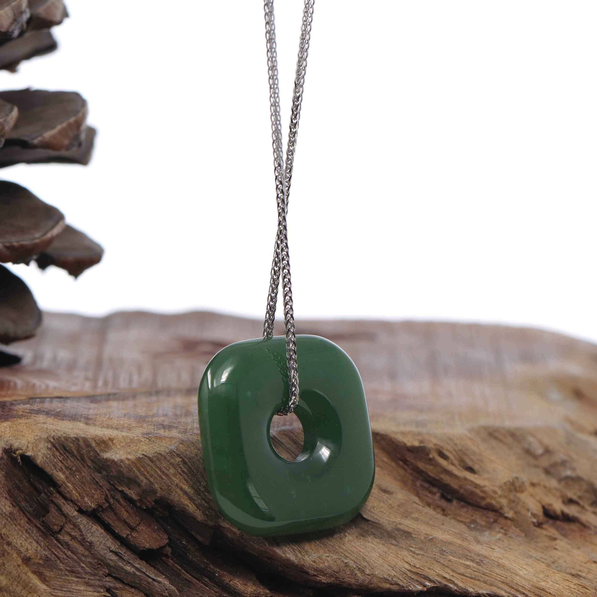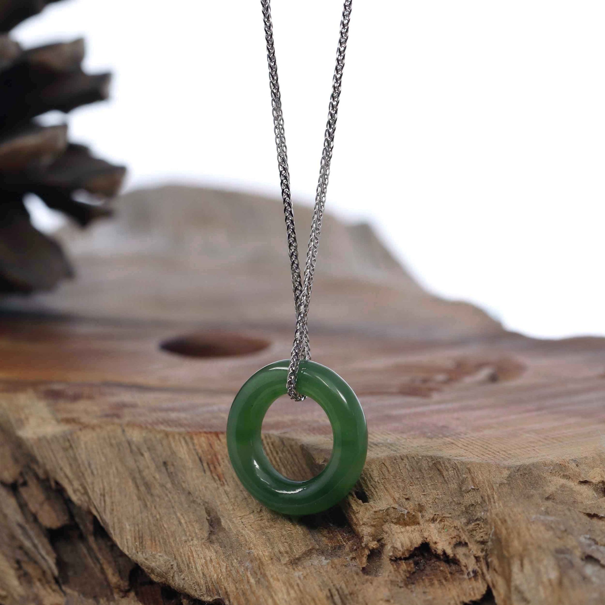Natural Jade 12 Zodiac: Nephrite Jade Rooster Pendant Necklace in Deep Green