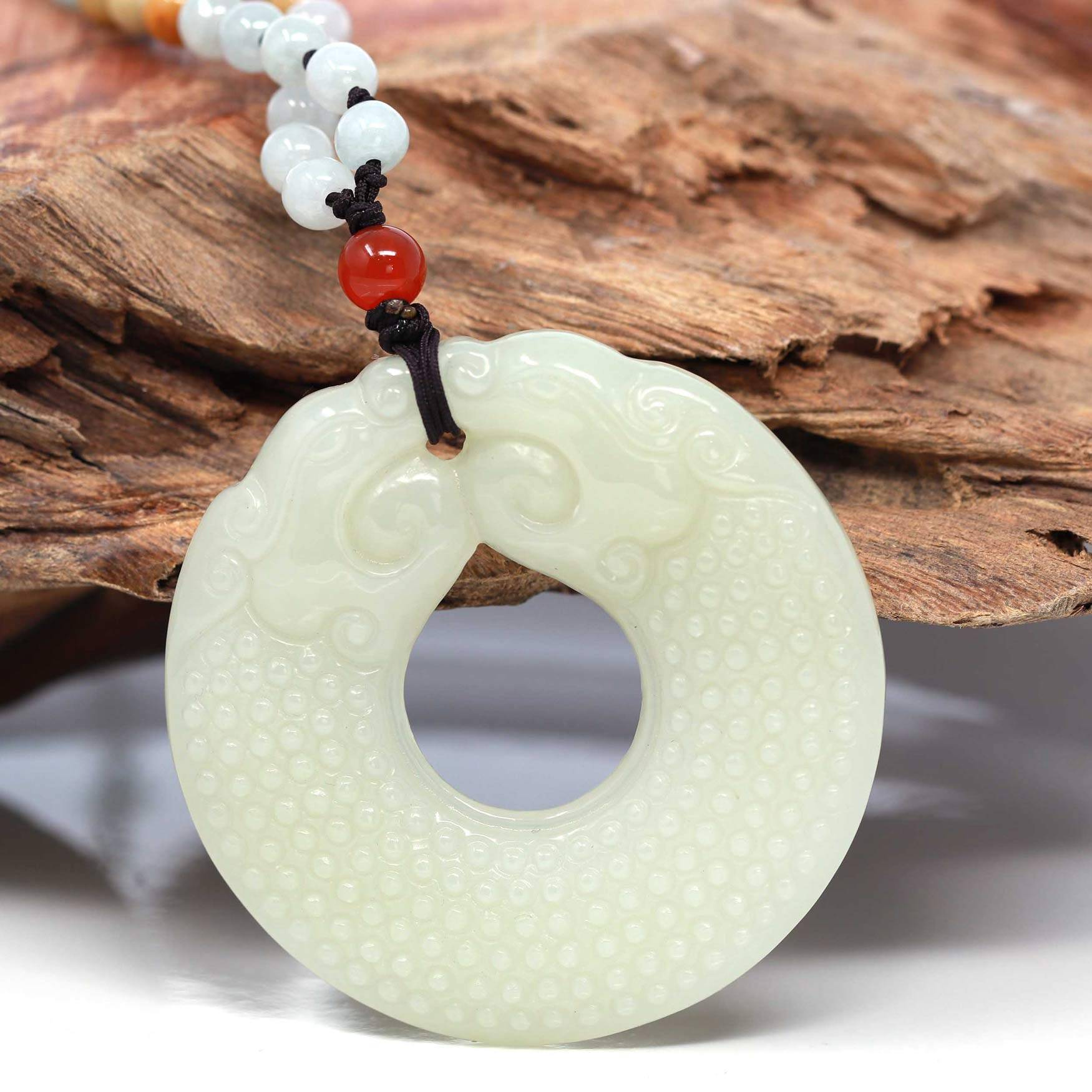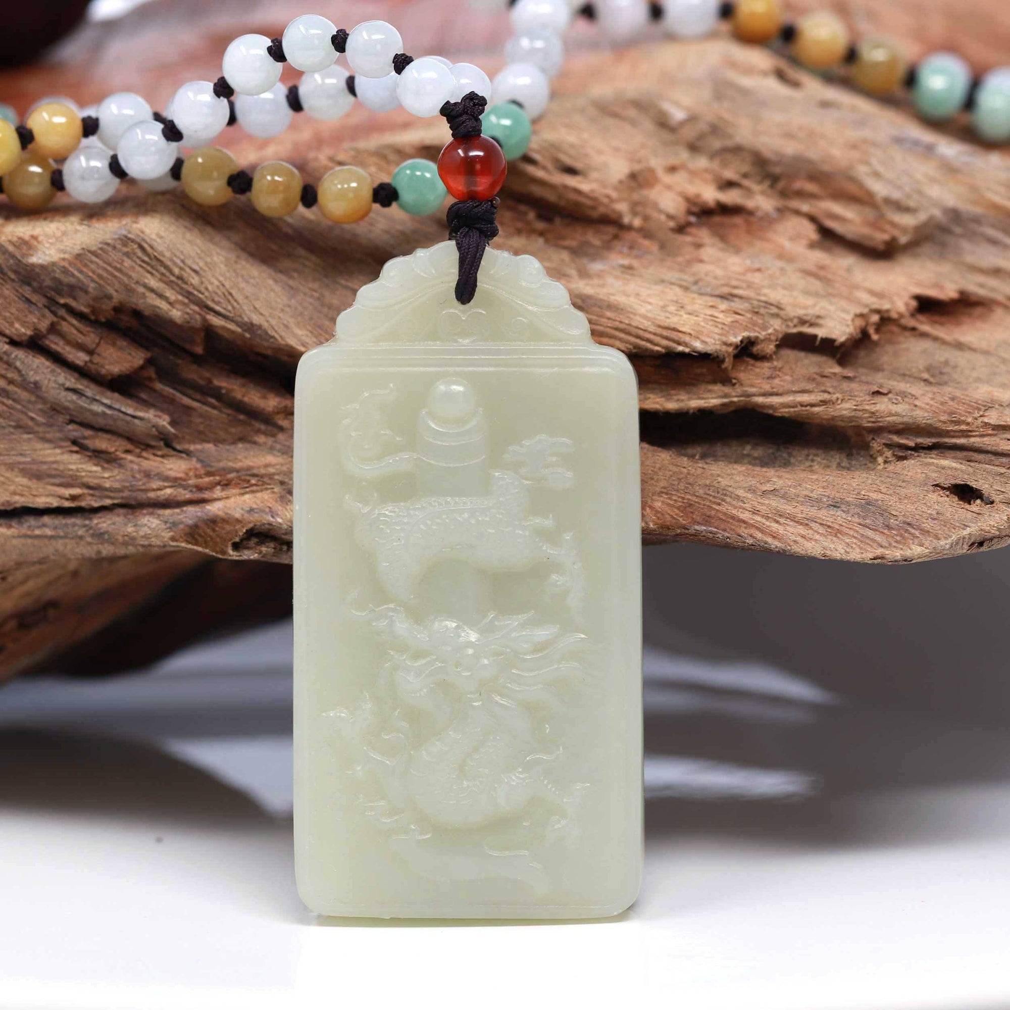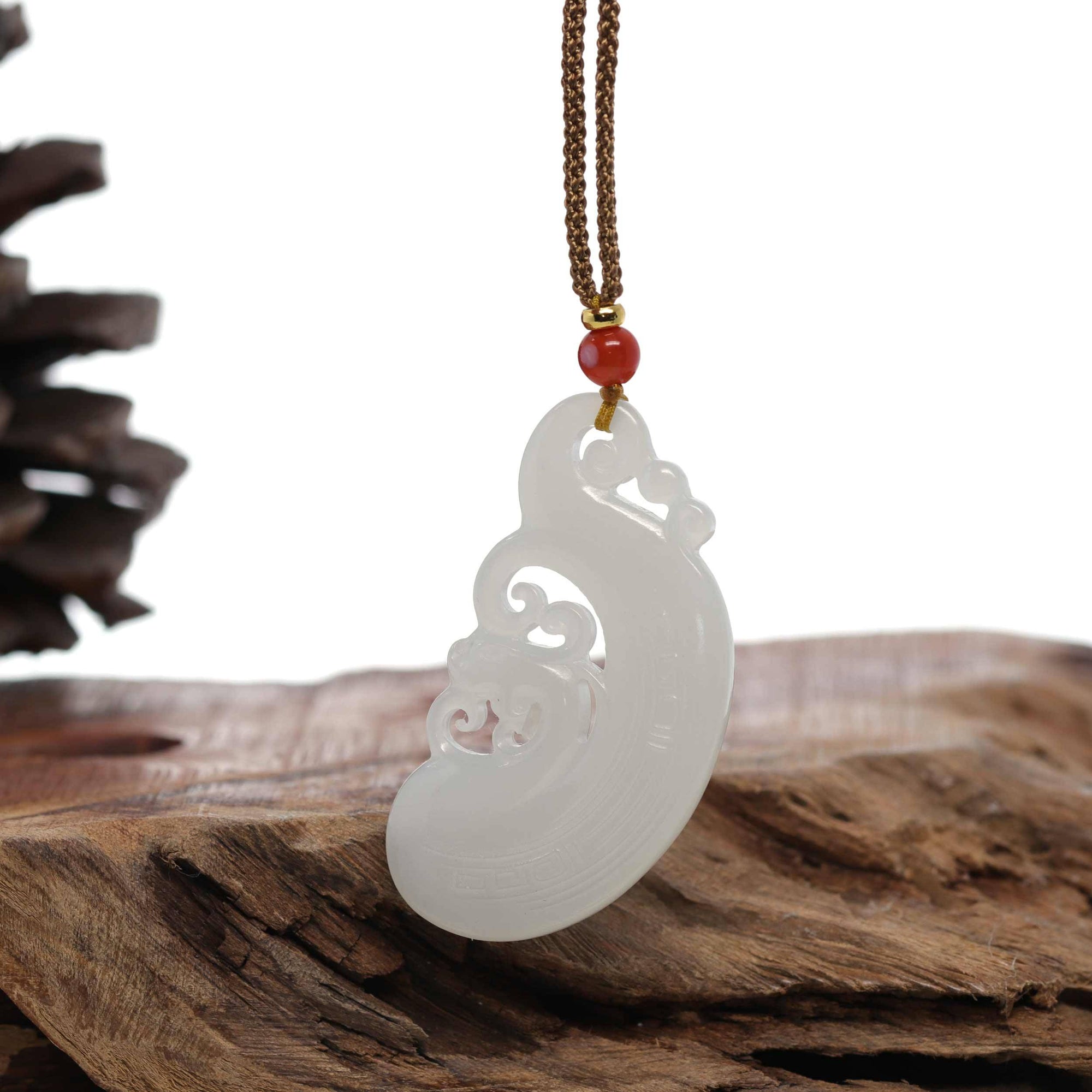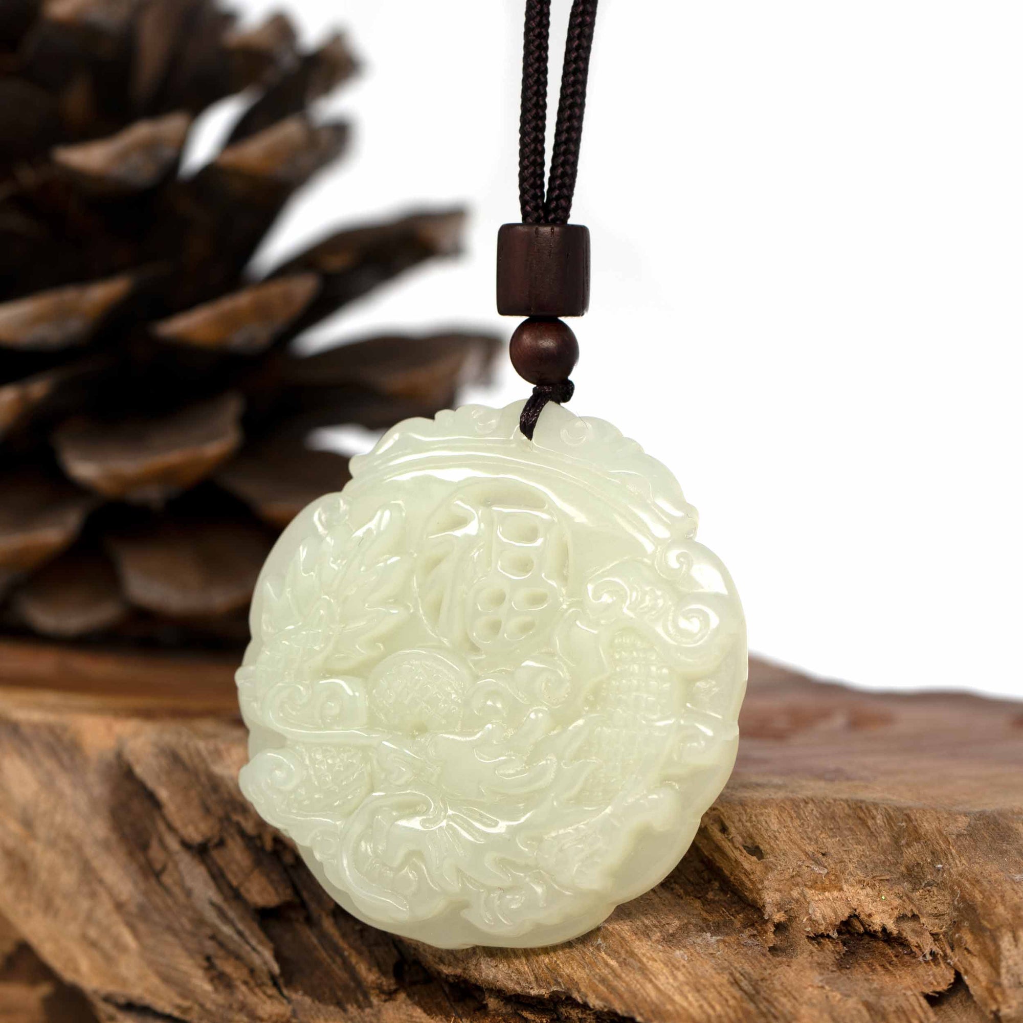 Baikalla™ "Dragon Good Luck Pattern" Genuine HeTian White Nephrite Jade Symbol Pendant Necklace