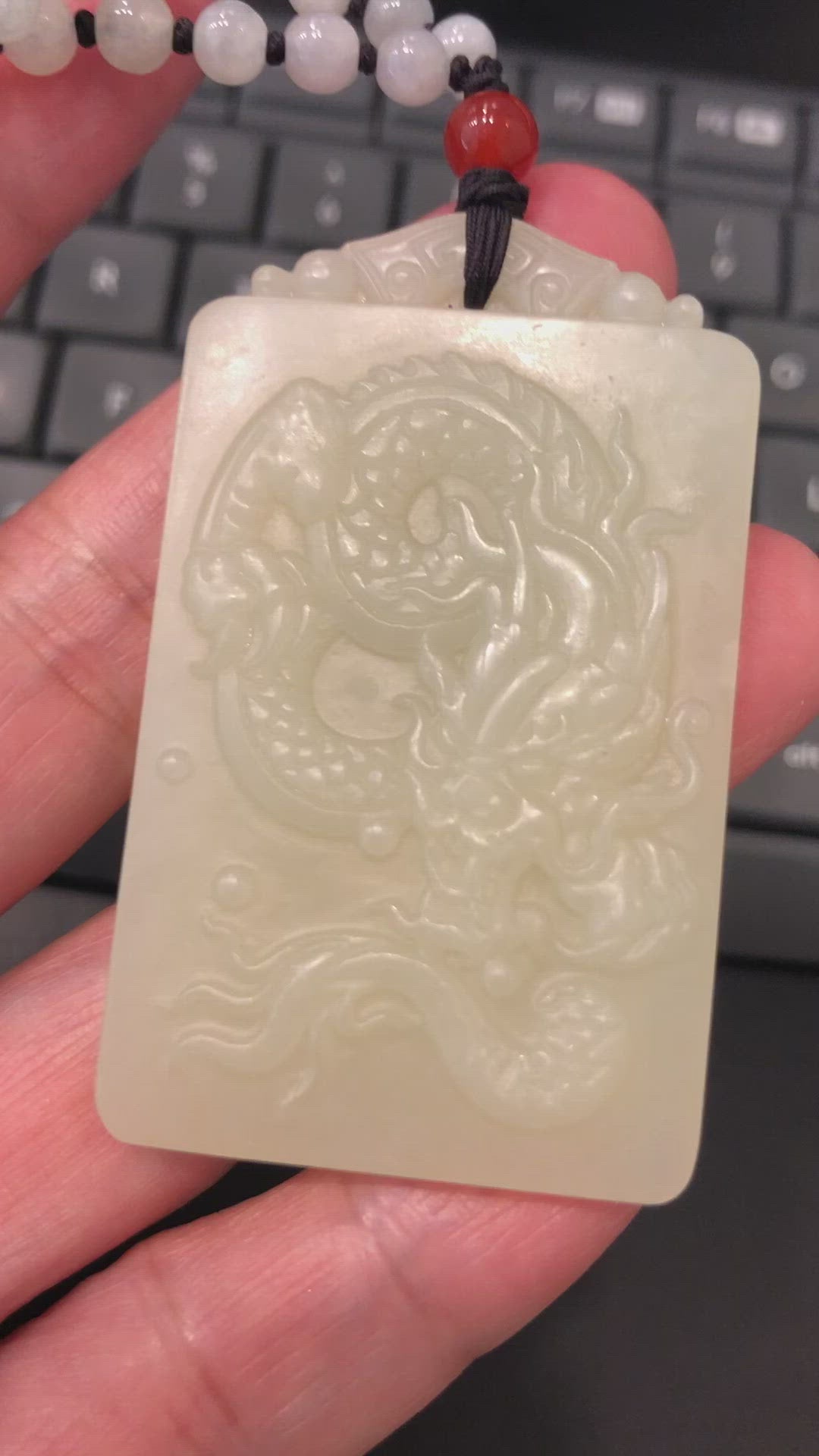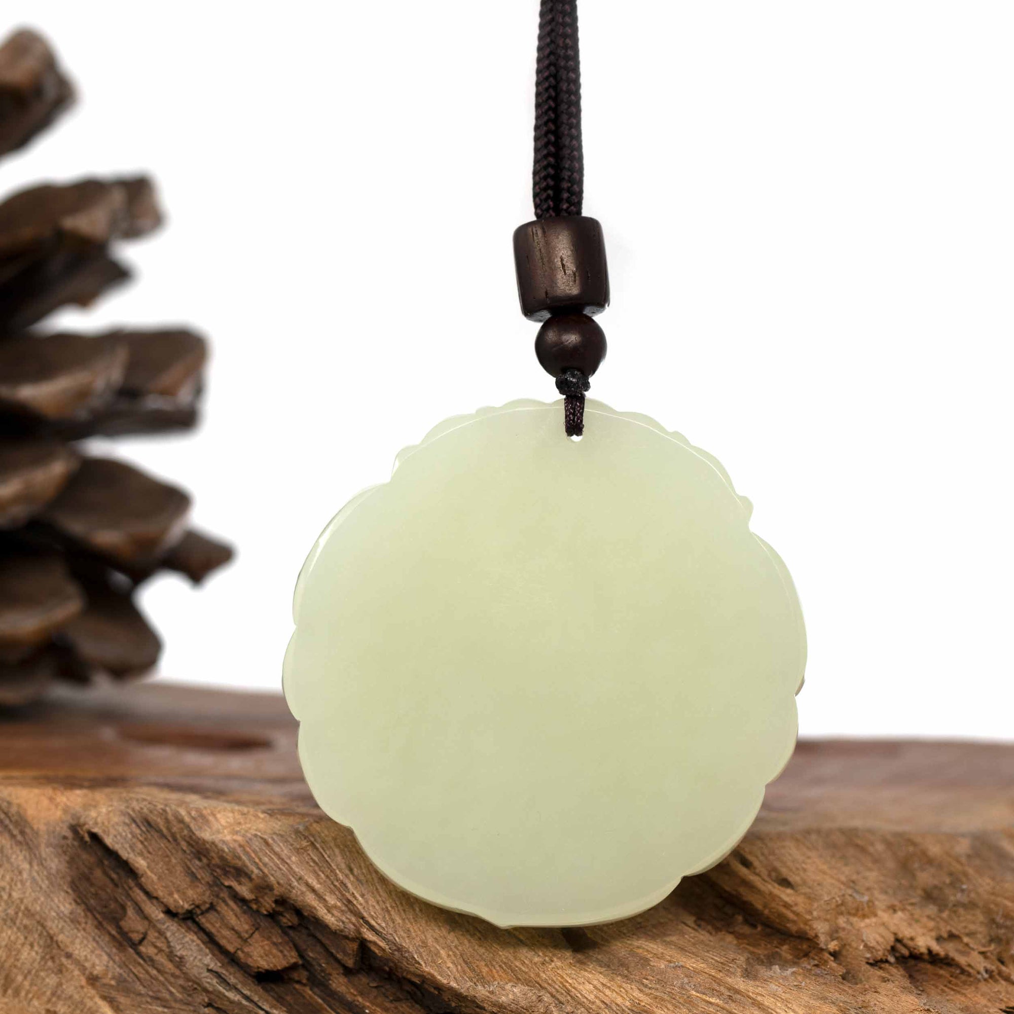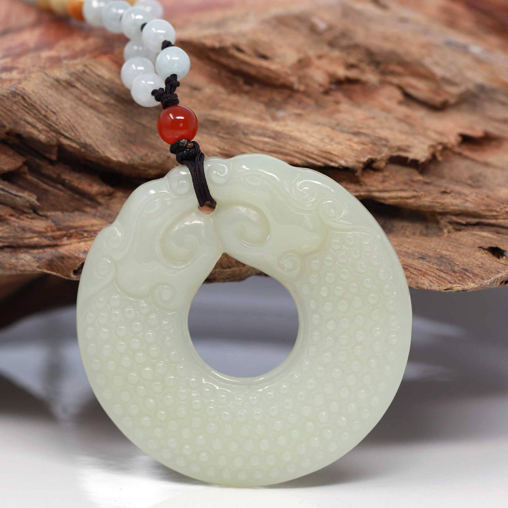 Baikalla™ "Dragon Good Luck Pattern" Genuine HeTian White Nephrite Jade Symbol Pendant Necklace
