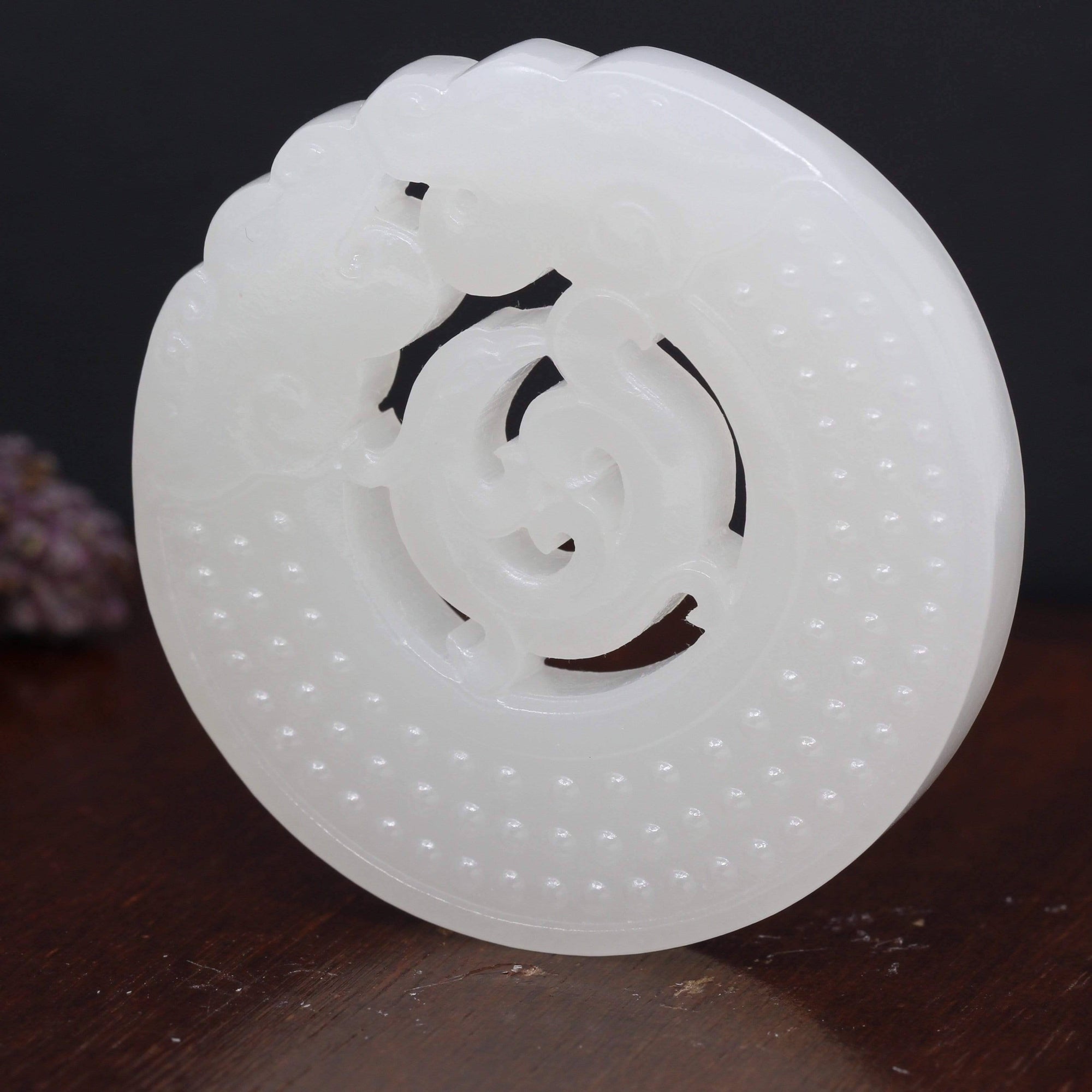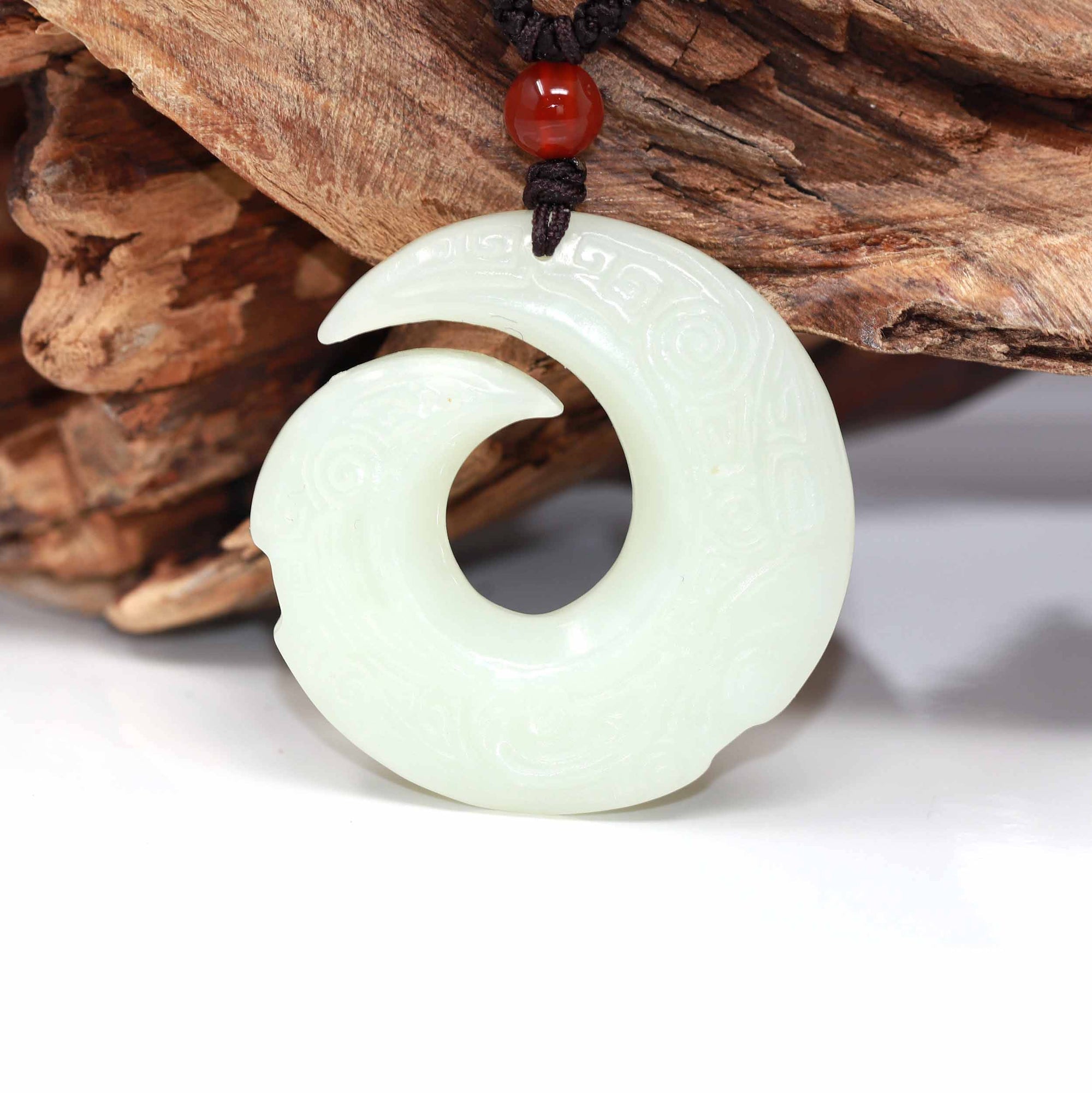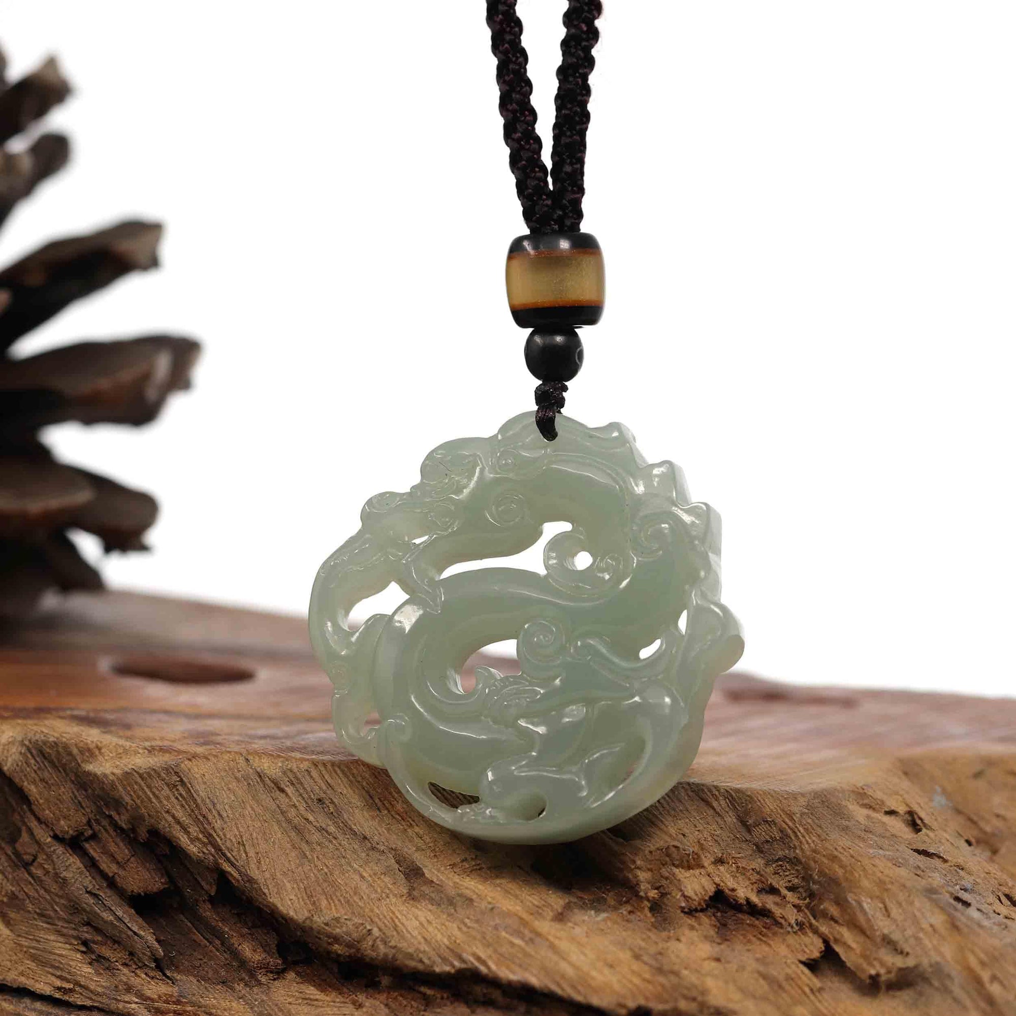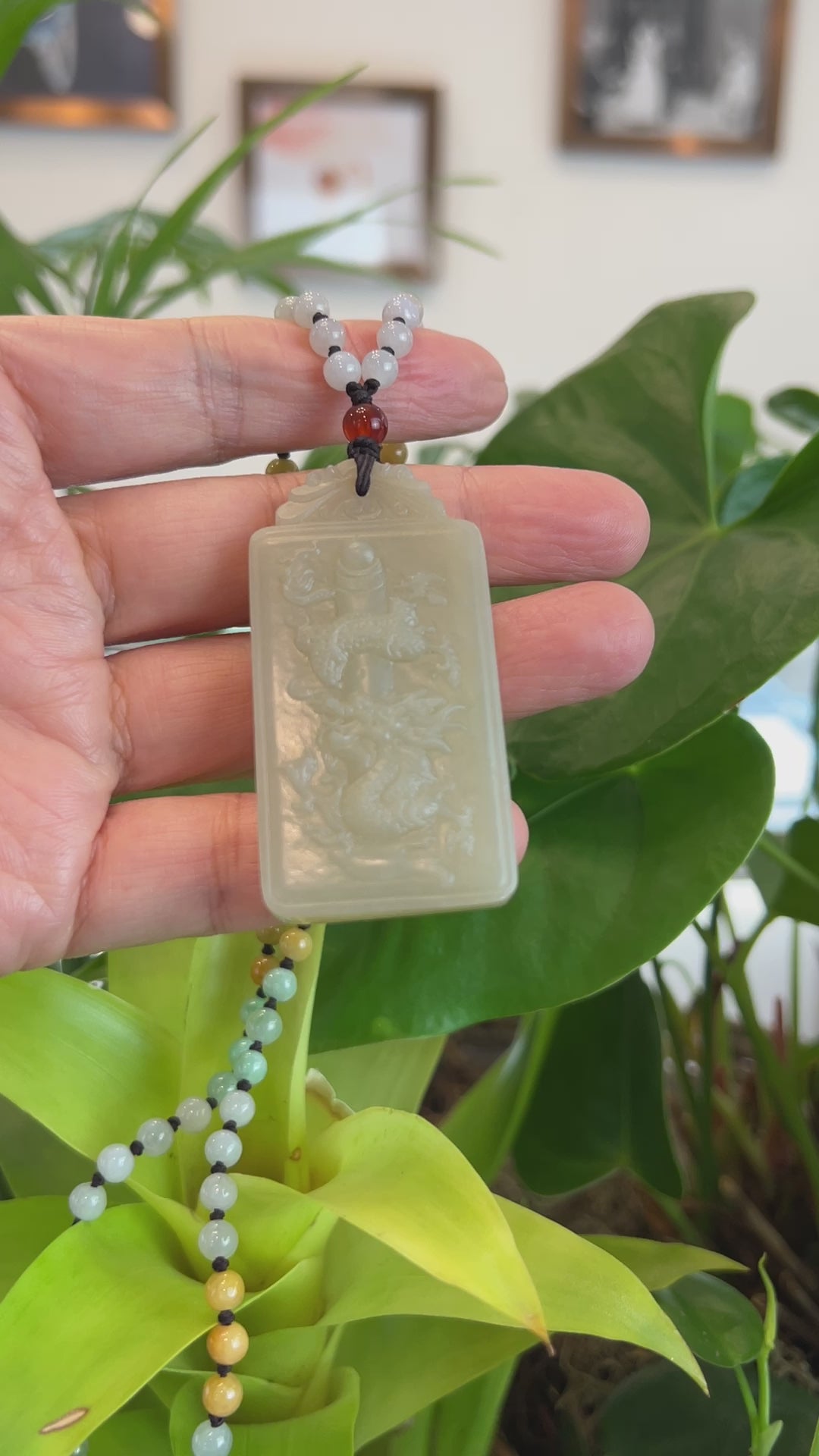 Baikalla™ "Dragon Good Luck Pattern" Genuine HeTian White Nephrite Jade Symbol Pendant Necklace