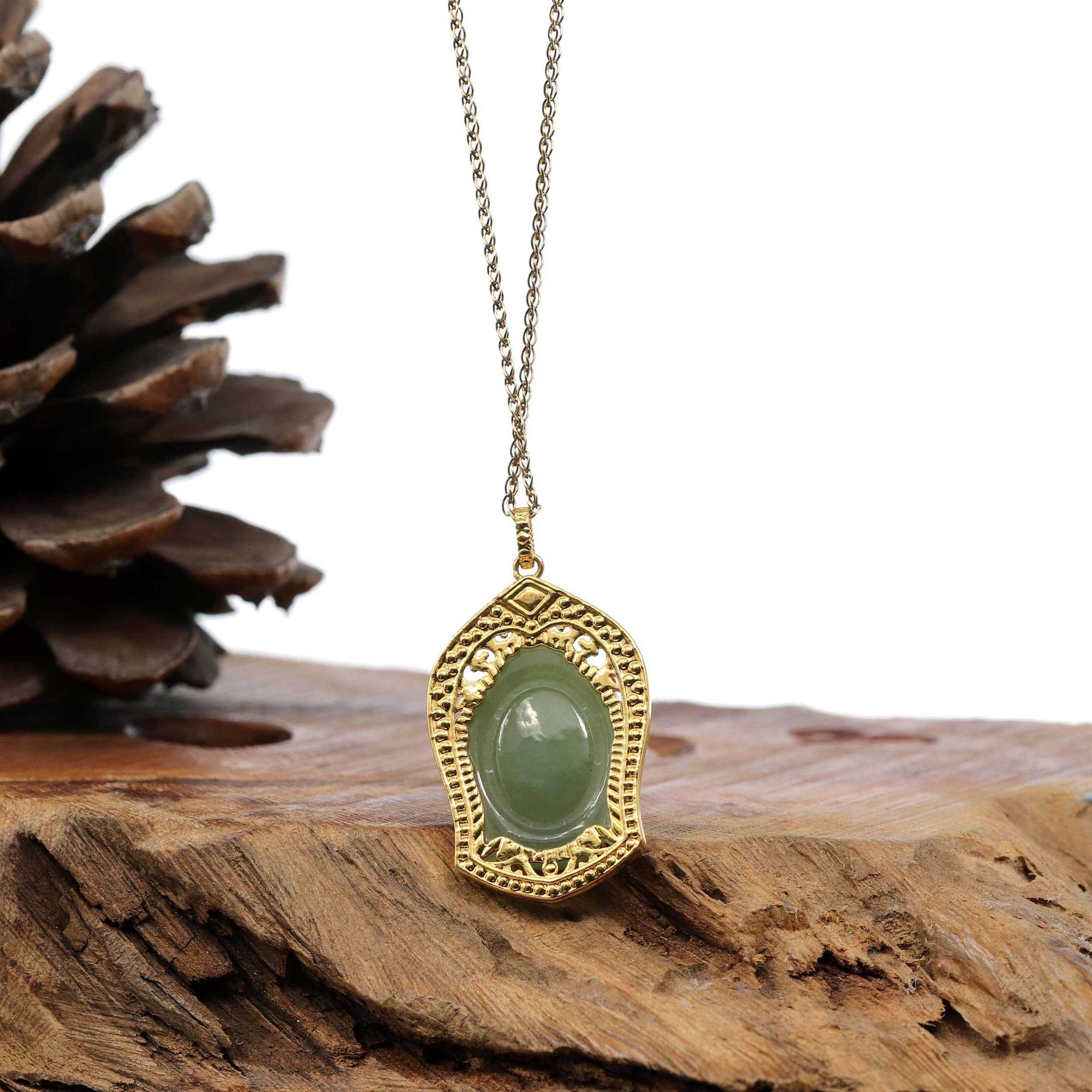 Baikalla™ 24K Yellow Gold Genuine Nephrite Green Jade GuanYin Pendant Necklace
