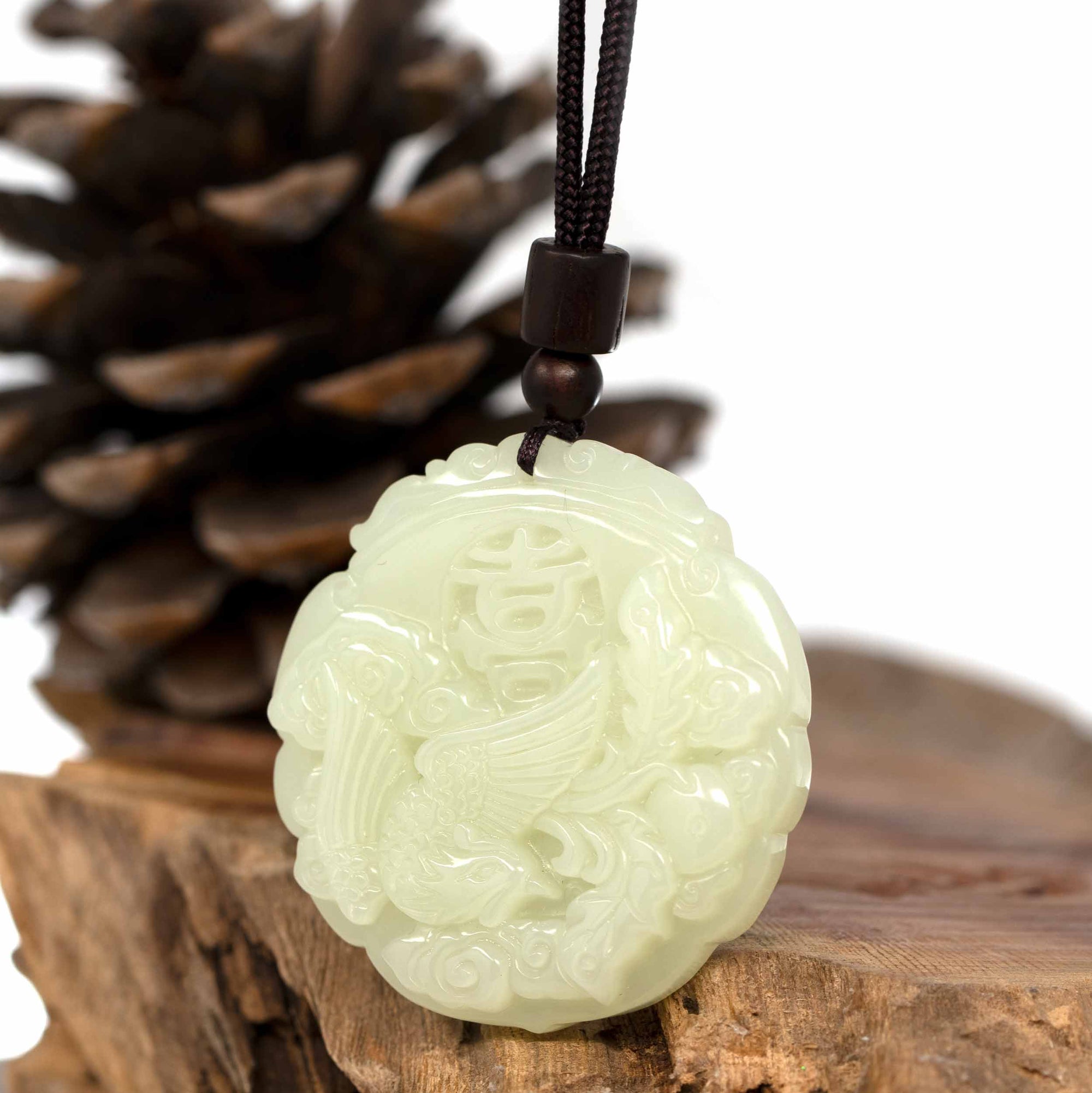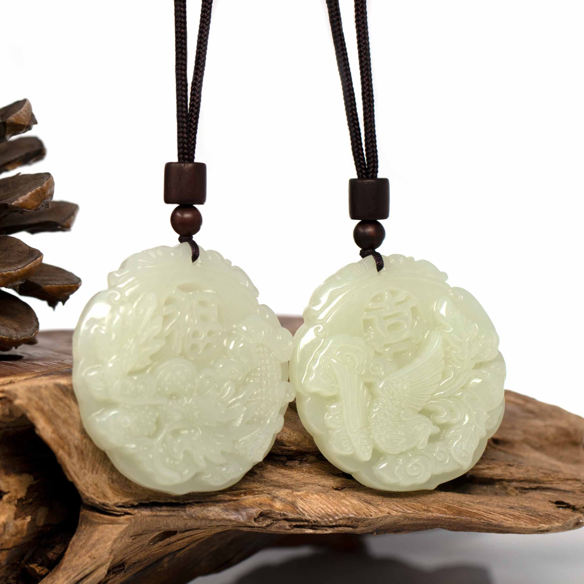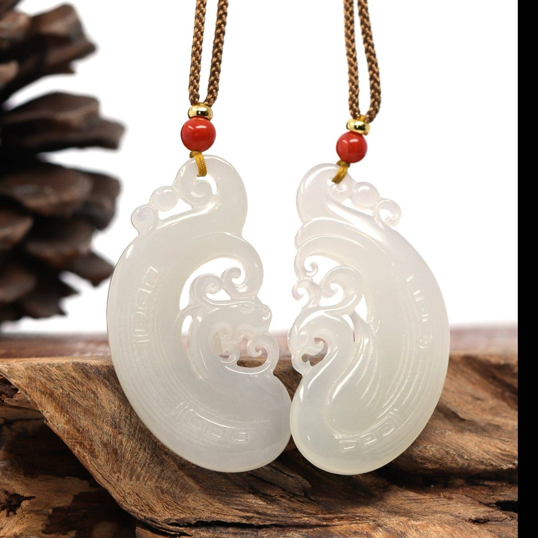 Baikalla™ "Dragon & Phoenix" Genuine HeTian White Nephrite Jade Pendant Necklace