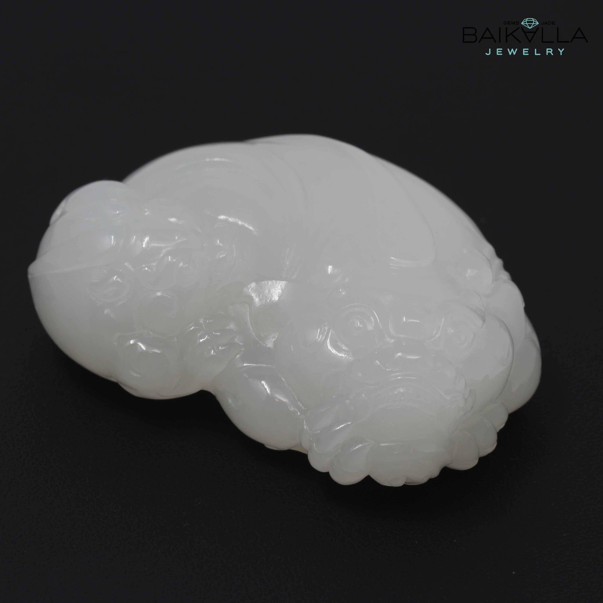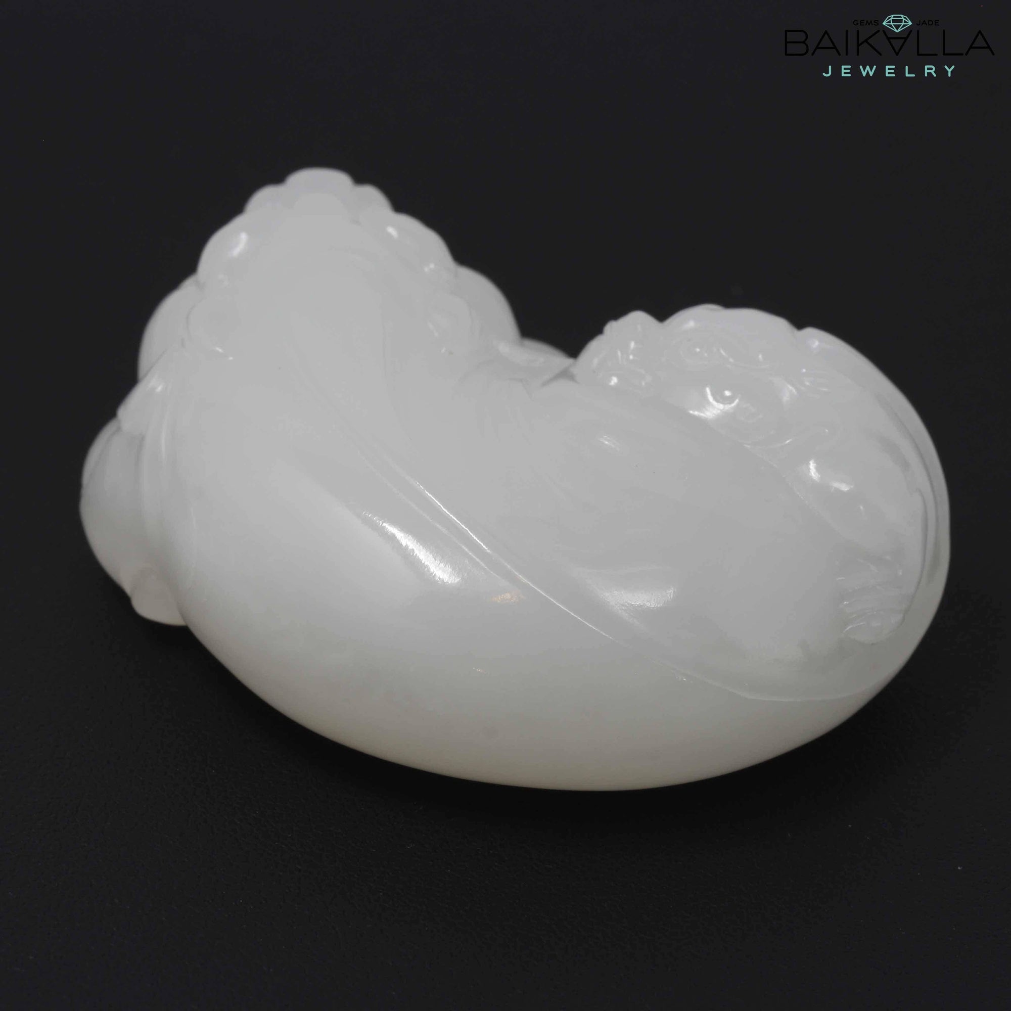 Baikalla "Jade Dragon In Cloud" Genuine White Nephrite Jade Dragon Pendant Necklace