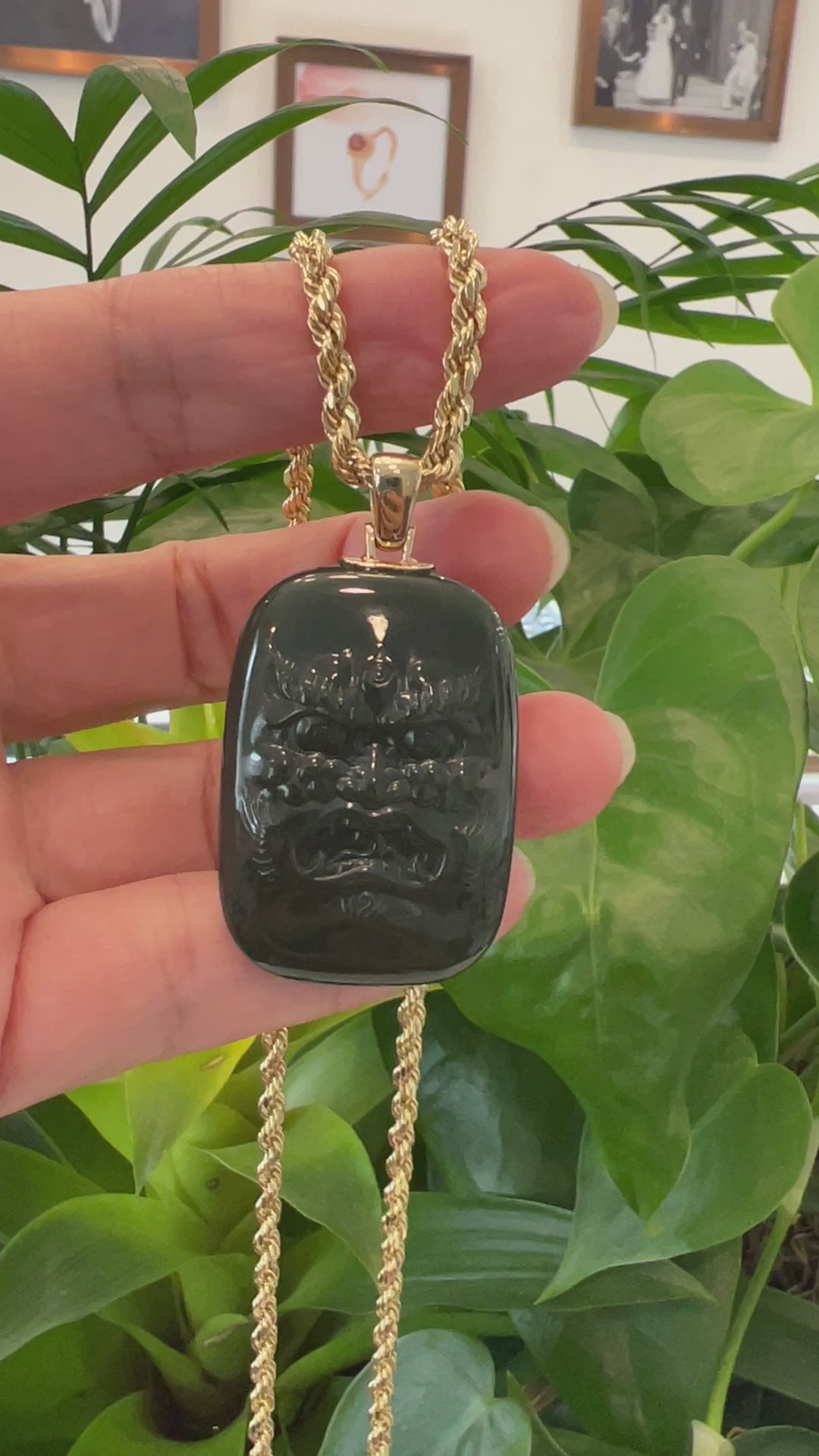Baikalla™ 14K Yellow Gold Genuine Nephrite Black Jade "Demon Hunter" Pendant Necklace