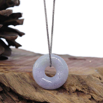 "Good Luck Button" Lavender Jadeite Jade Lucky KouKou Pendant With 14K White Gold Diamond Bail