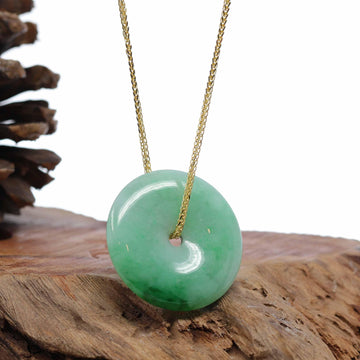 14K Yellow Gold "Good Luck Button" Necklace Ice Green Jadeite Jade Pendant Necklace