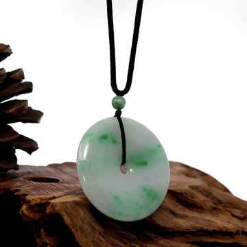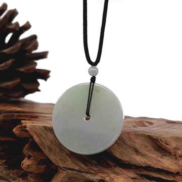 Baikalla "Good Luck Button" Necklace Green Jadeite Jade Lucky Ping An Kou Pendant