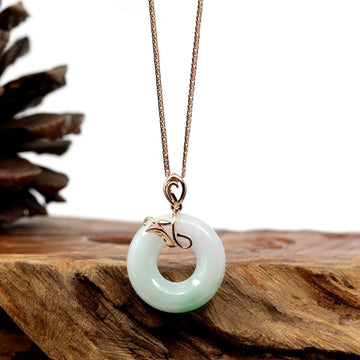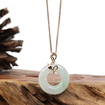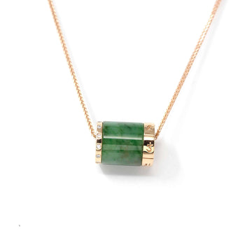 18k Rose Gold Genuine Burmese Jadeite Lucky Kou Kou Pendant Necklace With AA Ruby