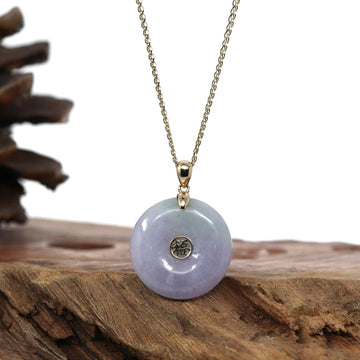 "Good Luck Button" Lavender Jadeite Jade Lucky KouKou Pendant With 14K Yellow Gold Bail