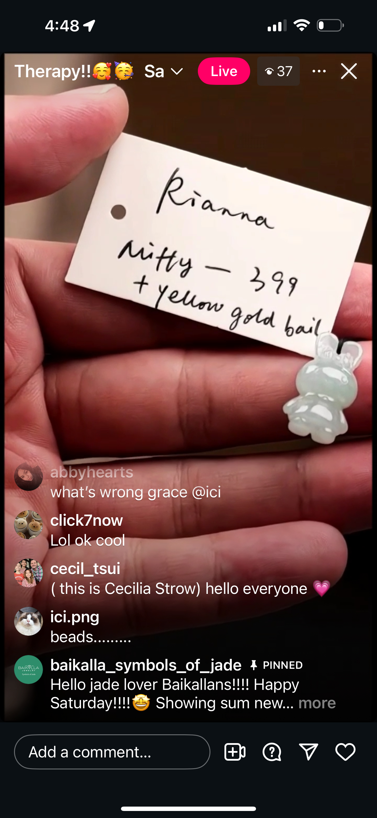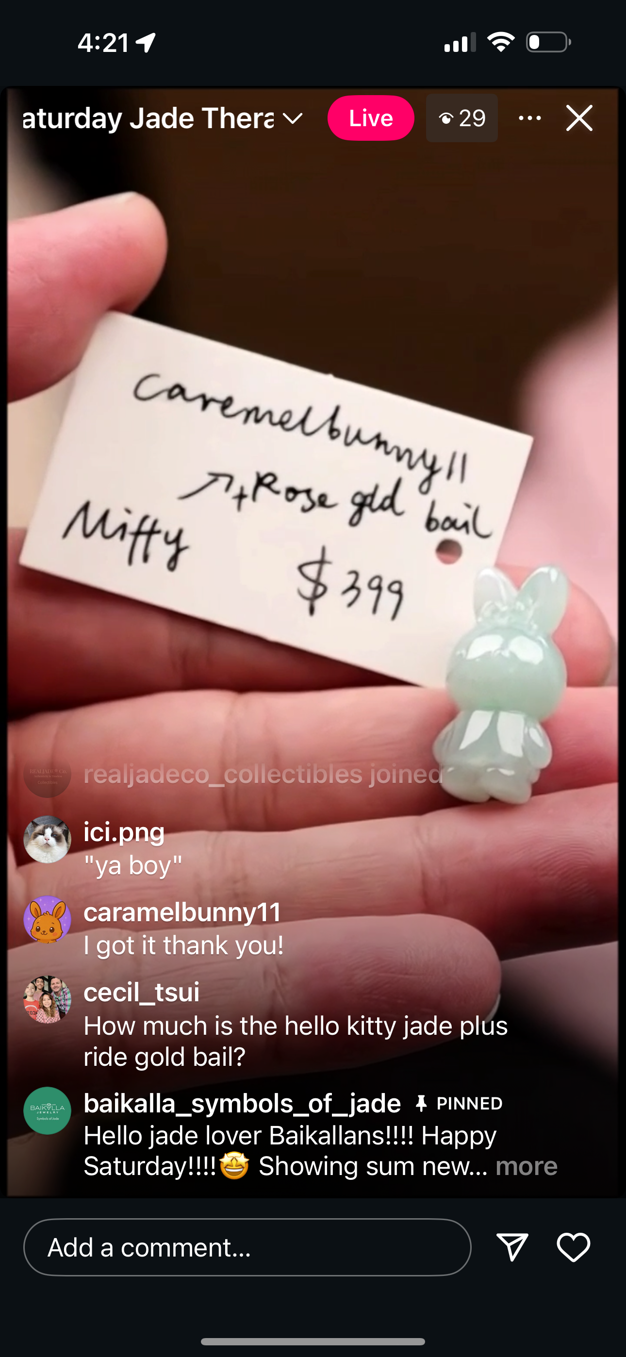 "Live" Natural Light Green Icy Jadeite Jade Miffy Pendant (Add Rose Gold Bail) (10/25/25)