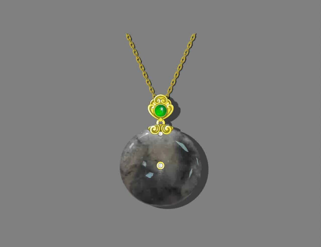 Baikalla Icy Green W/ Sajin "Golden Dust" Ping An Kou Burmese Jadeite Jade Necklace