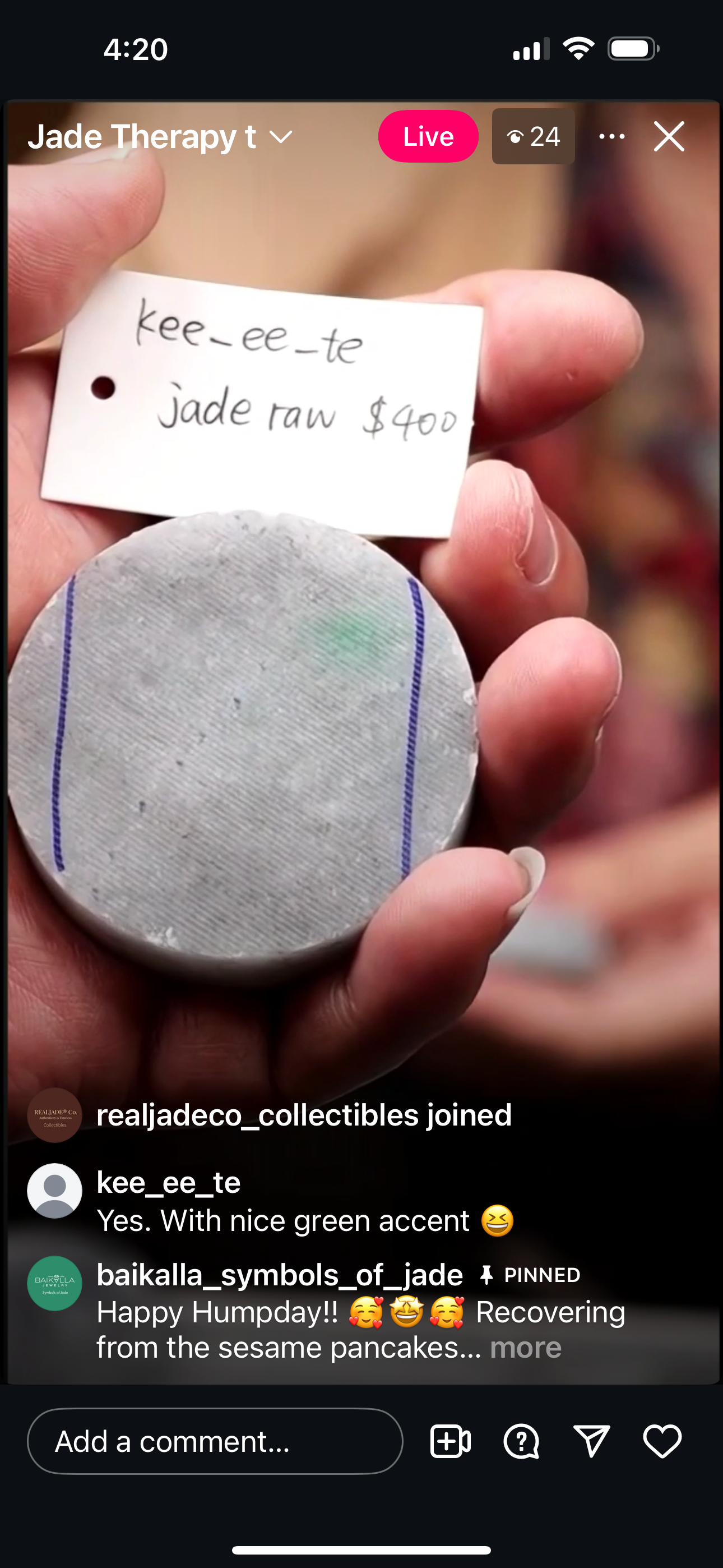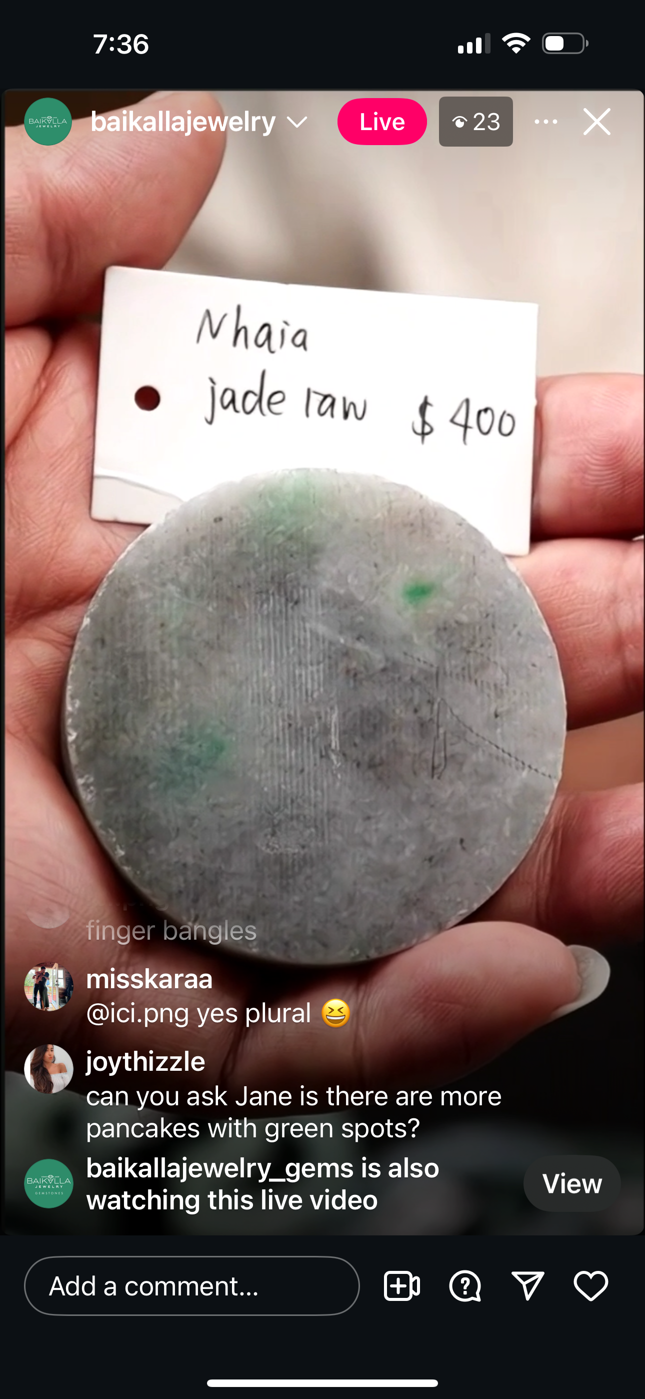 "Live" Natural WuJi Sesame With Green Spots Jadeite Jade Pancake Bangle" (08/20/25)