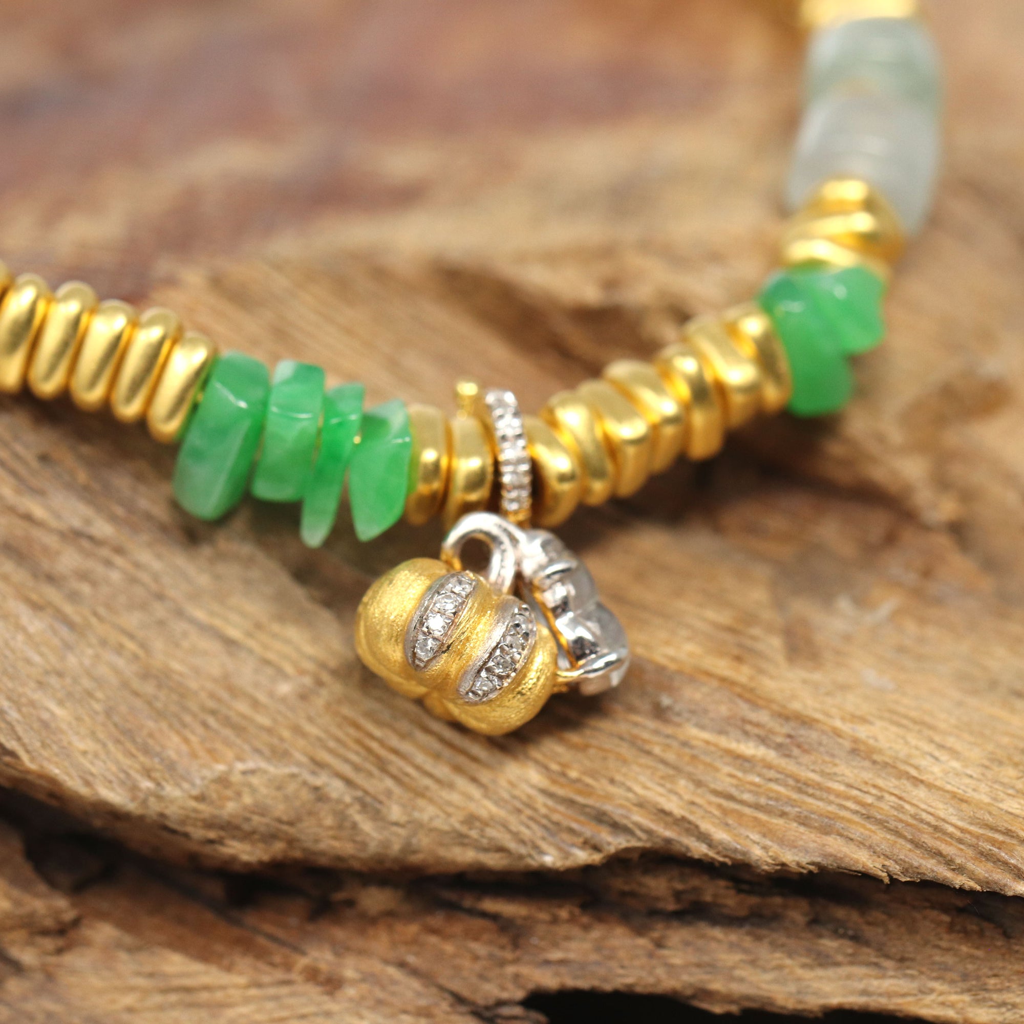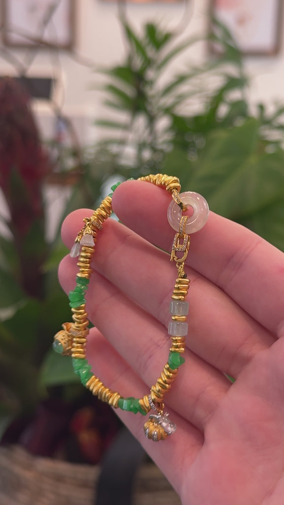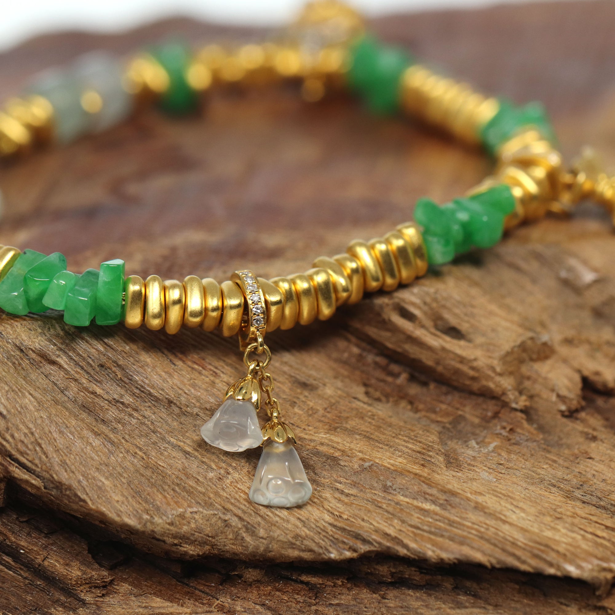 18k Gold & Imperial Jadeite Jade Beads Bracelet with Unique Charms