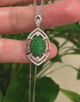 18K White Gold Oval Imperial Jadeite Jade Cabochon Necklace with Diamonds