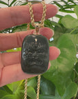 Baikalla Jewelry Gold Jade Pendant Baikalla™ 14K Yellow Gold Genuine Nephrite Dark Green Jade " Da Hei Tian " Pendant Necklace