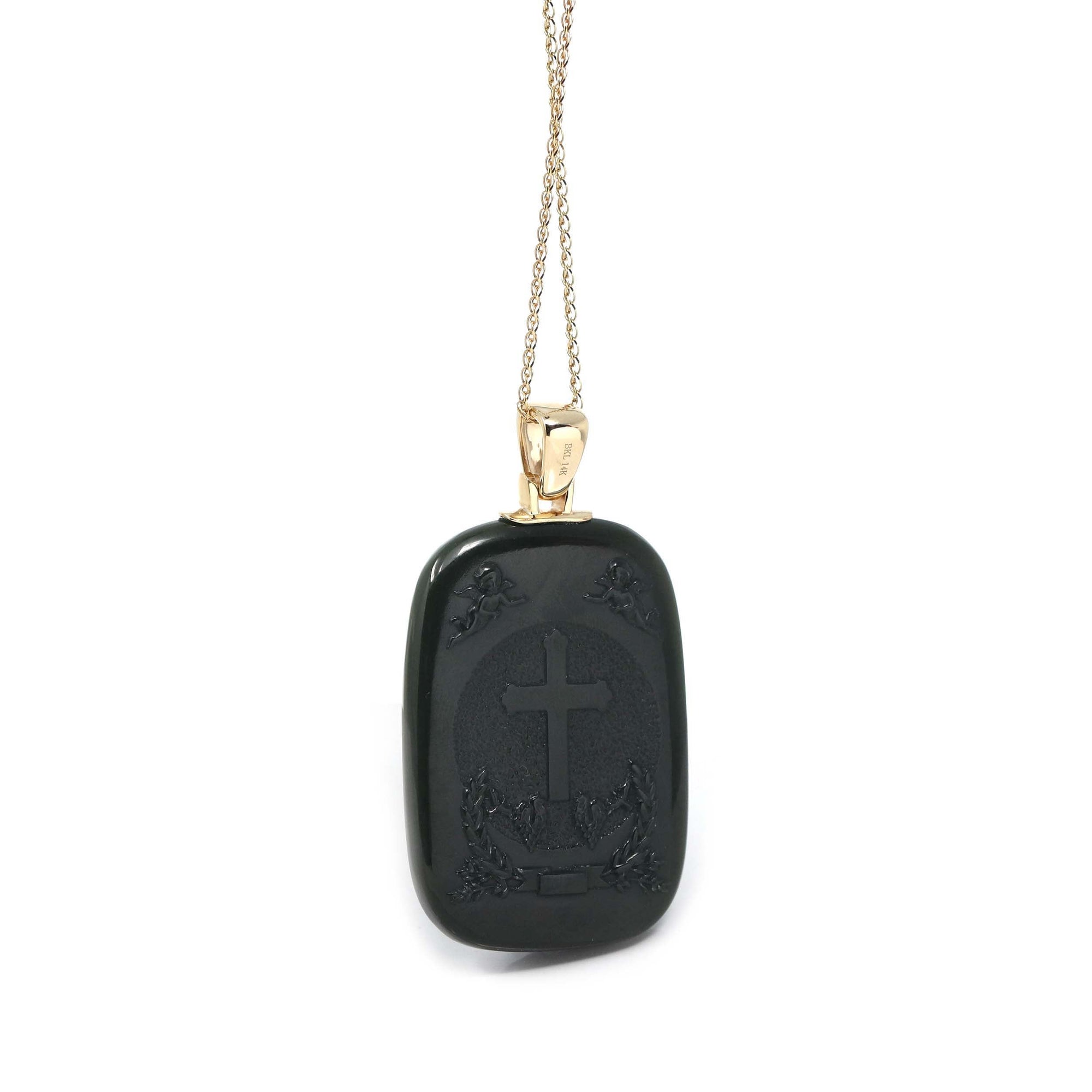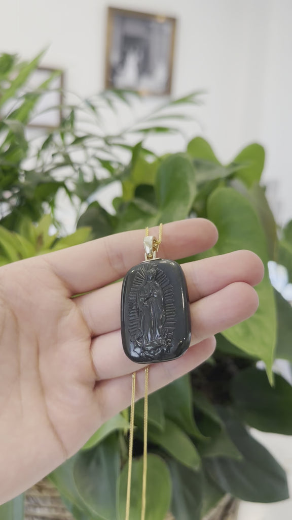 Baikalla Jewelry Gold Jade Pendant Copy of Copy of Baikalla™ 14K Yellow Gold Genuine Nephrite Black Jade Mother Mary Pendant Necklace